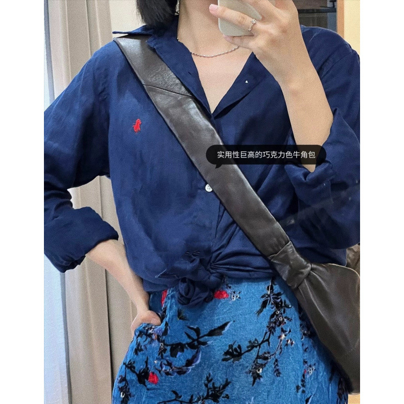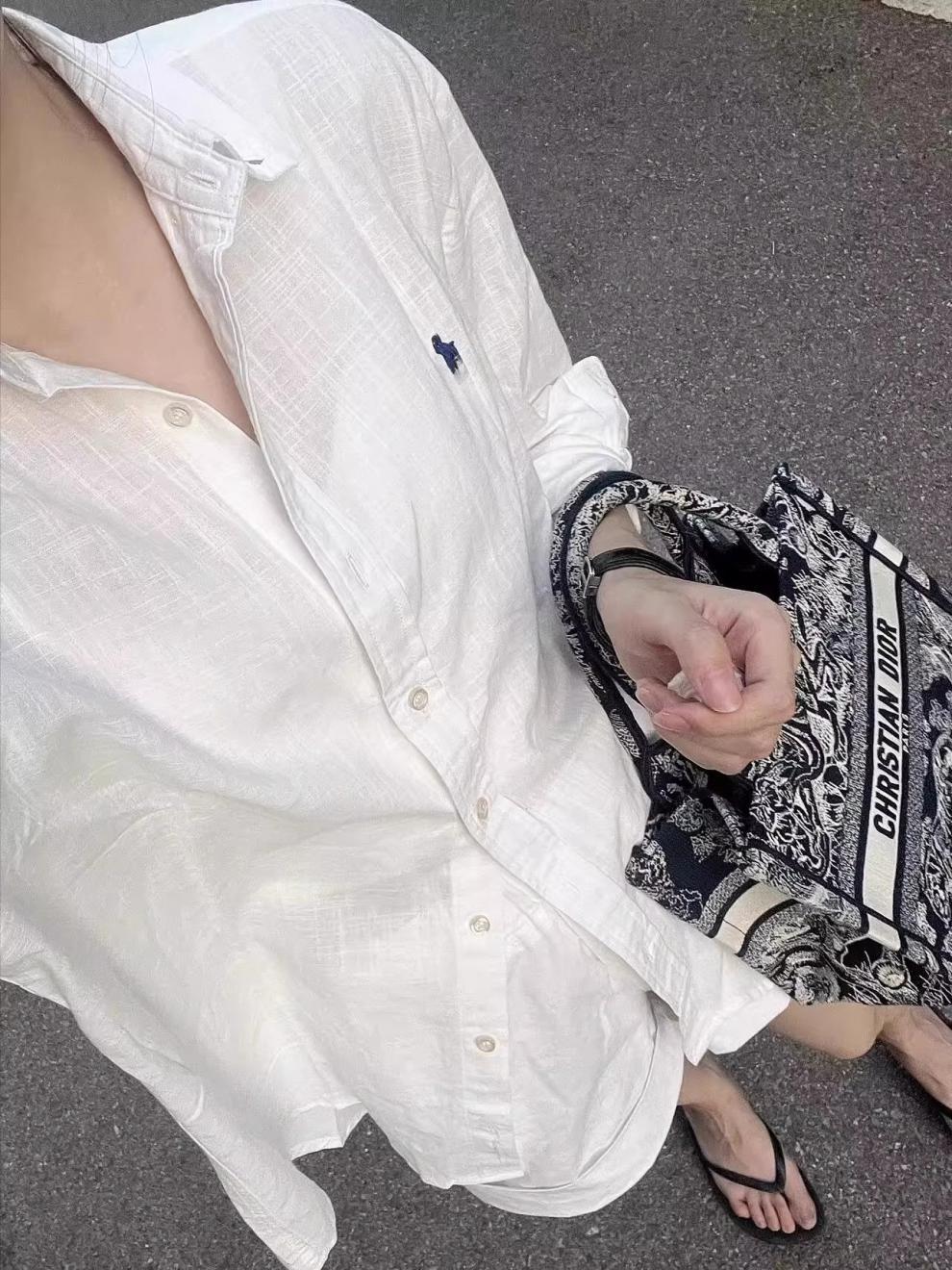 랄프 포니 자수 최고 여성의 봄과 가을 얇은 리넨 화이트 긴팔 캐주얼 느슨한 틈새 선스크린 셔츠스토어 가기