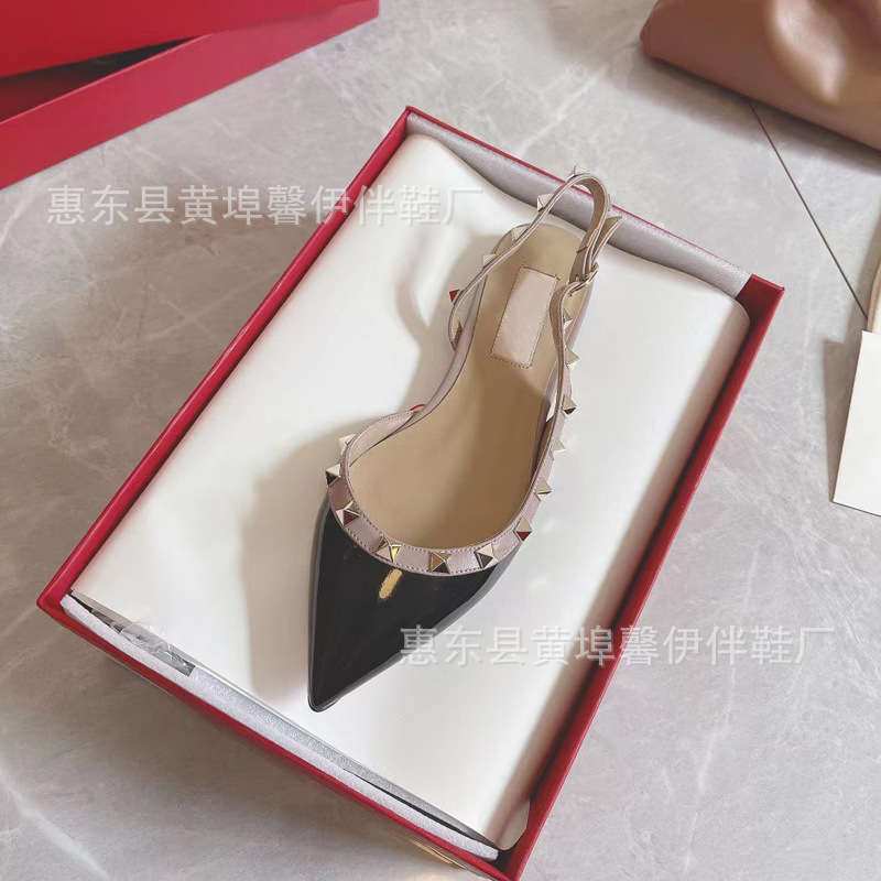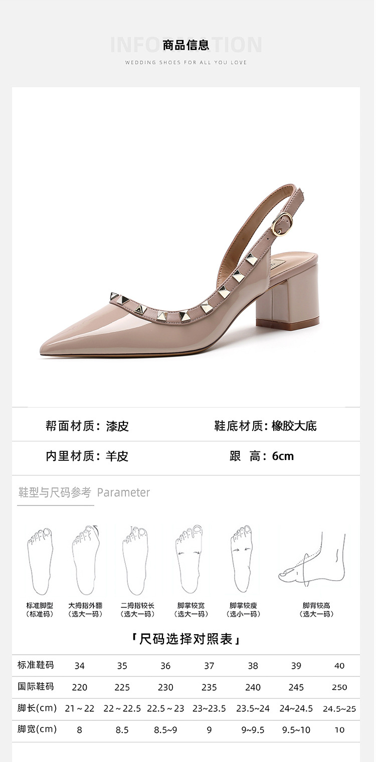 프랑스 뾰족한 리벳 청키 힐 신발 2025 봄과 여름 온라인 빨간 특허 가죽 누드 샌들 우아한 리어 에어 스퀘어 여성 다큐멘터리 신발스토어 가기