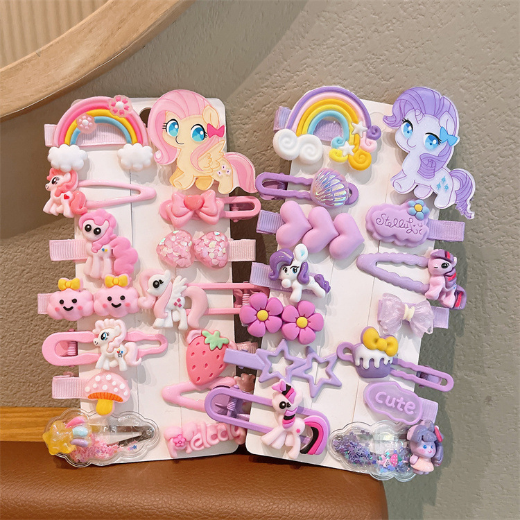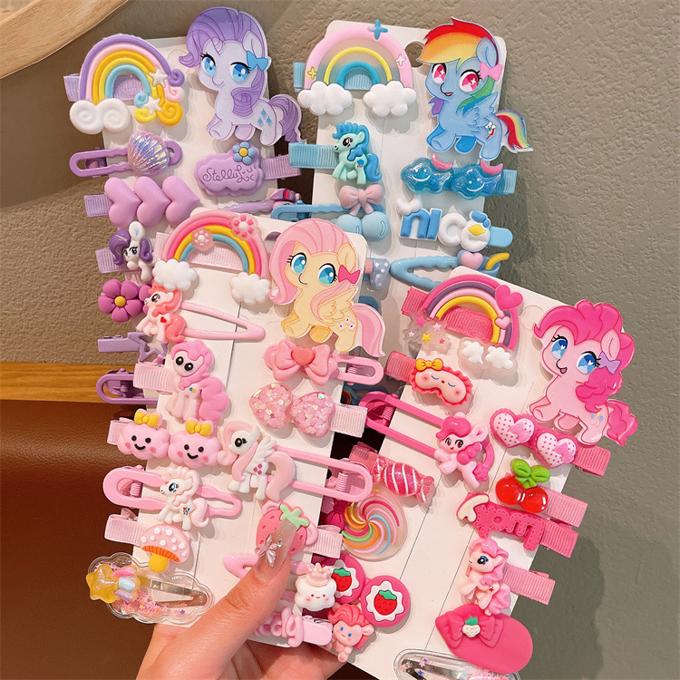 어린이 귀여운 만화 포니 헤어핀 달콤한 소녀의 사이드 뱅 클립 아기의 부러진 머리 BB 클립 세트