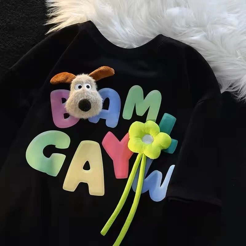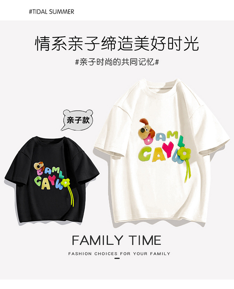 튀긴 거리 부모-아이 원피스 가족 세 여름 원피스 어머니와 드레스 재미 만화 순면 아기 반팔 티셔츠 쿠안 노래 여름