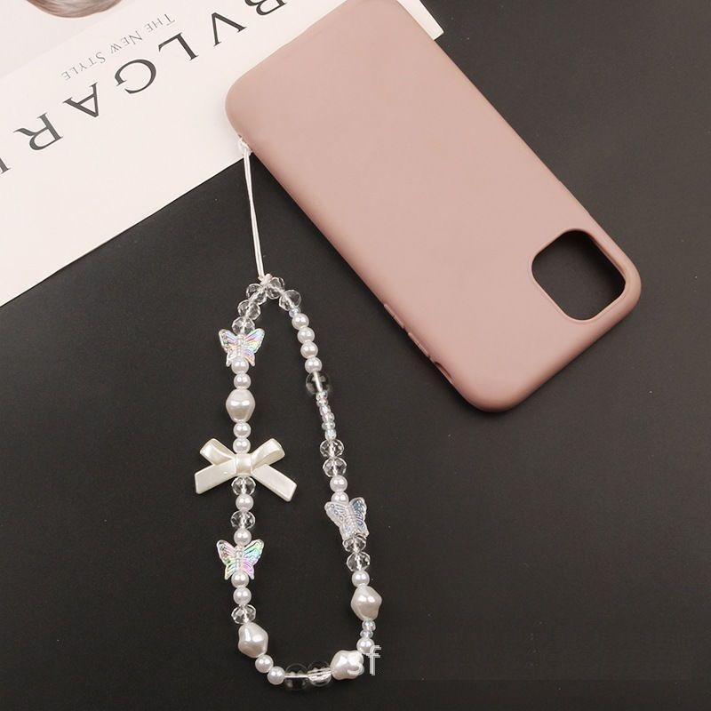 Ins 스타일 휴대 전화 끈 짧은 창조적 인 활 흰색 모조 진주 교수형 체인 액세서리 가방 장식 CCD 끈