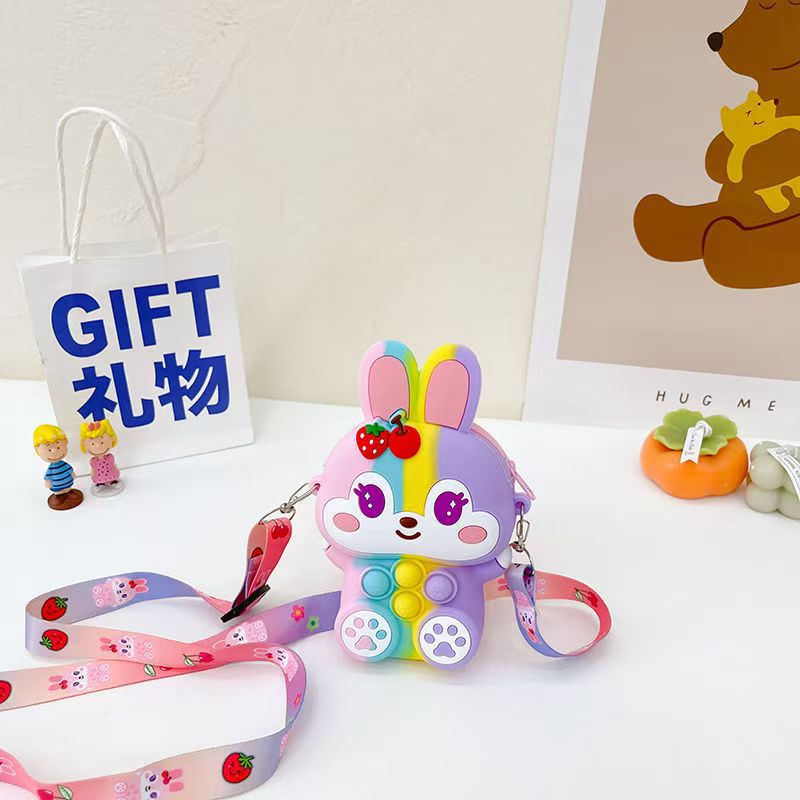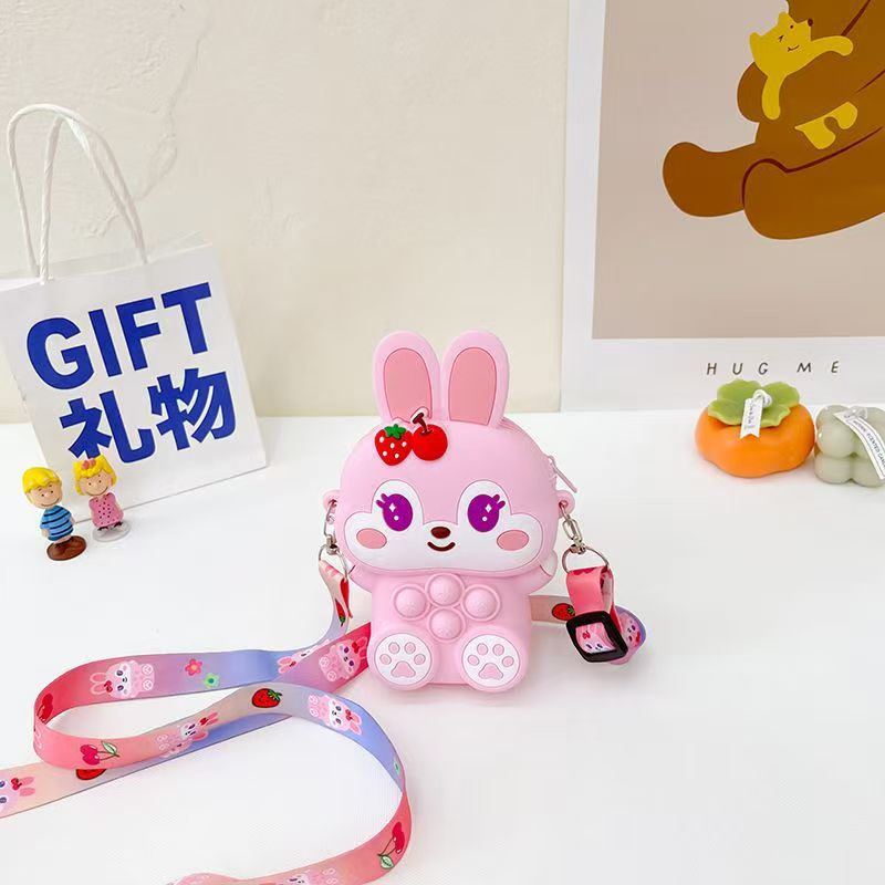 어린이 가방 토끼 실리콘 크로스 바디 가방 소녀의 귀여운 미니 동전 지갑 크로스 바디 가방 휴대 전화 작은 가방 어깨 가방