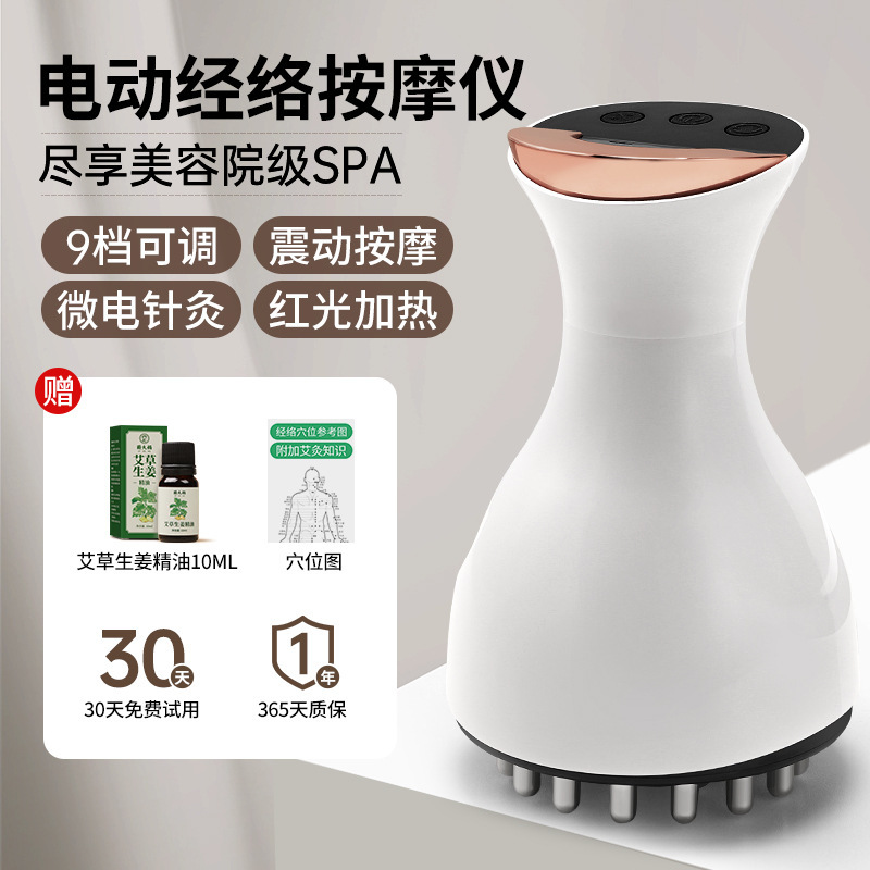• 화이트 [미용실과 동일한 스타일] 스마트 전기 경락 브러시 + 쑥과 생강 에센셜 오일 100ml