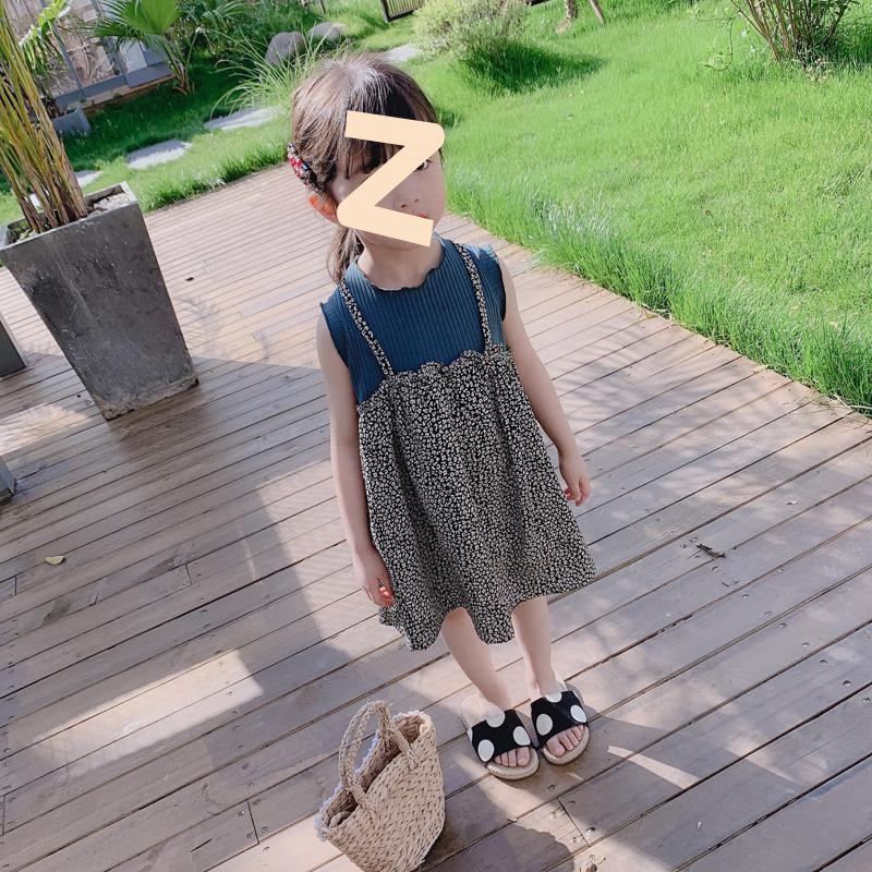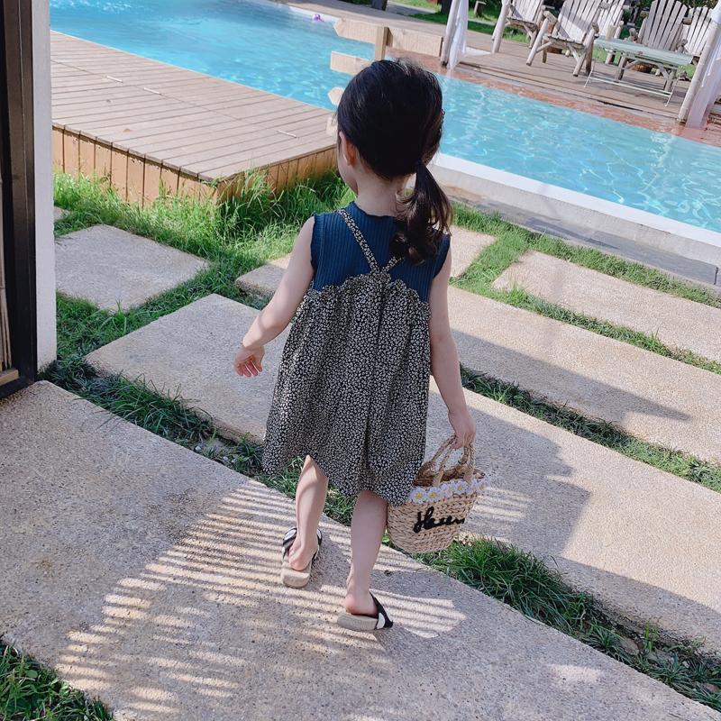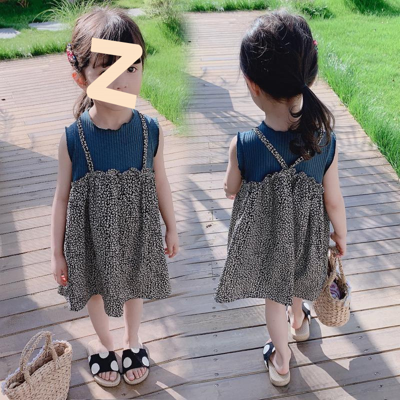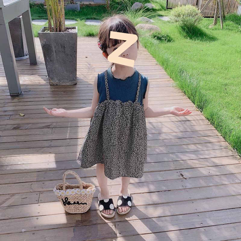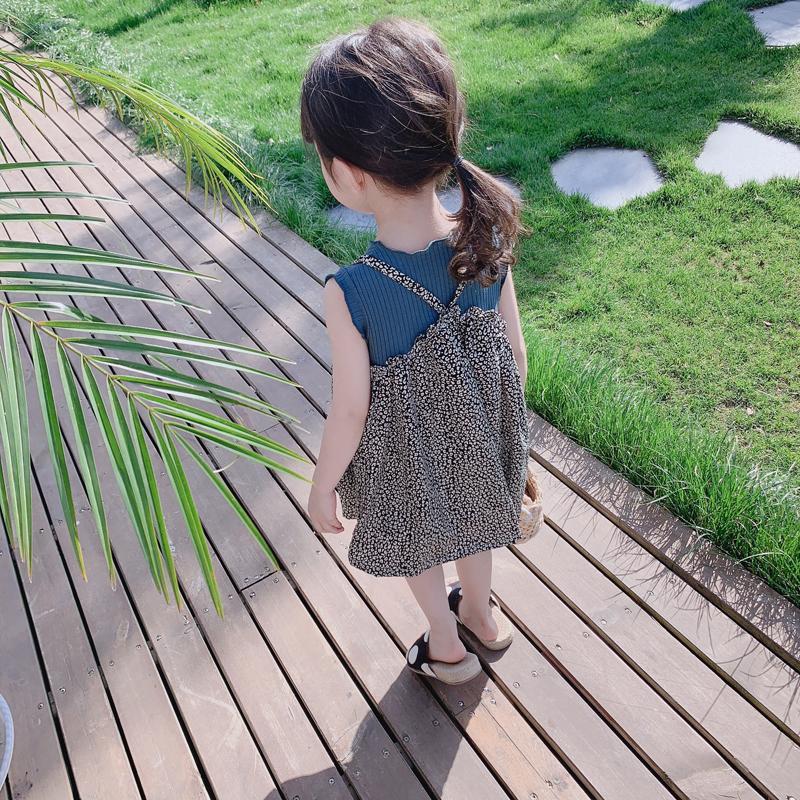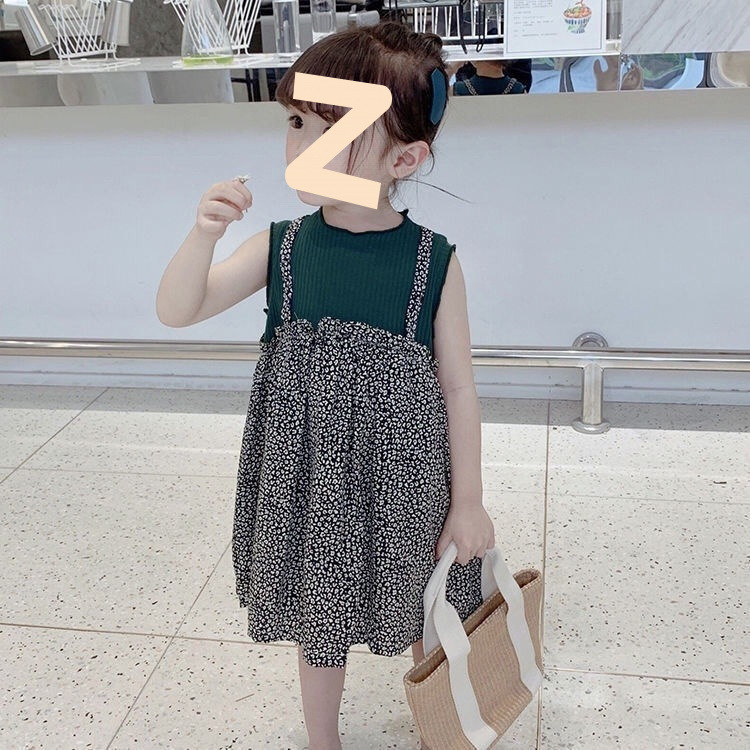 2025 여름 소녀 원피스 아기 소녀 꽃 가짜 2 조각 원피스 아기 민소매 원피스스토어 가기