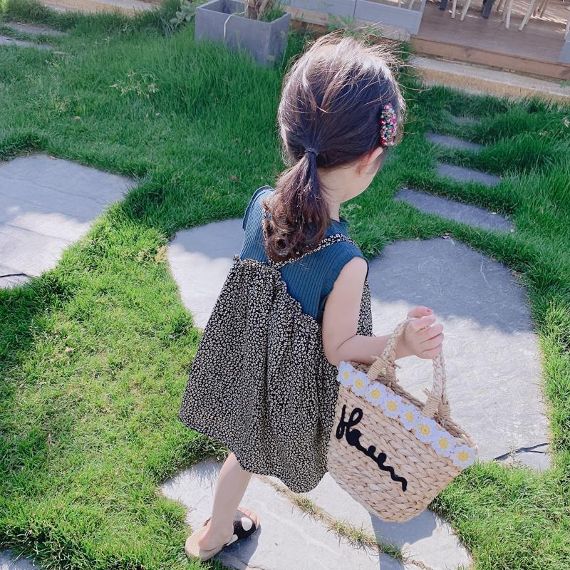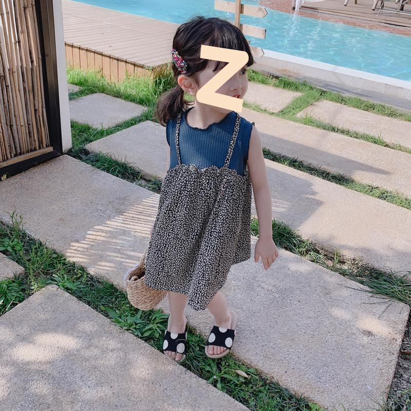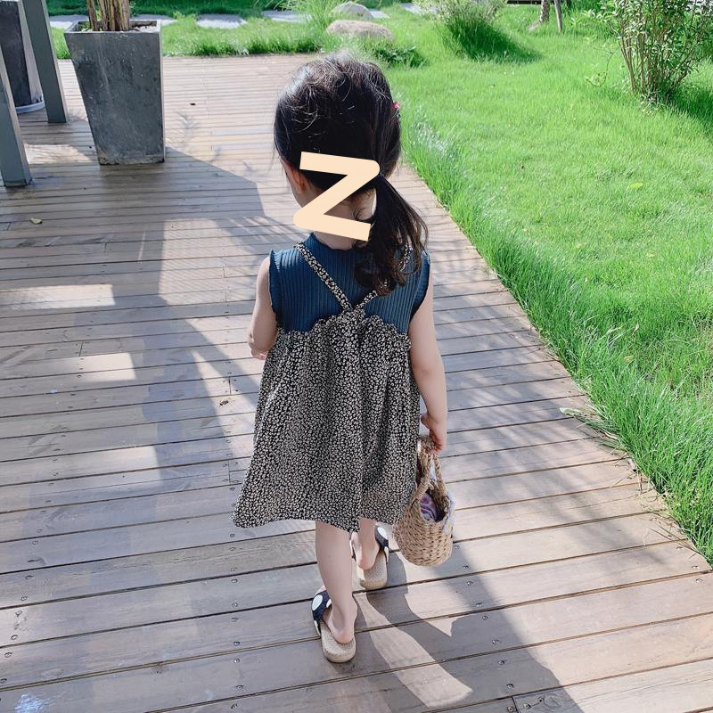 2025 여름 소녀 원피스 아기 소녀 꽃 가짜 2 조각 원피스 아기 민소매 원피스