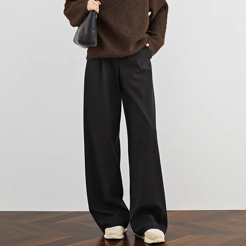 가을 새로운 도착 도자기 다크 브라운 원피스 바지 여성용 허리 디자인 바지 슬림 행운 느슨한 넓은 다리 바지