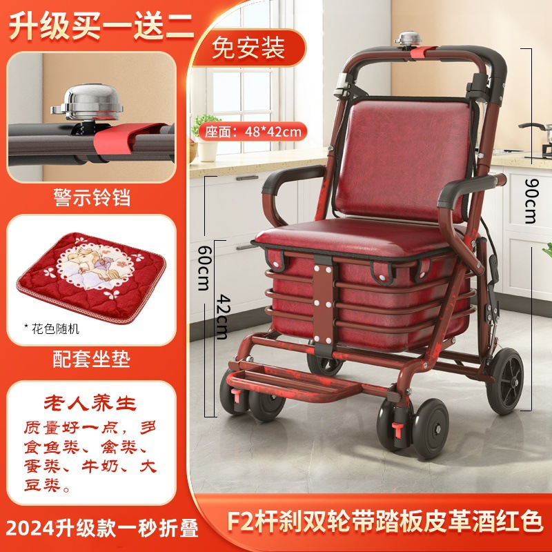 4 륜 음식 쇼핑에 앉아 노인 접이식 쇼핑 용 휴대용 가정용 Sedder 노인을위한 푸시 트롤리 걷기 지원스토어 가기