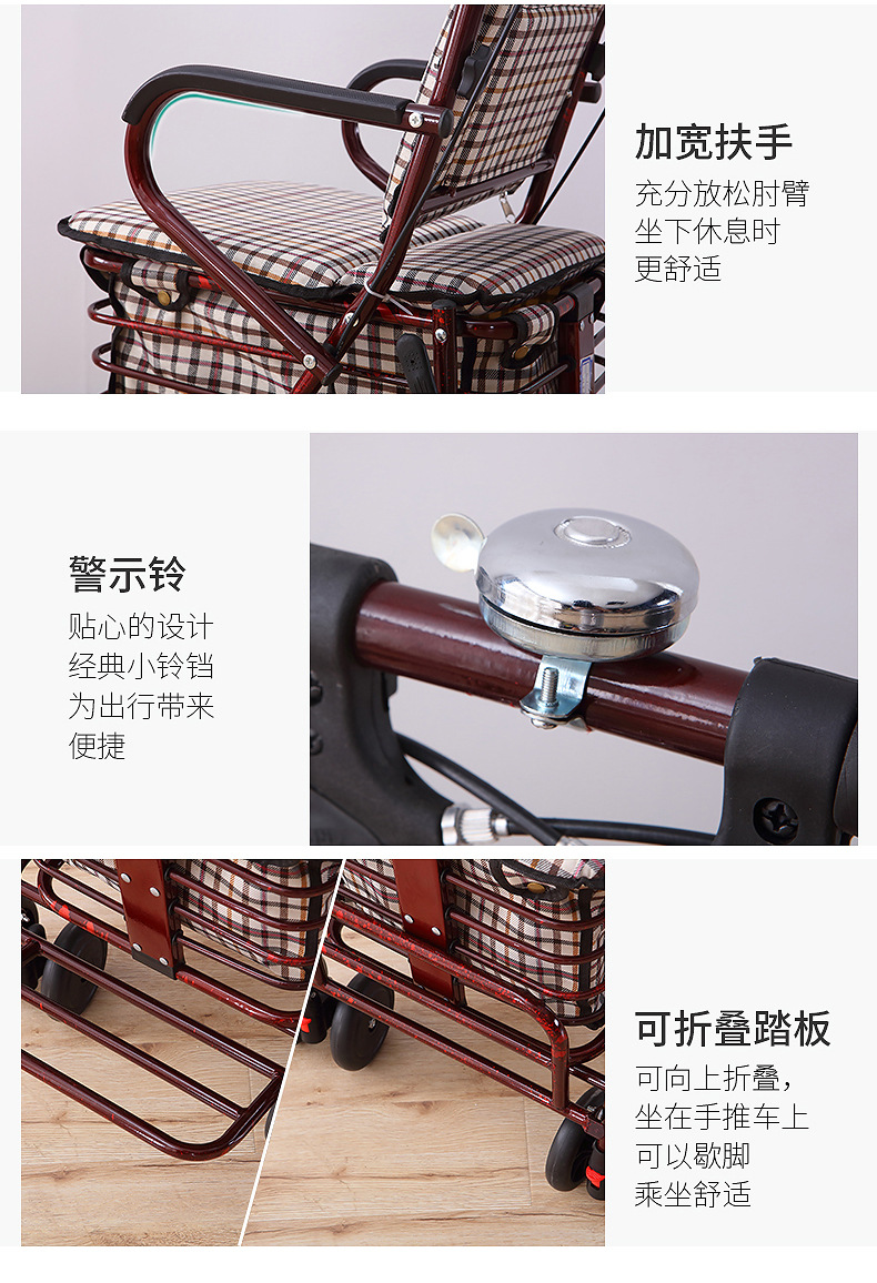 4 륜 음식 쇼핑에 앉아 노인 접이식 쇼핑 용 휴대용 가정용 Sedder 노인을위한 푸시 트롤리 걷기 지원