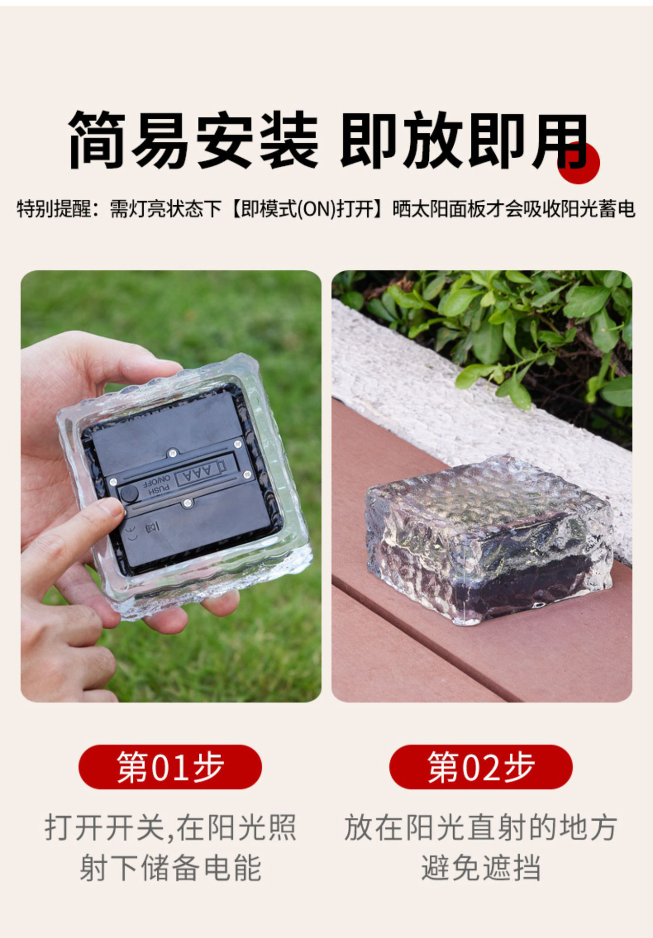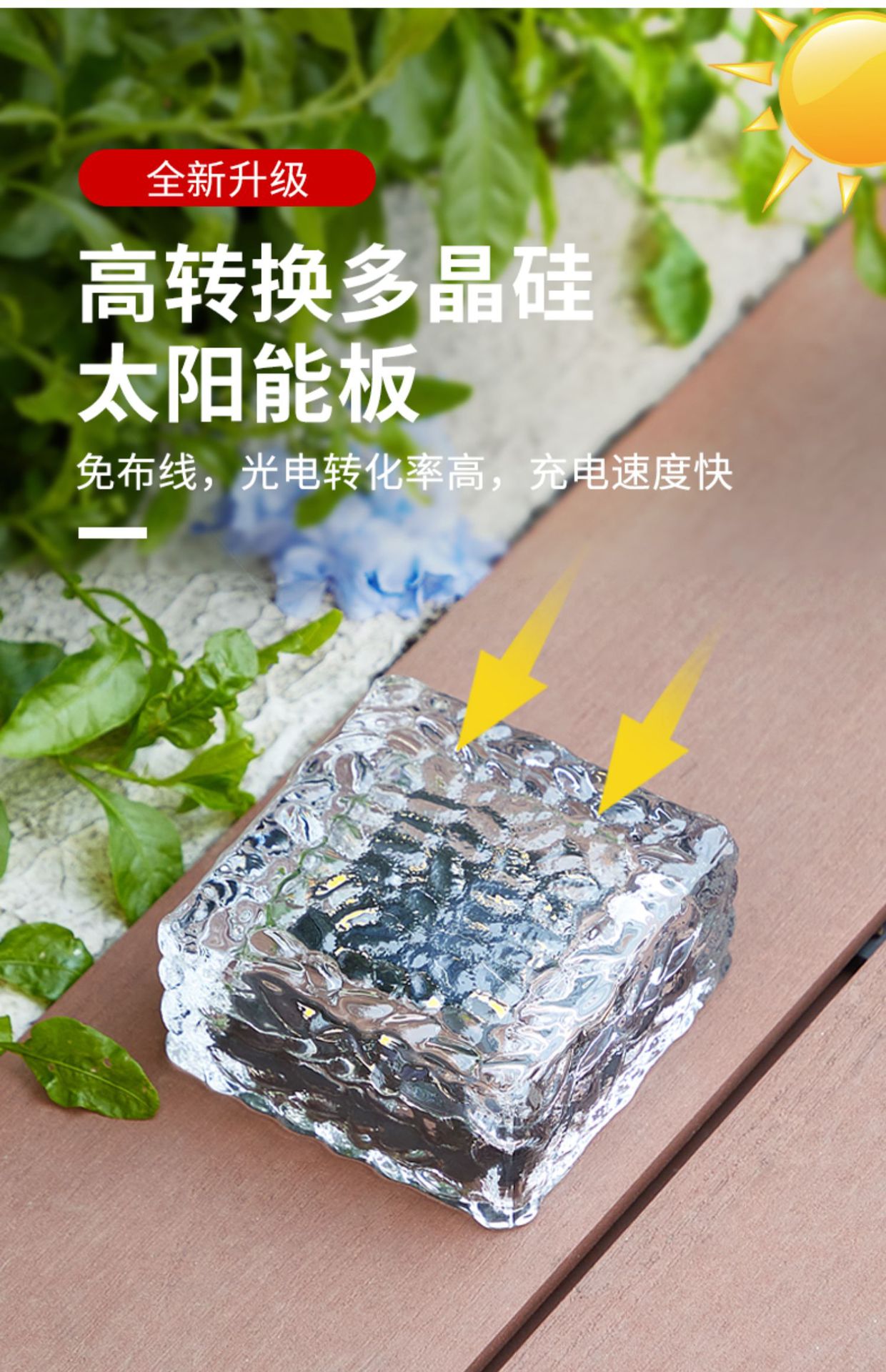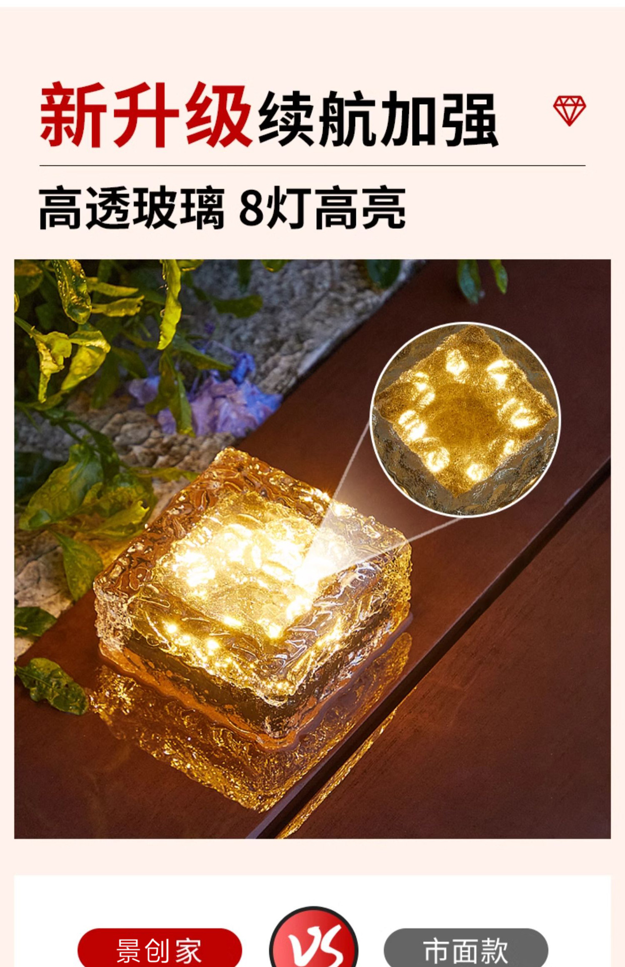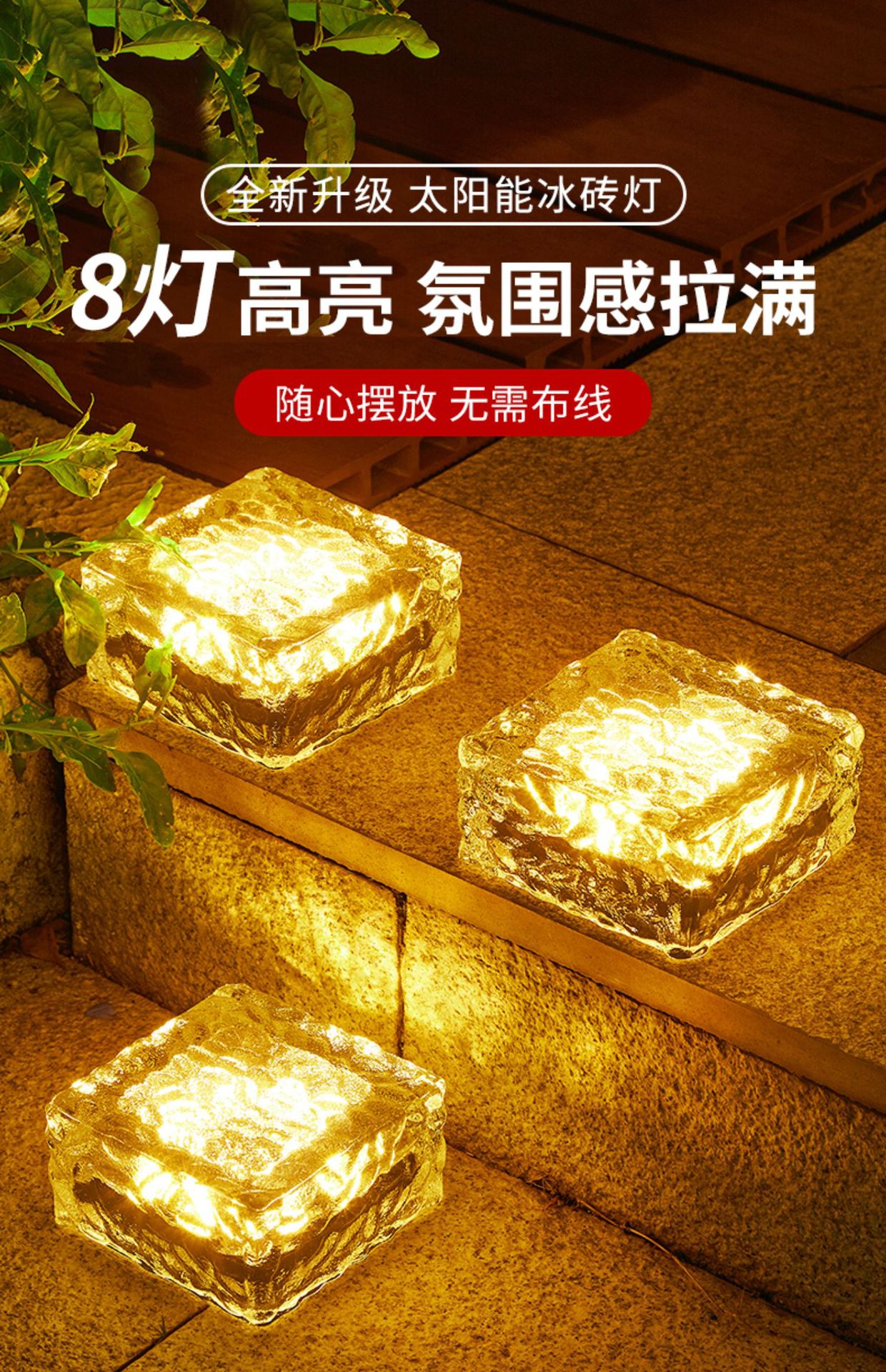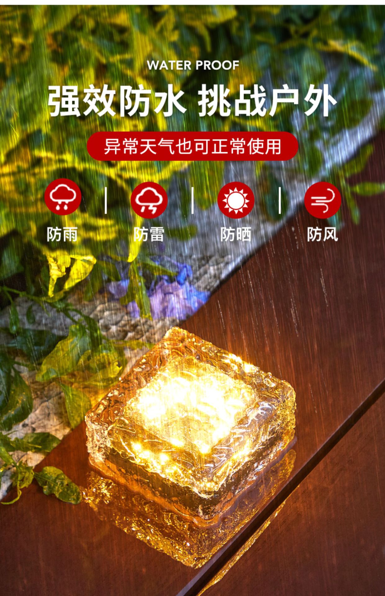 태양 야외 램프 방수 얼음 블록 램프 홈 안뜰 장식 빌라 정원 풍경 램프 잔디 램프 지하 램프