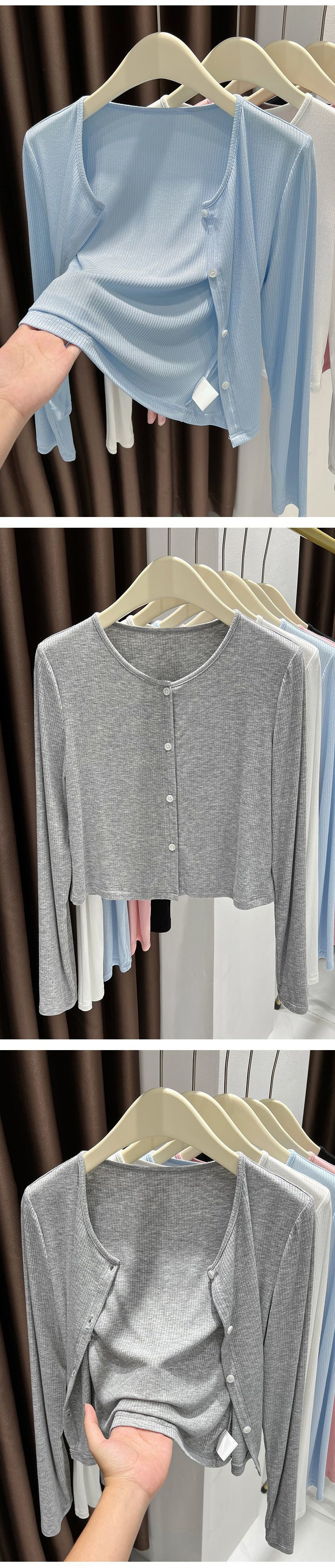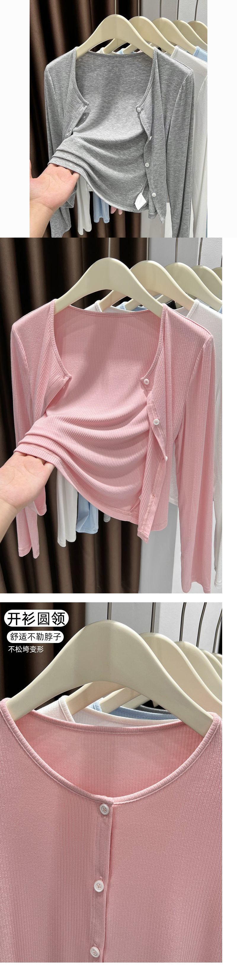 회색 니트 카디건 얇은 외투 썬 스크린 블라우스 목도리 여성 외부 2025 여름 새 사무실 에어컨 셔츠스토어 가기