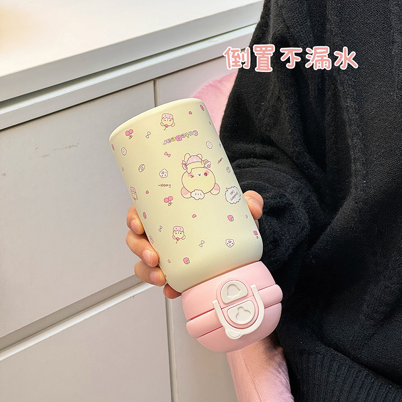 Ins 고 부가가치 밀짚 물 컵 여성 학생 이중 음료 내열성 폭발 방지 플라스틱 컵 그물 유명 인사 모자와 폭발 방지 곰