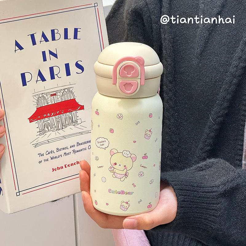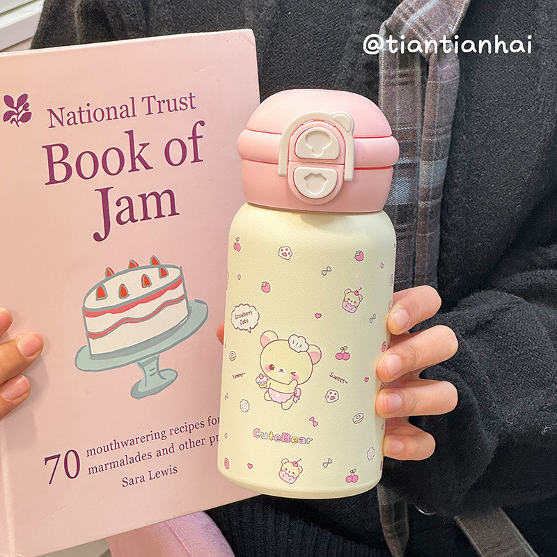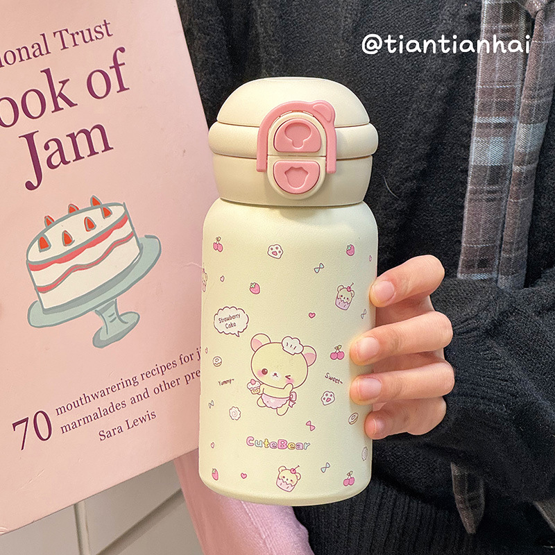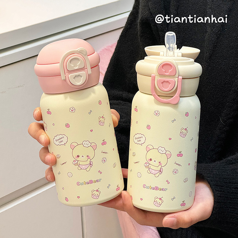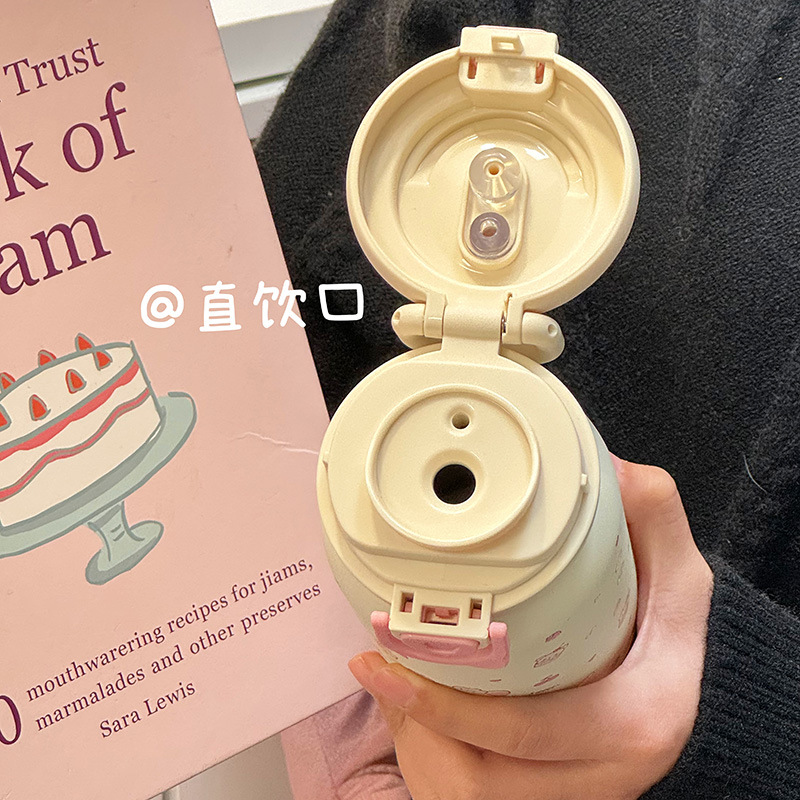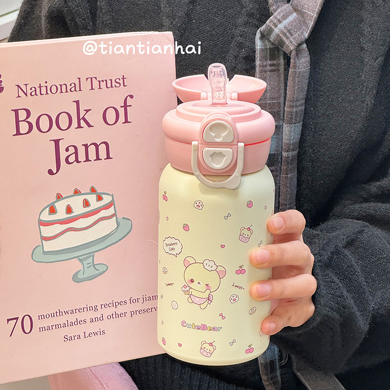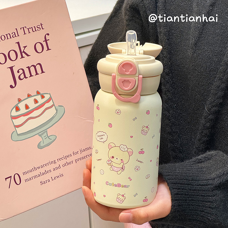 Ins 고 부가가치 밀짚 물 컵 여성 학생 이중 음료 내열성 폭발 방지 플라스틱 컵 그물 유명 인사 모자와 폭발 방지 곰스토어 가기