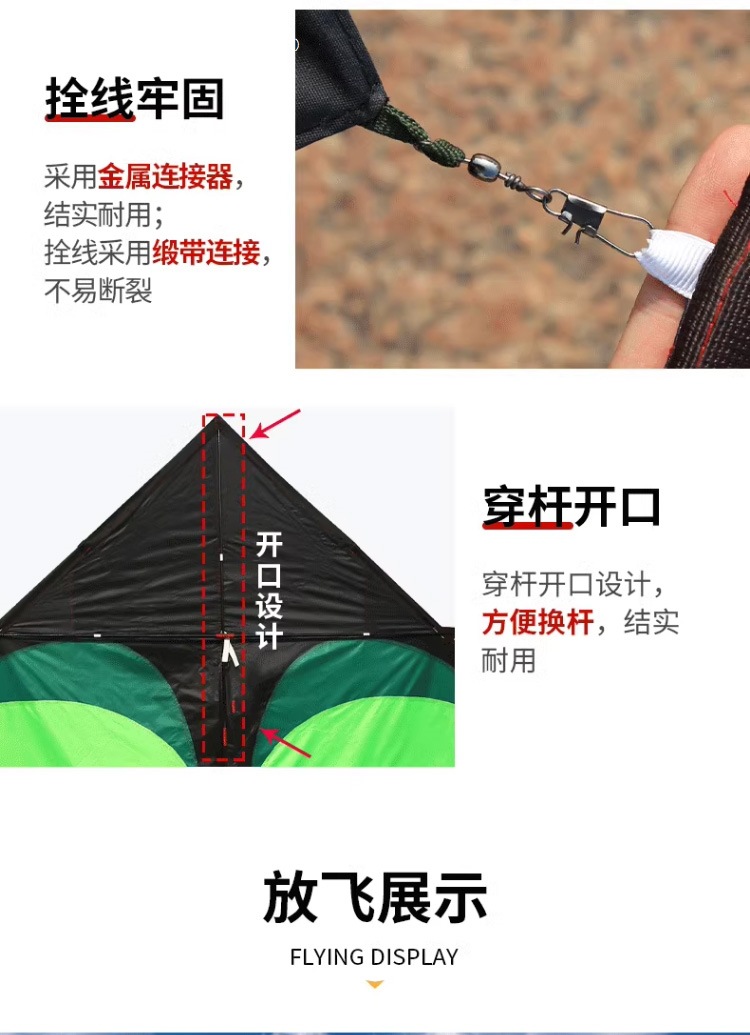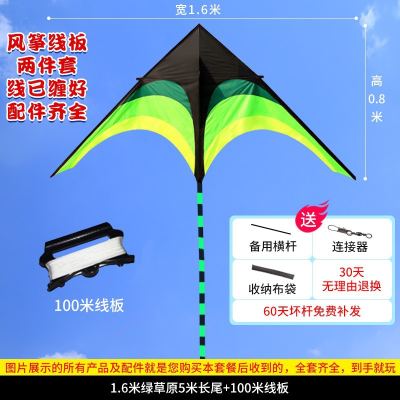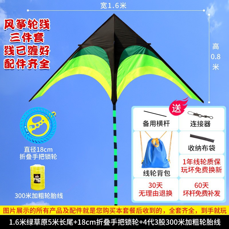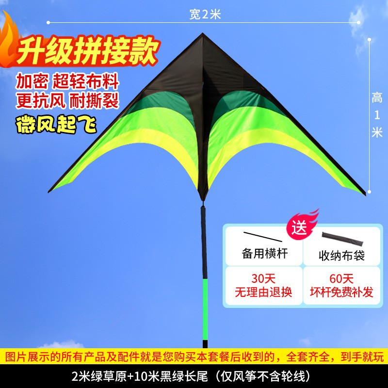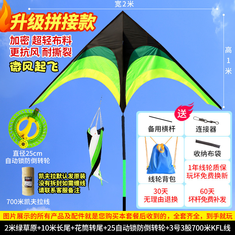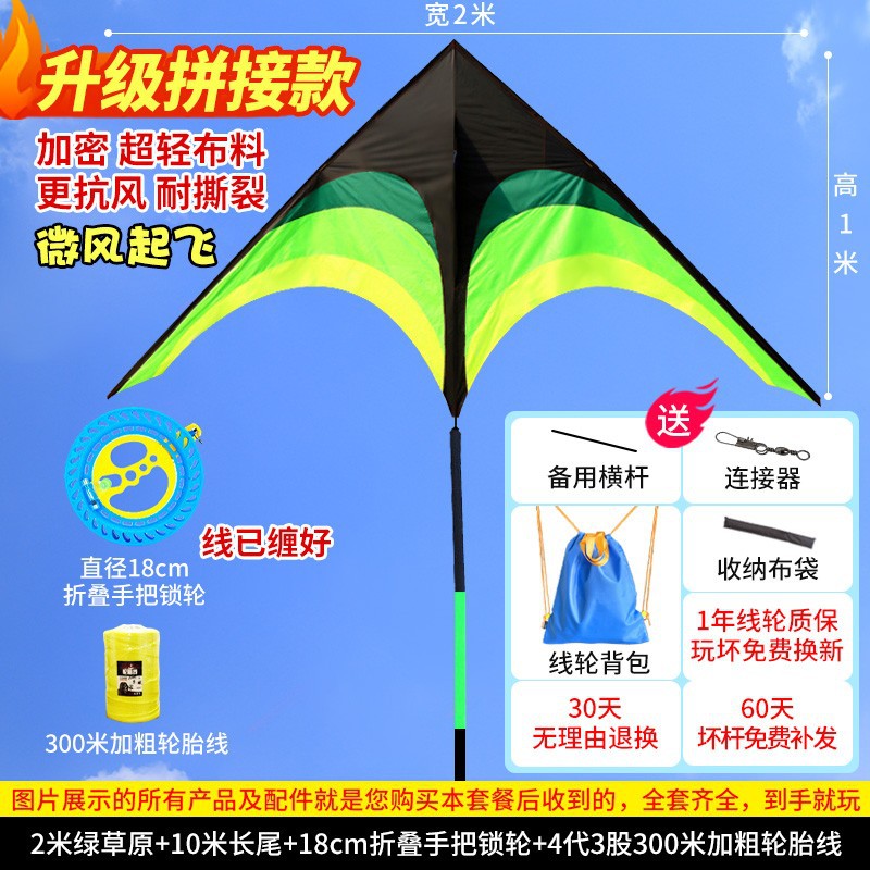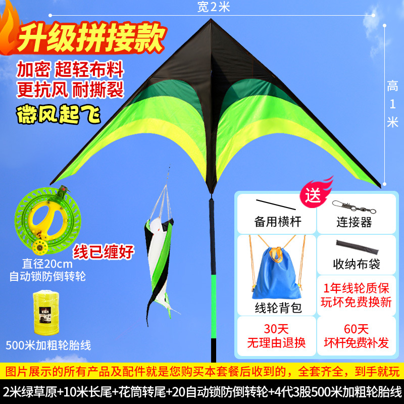 • [프리 스페어 폴 + 천 가방] 업그레이드 2m 프레리 15m 검정 및 녹색 꼬리(연 무선 휠만 해당)