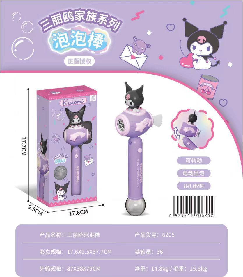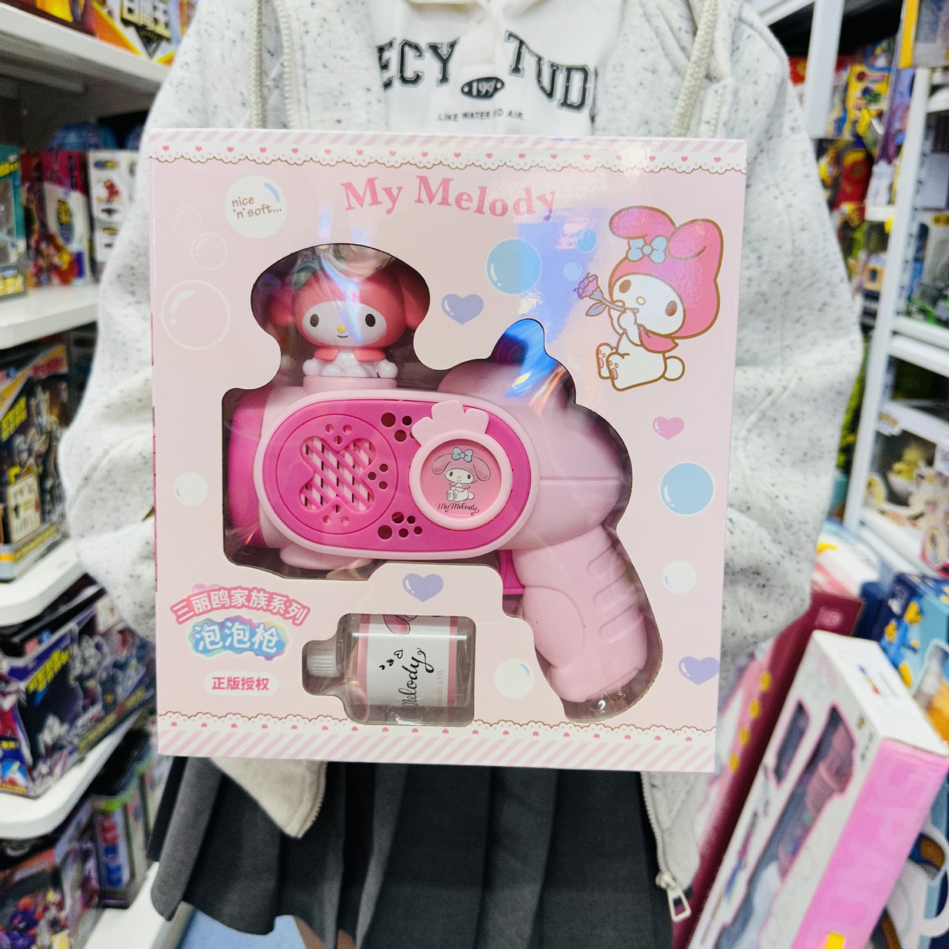 정품 Sanrio Kulomi 멜로디 핸드 헬드 전기 풍차 버블 스틱 아이들이 버블 넷 레드 장난감을 불고 있습니다.스토어 가기