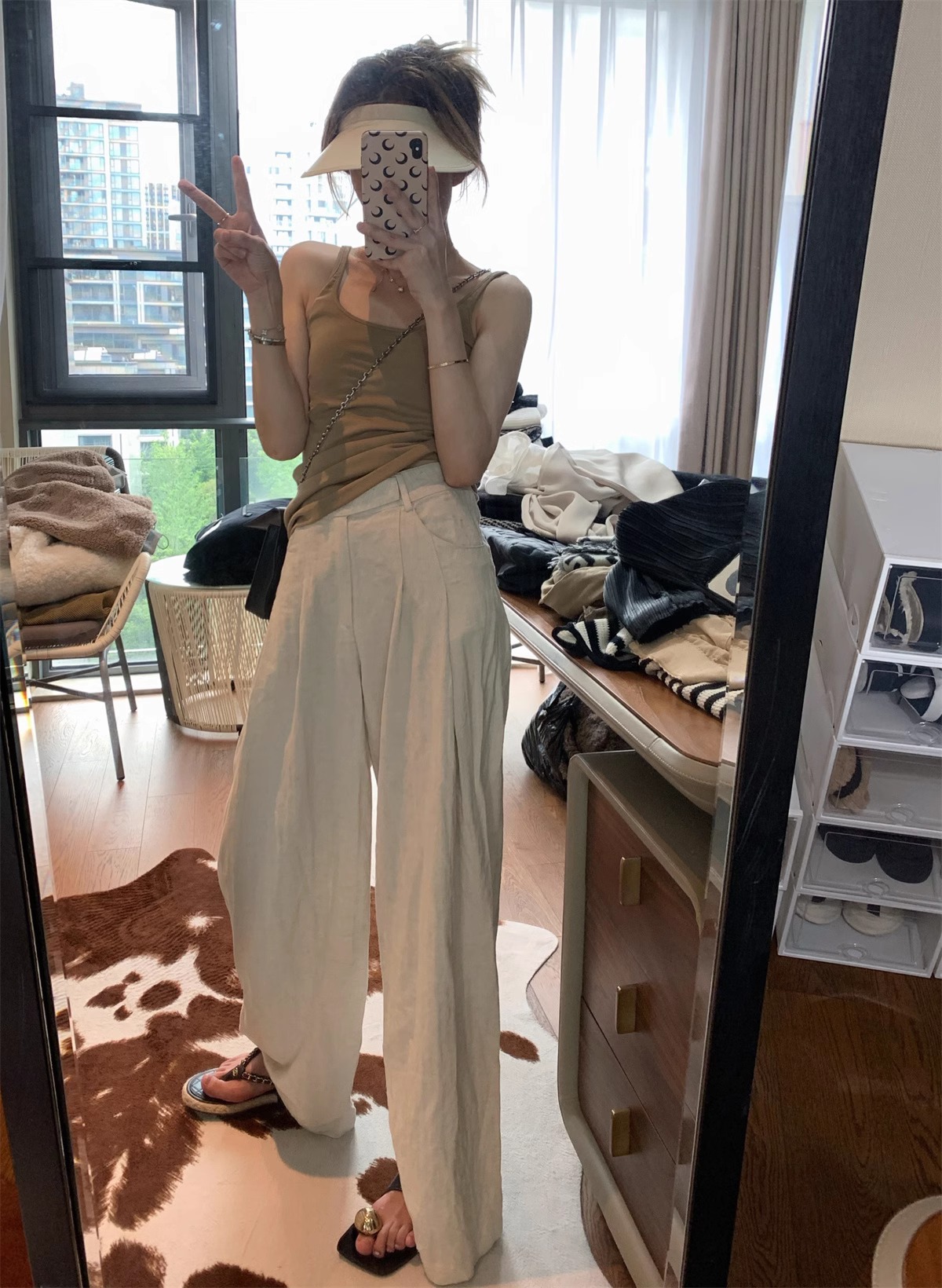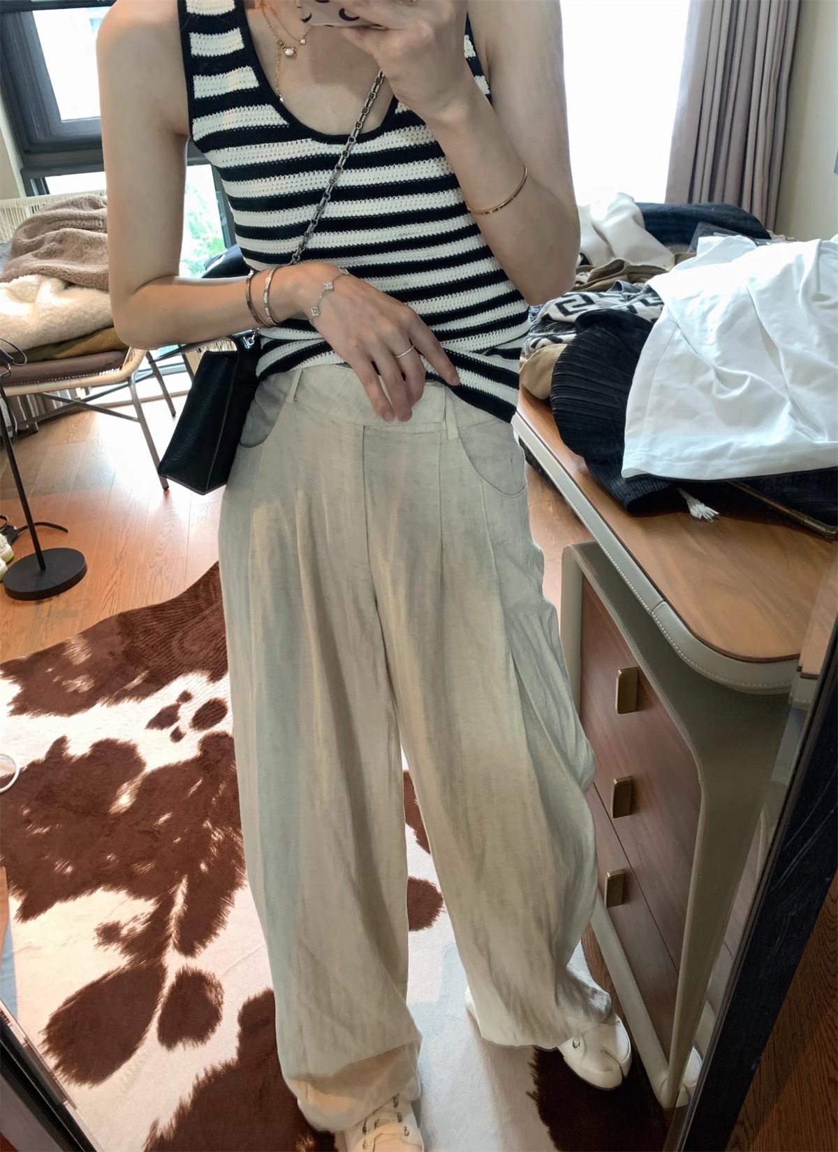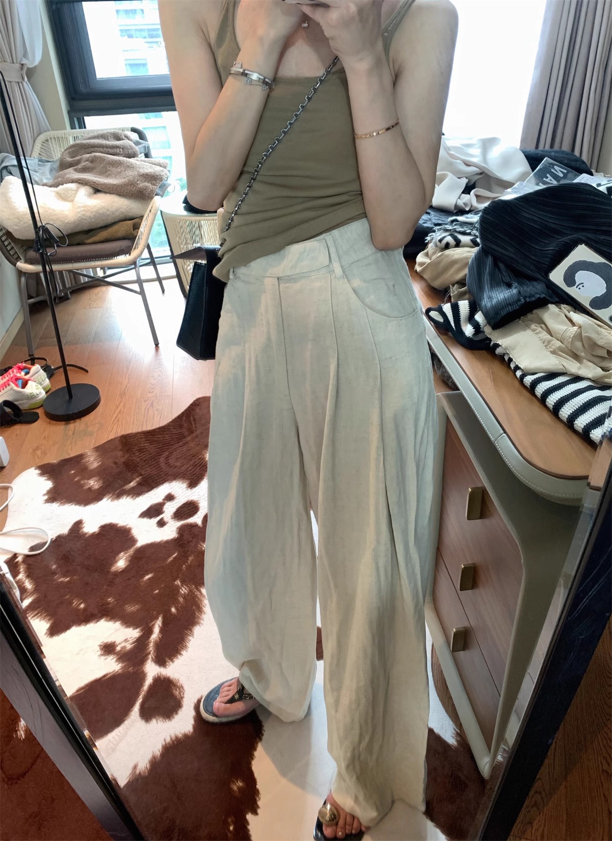 린넨 와이드 레그 바지 여성용 여름 디자인 센스 Daggy 스트레이트 게으른 스타일 코튼 린넨 얇은 세트 캐주얼 바지