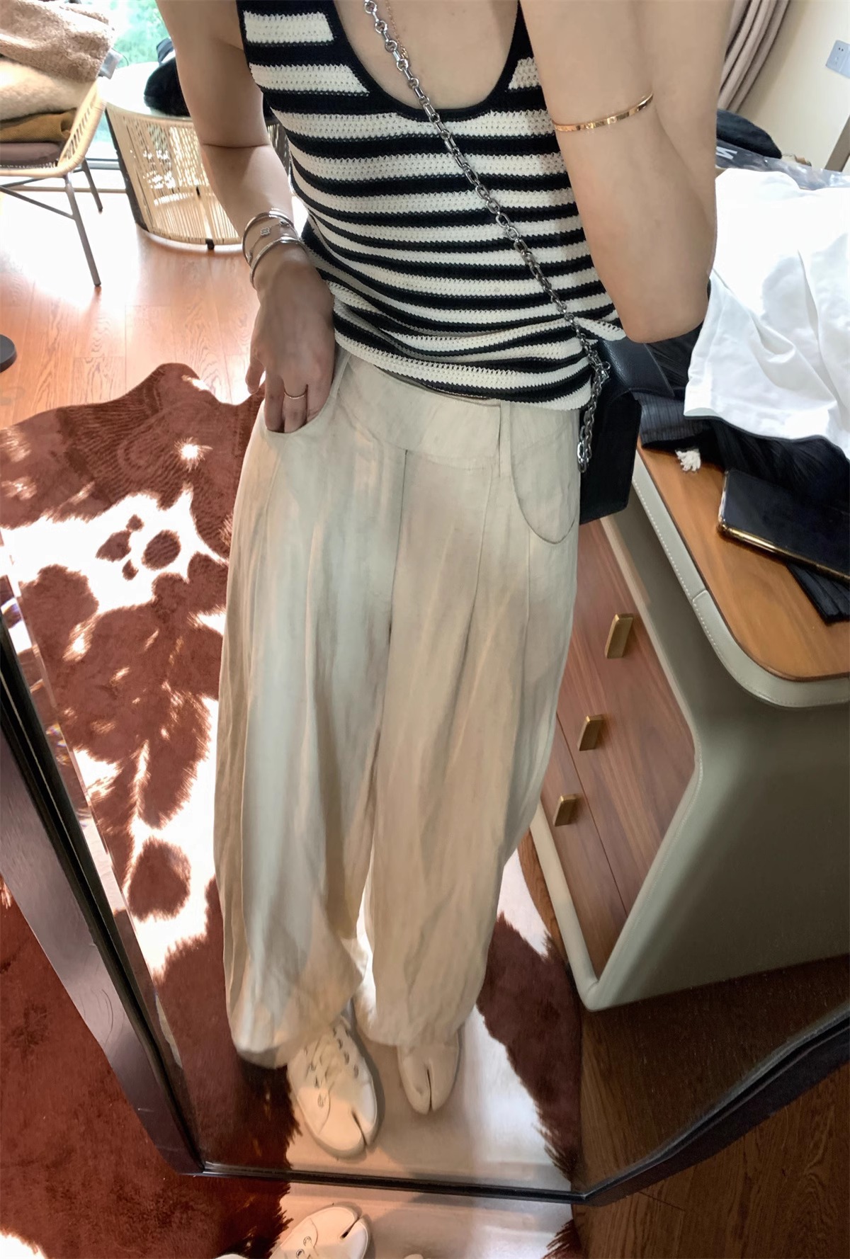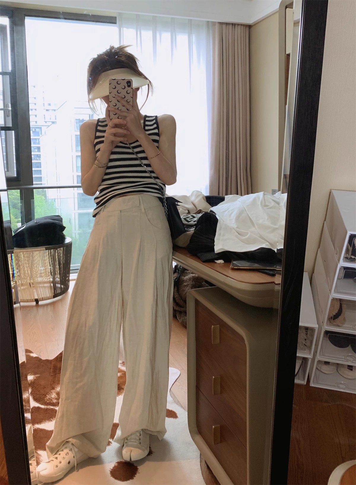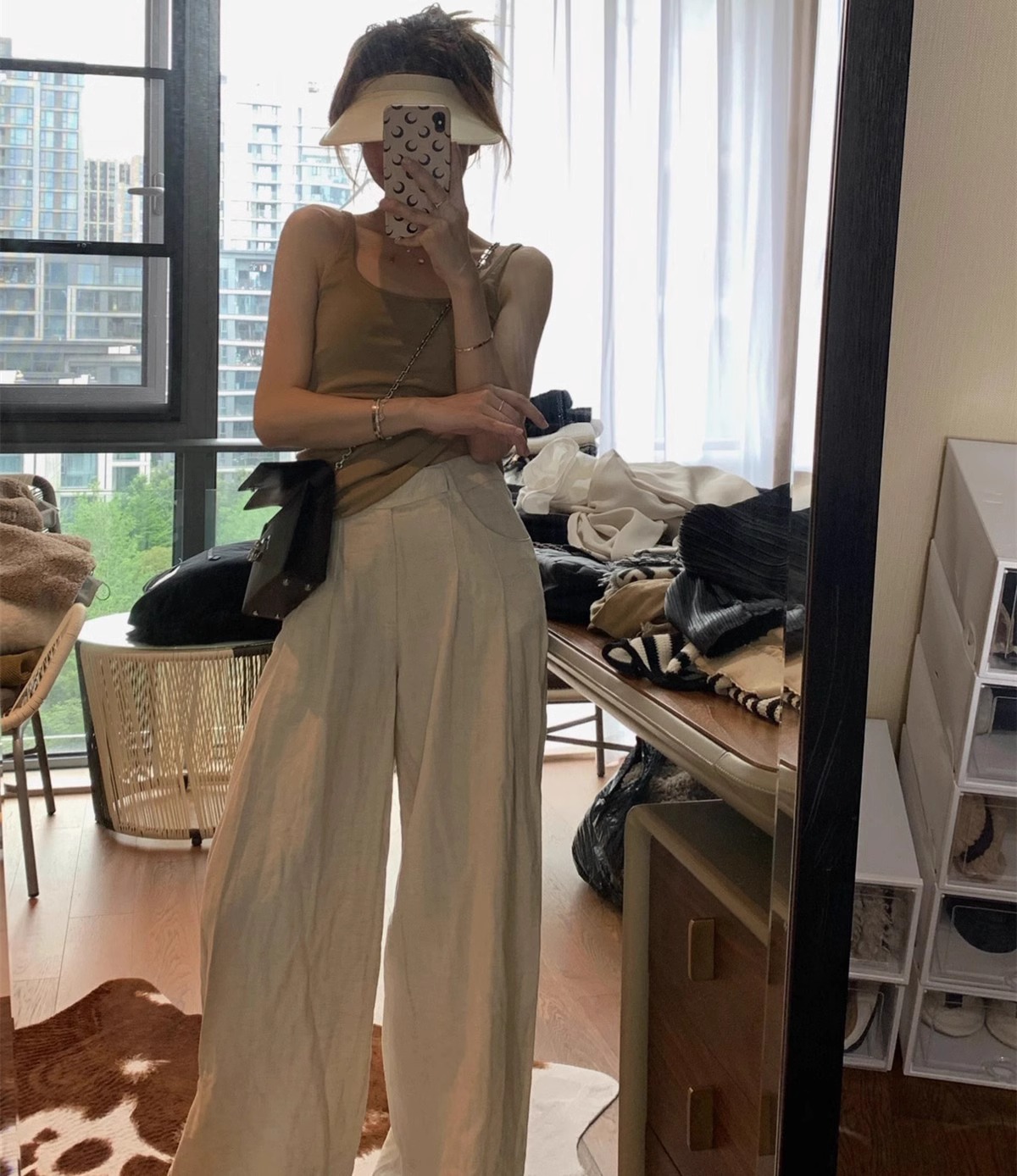 린넨 와이드 레그 바지 여성용 여름 디자인 센스 Daggy 스트레이트 게으른 스타일 코튼 린넨 얇은 세트 캐주얼 바지