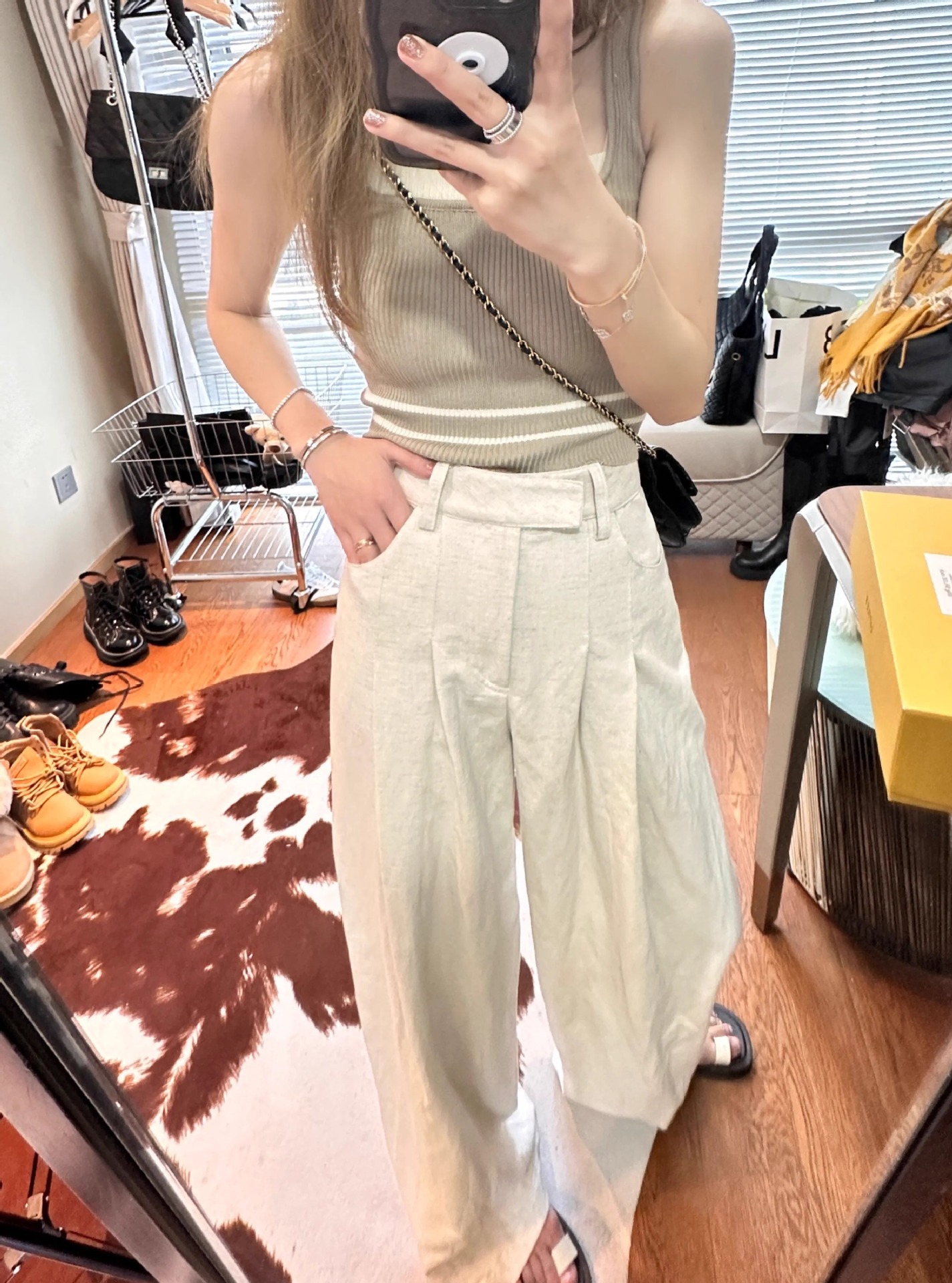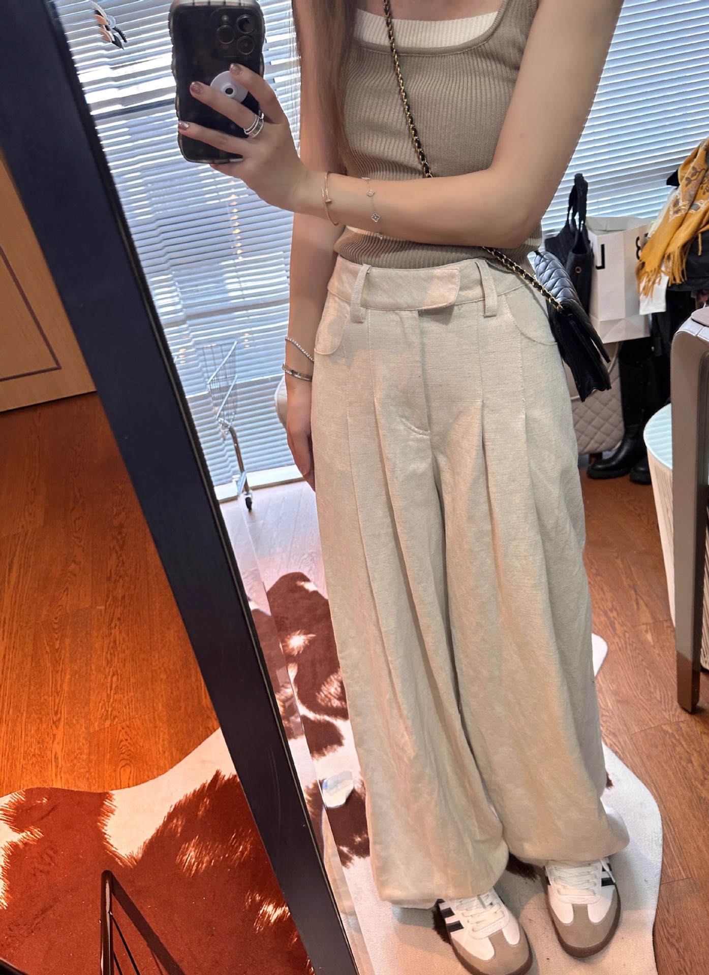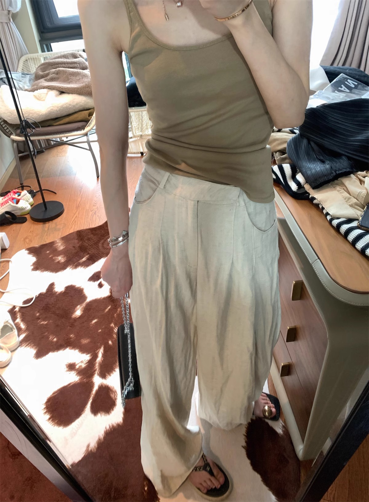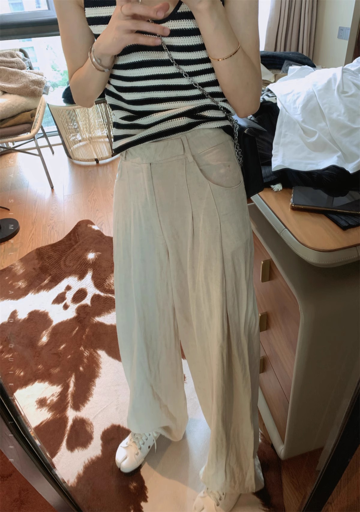 린넨 와이드 레그 바지 여성용 여름 디자인 센스 Daggy 스트레이트 게으른 스타일 코튼 린넨 얇은 세트 캐주얼 바지스토어 가기