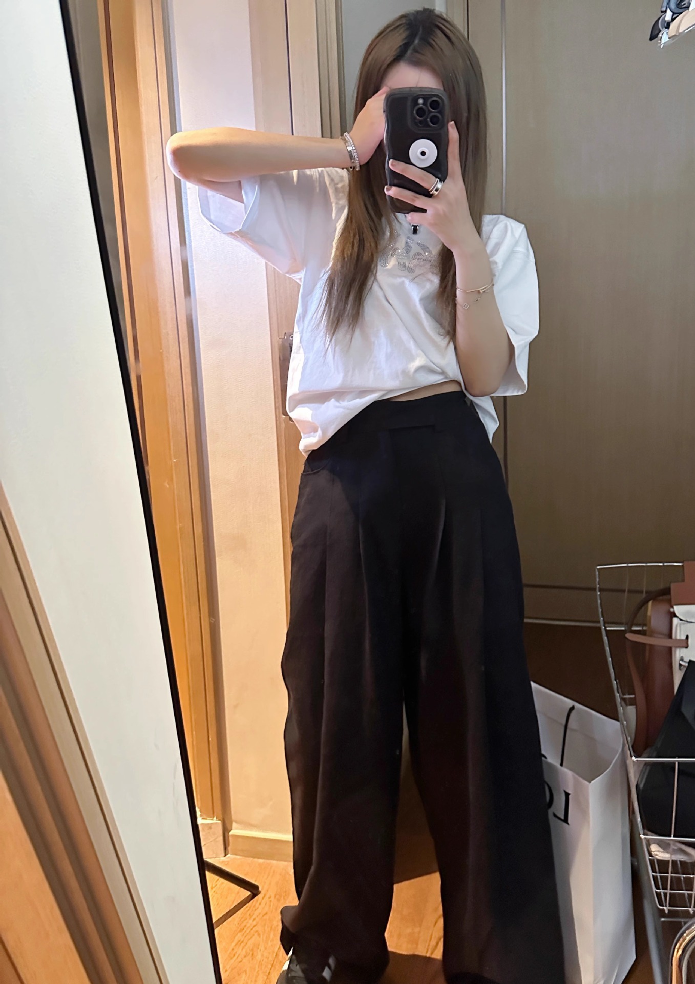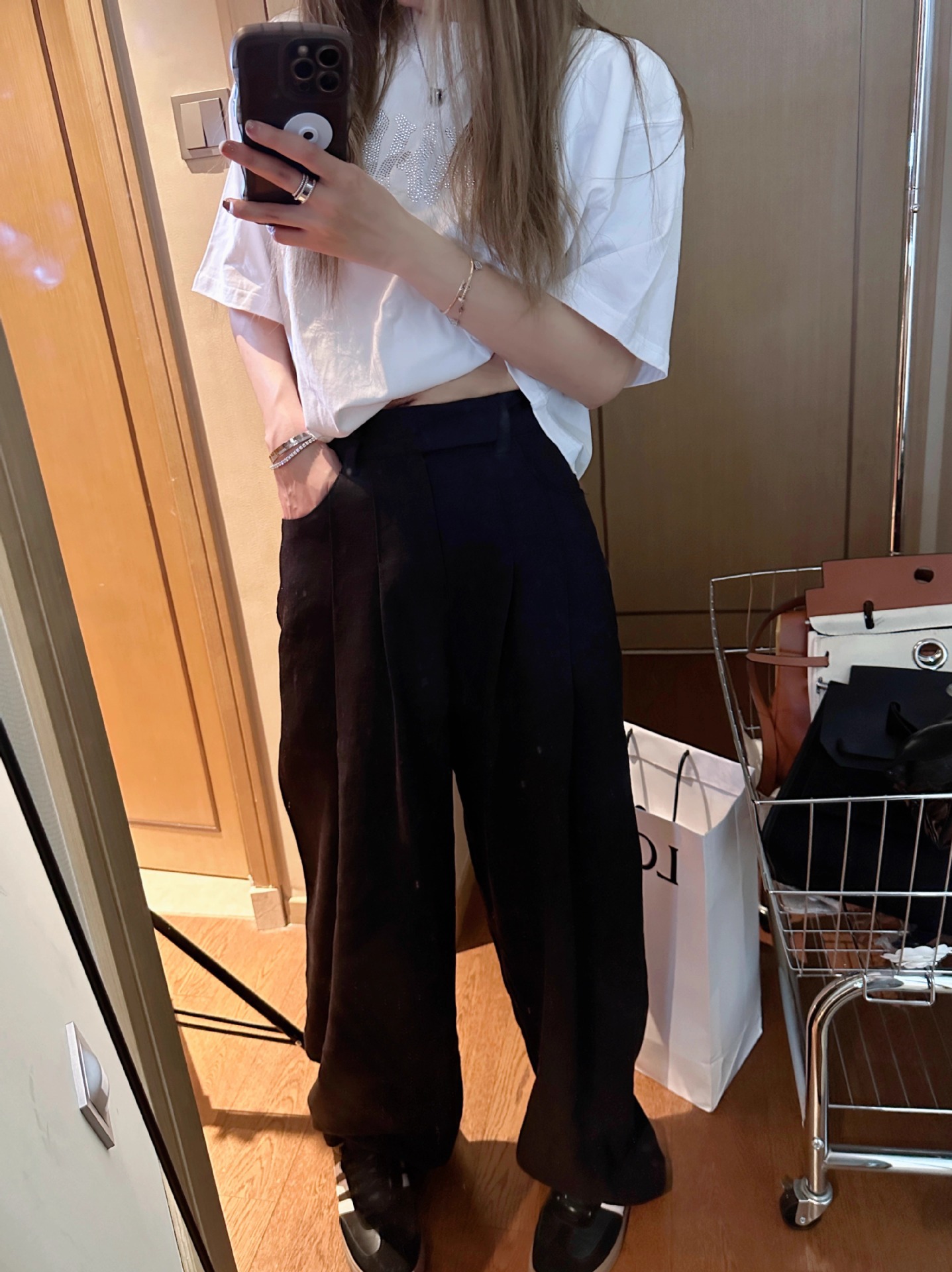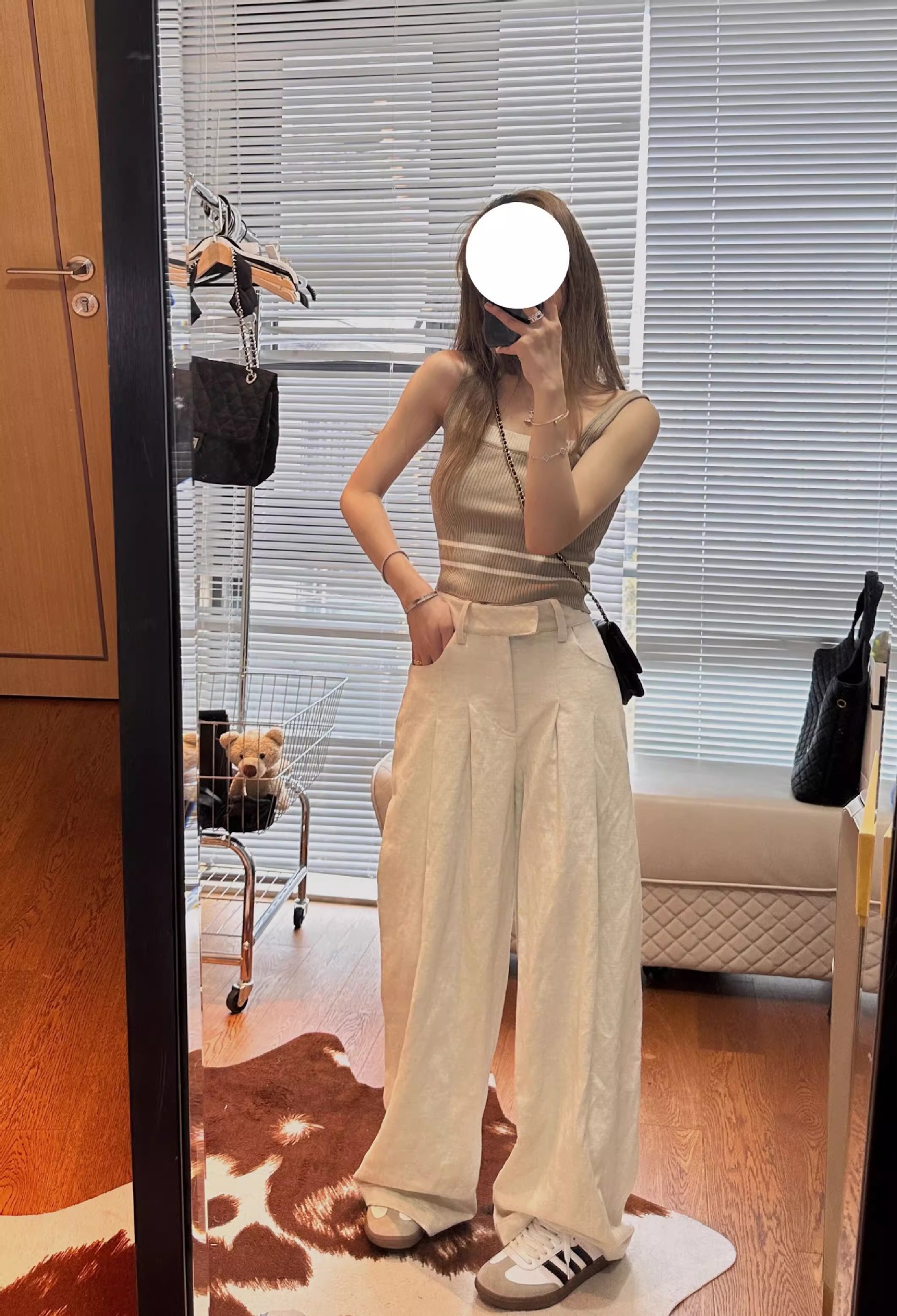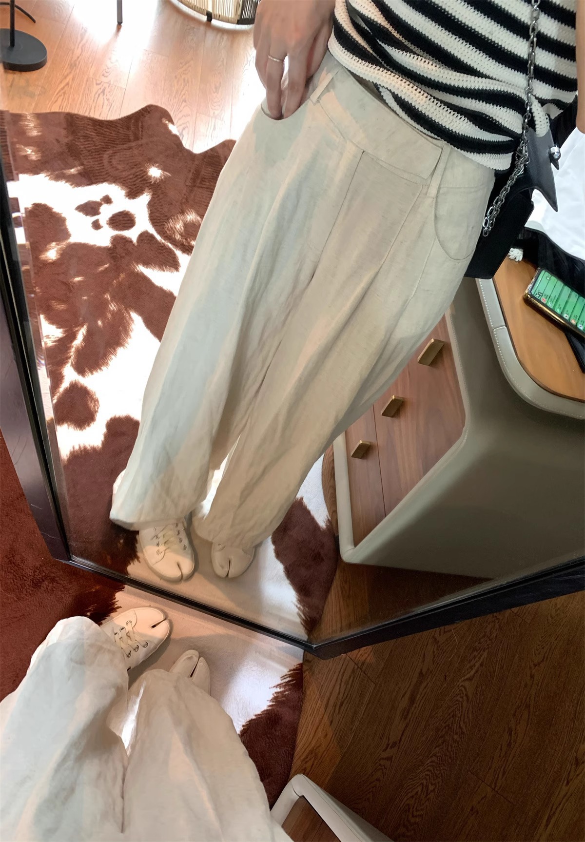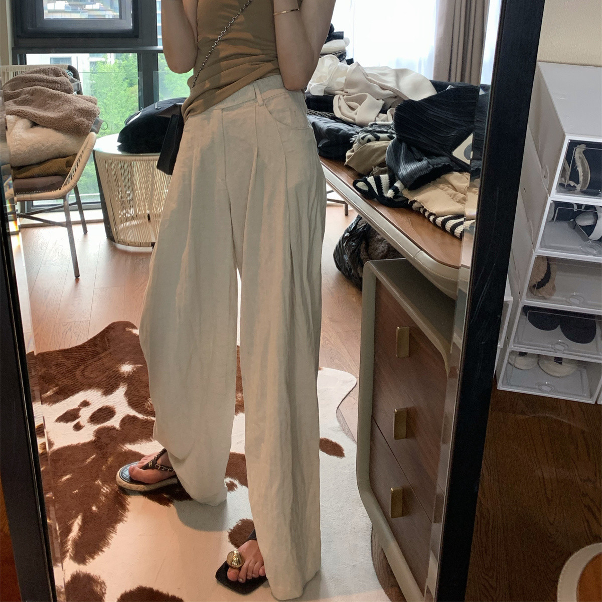 亚麻阔腿裤女夏季垂感直筒拖地长裤慵懒风西装休闲裤棉麻长裤薄款
