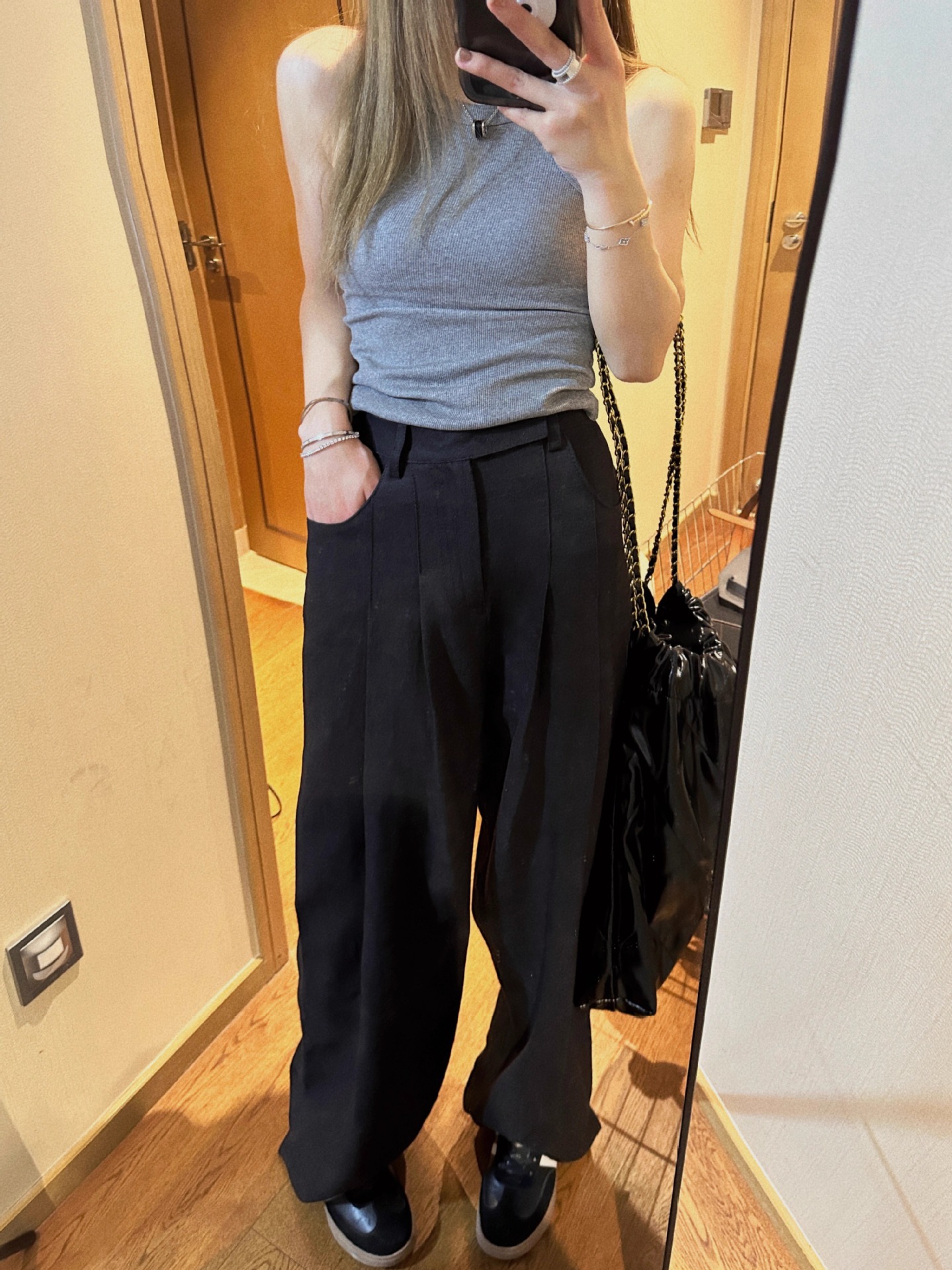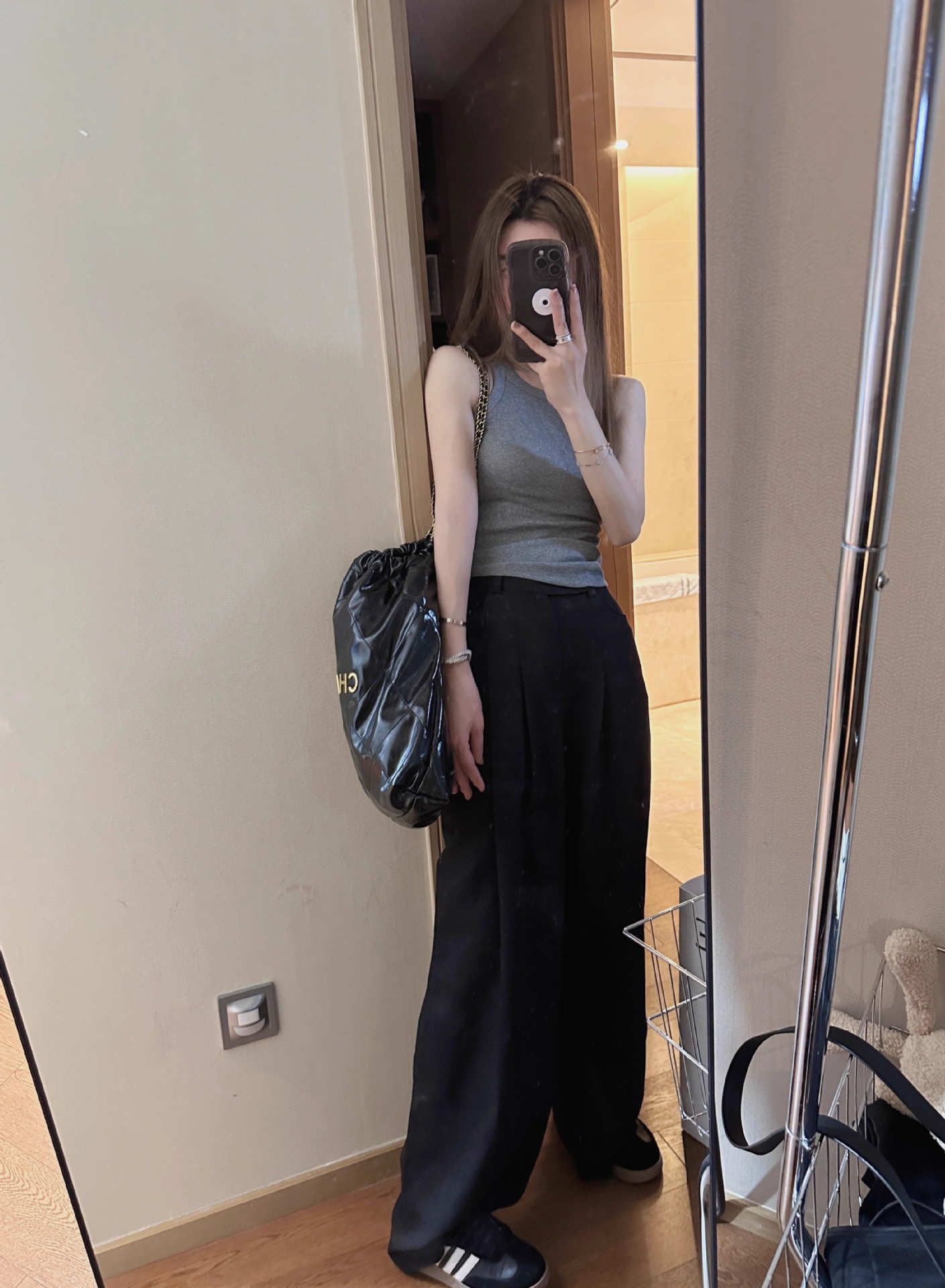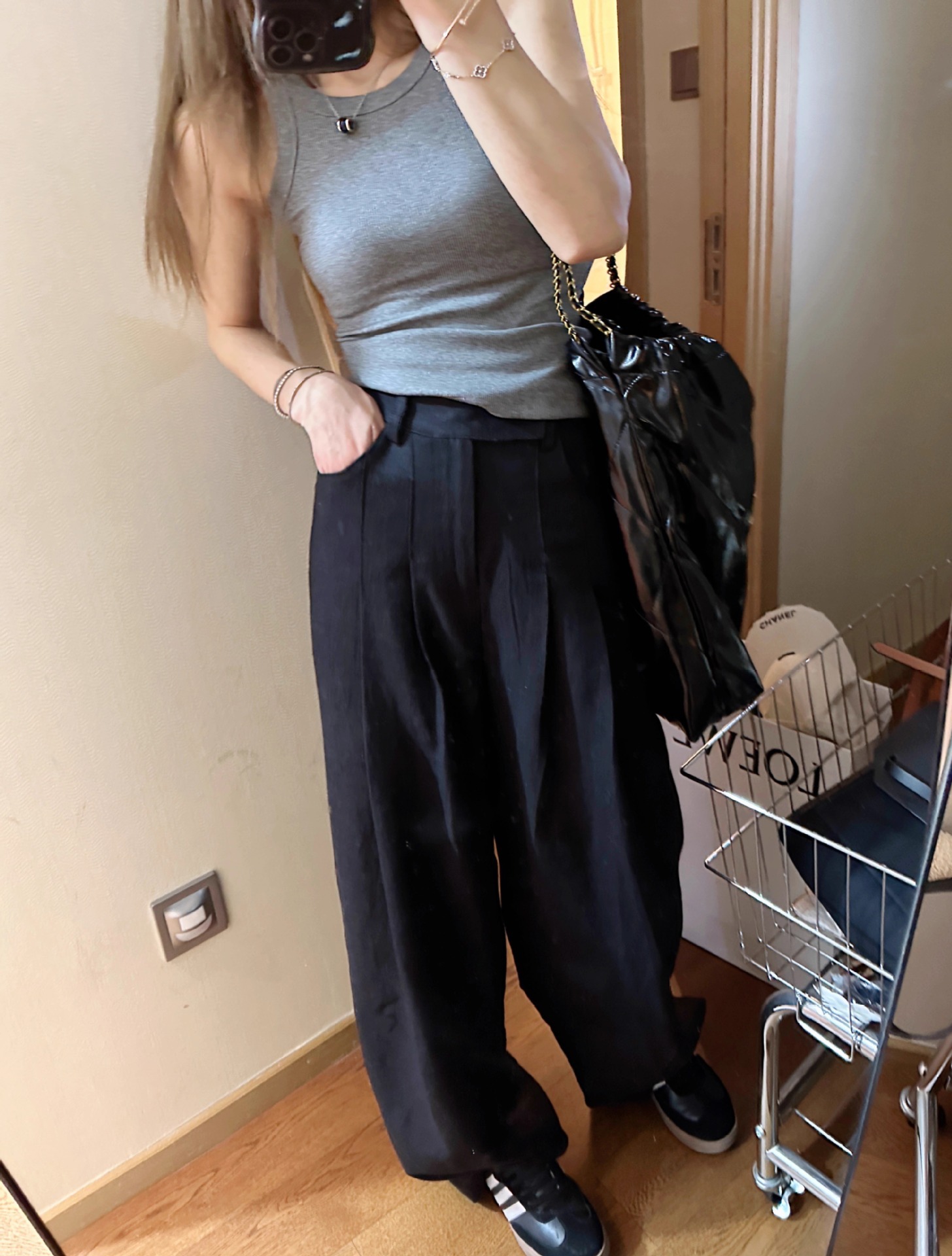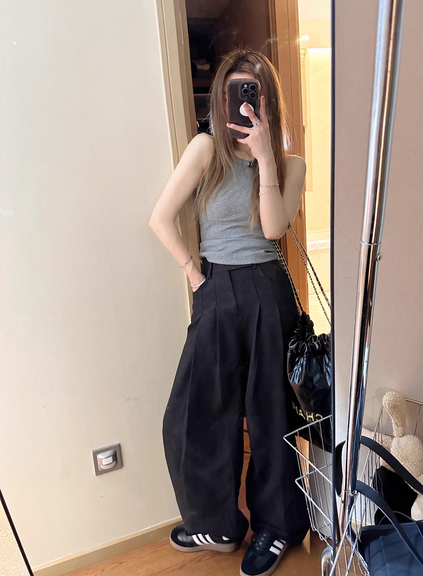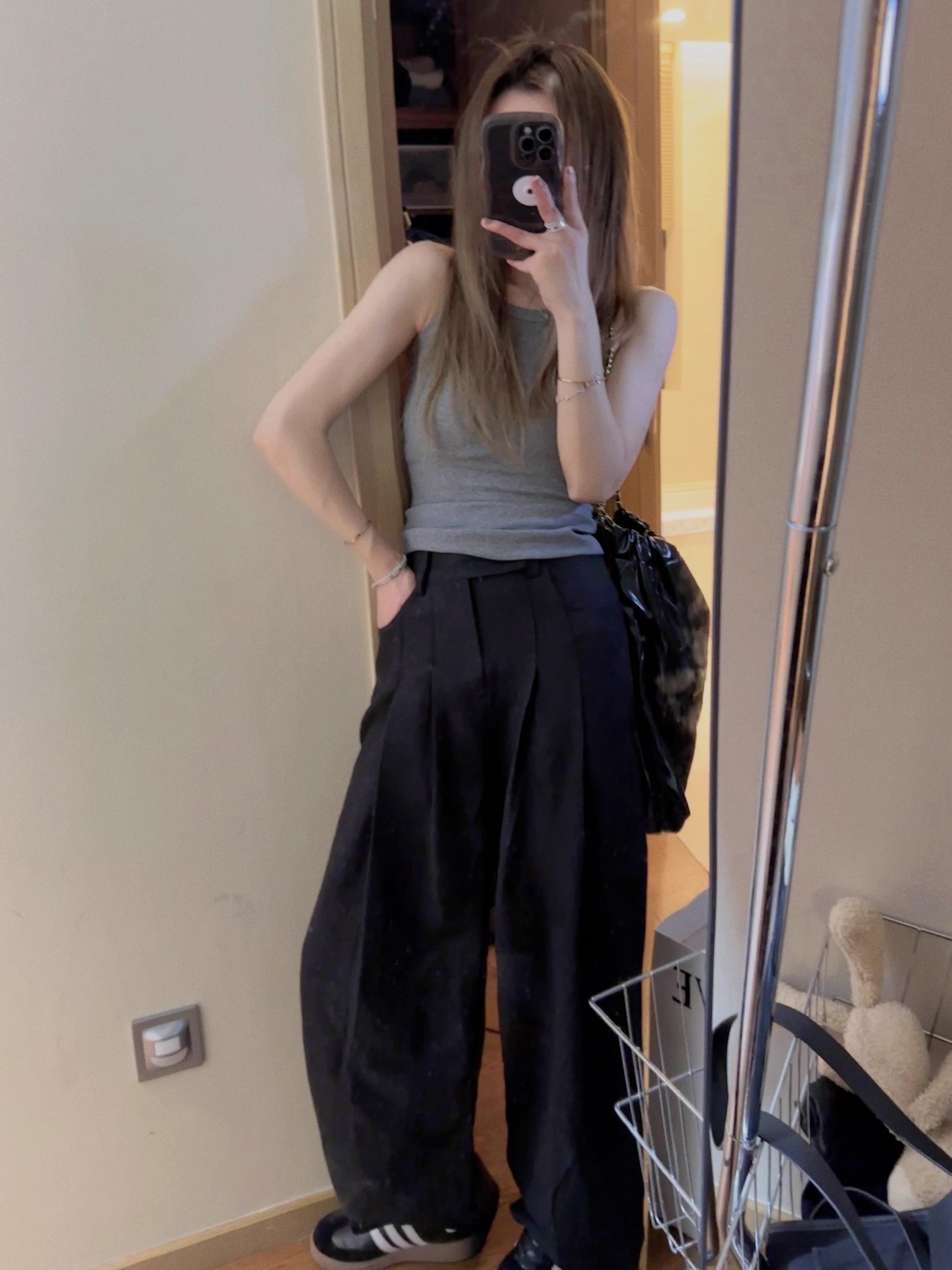 亚麻阔腿裤女夏季垂感直筒拖地长裤慵懒风西装休闲裤棉麻长裤薄款