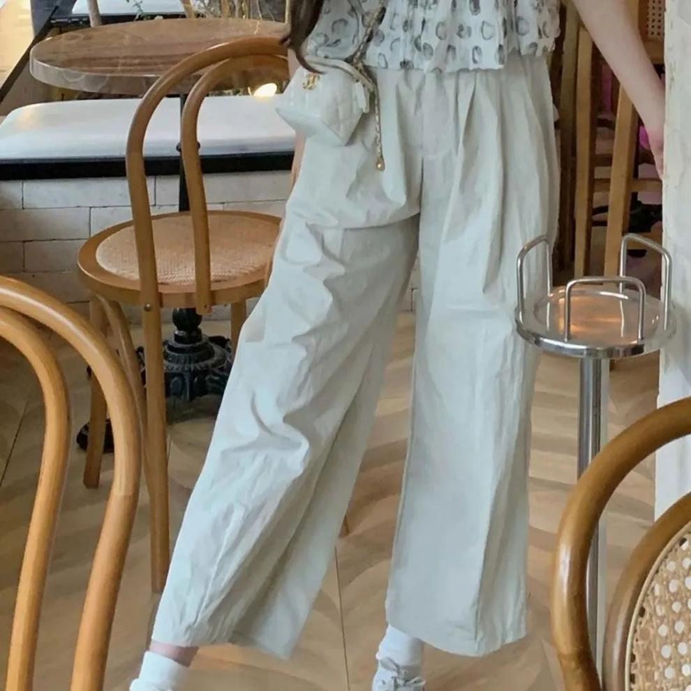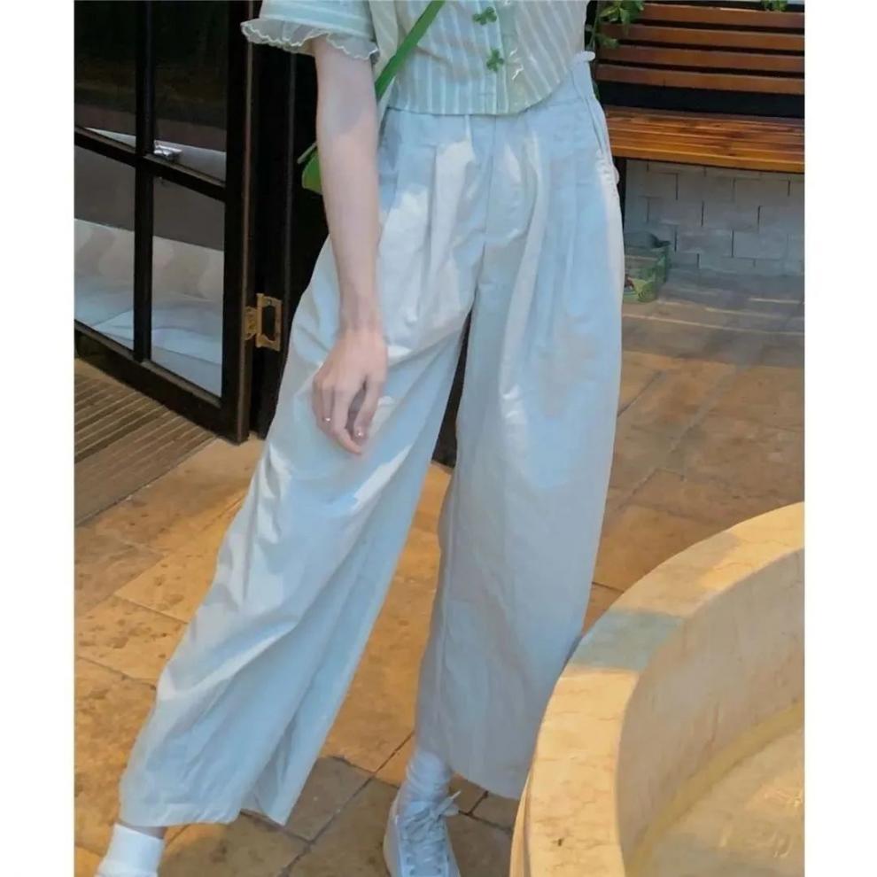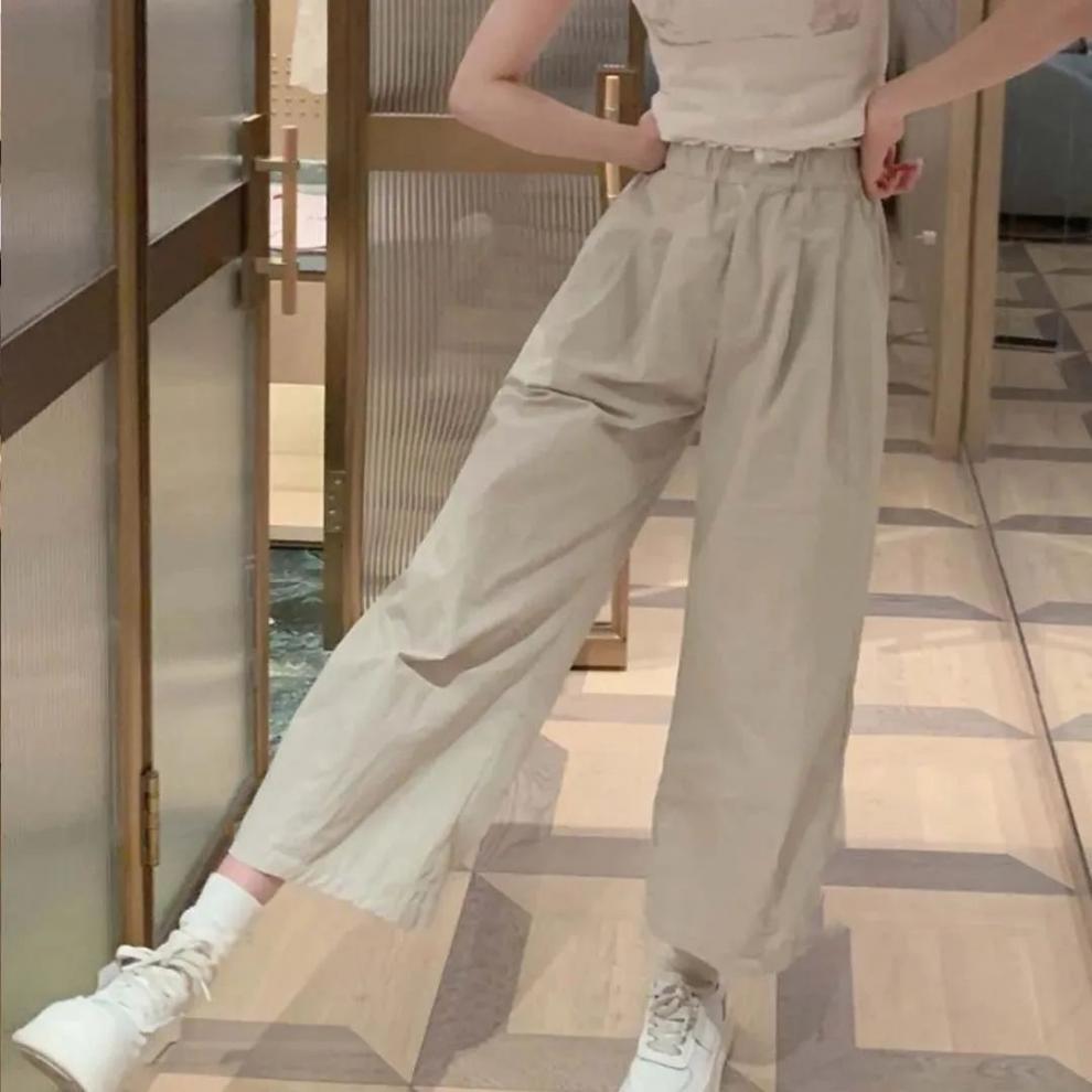 새로운 부드러운 소녀 스트레이트 캐주얼 바지 여성 봄과 여름 얇은 새로운 느슨한 올매치 귀여운 틈새 자른 바지 작은 남성스토어 가기