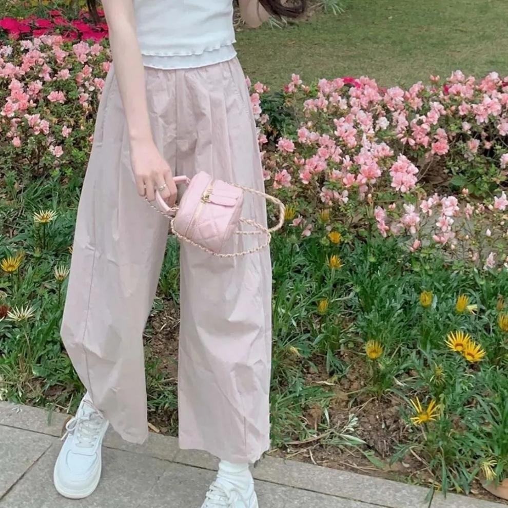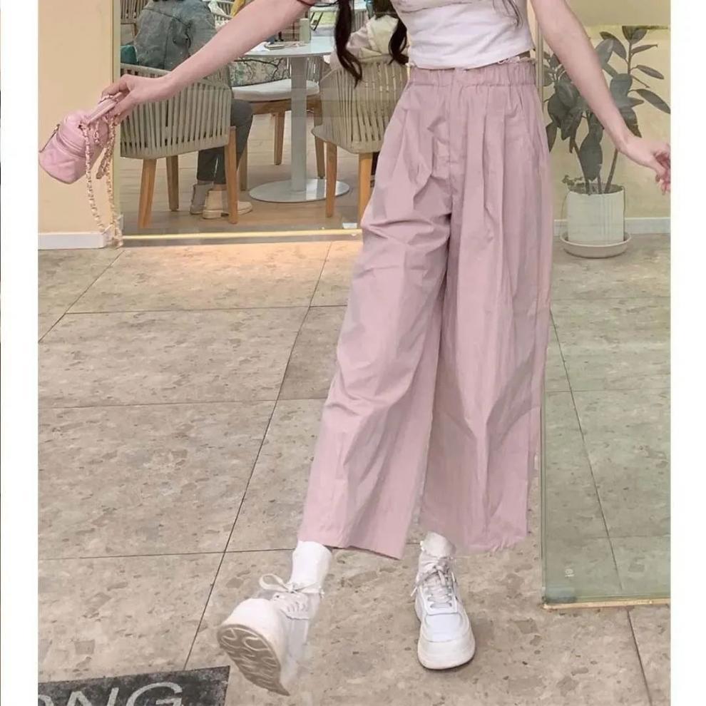 새로운 부드러운 소녀 스트레이트 캐주얼 바지 여성 봄과 여름 얇은 새로운 느슨한 올매치 귀여운 틈새 자른 바지 작은 남성