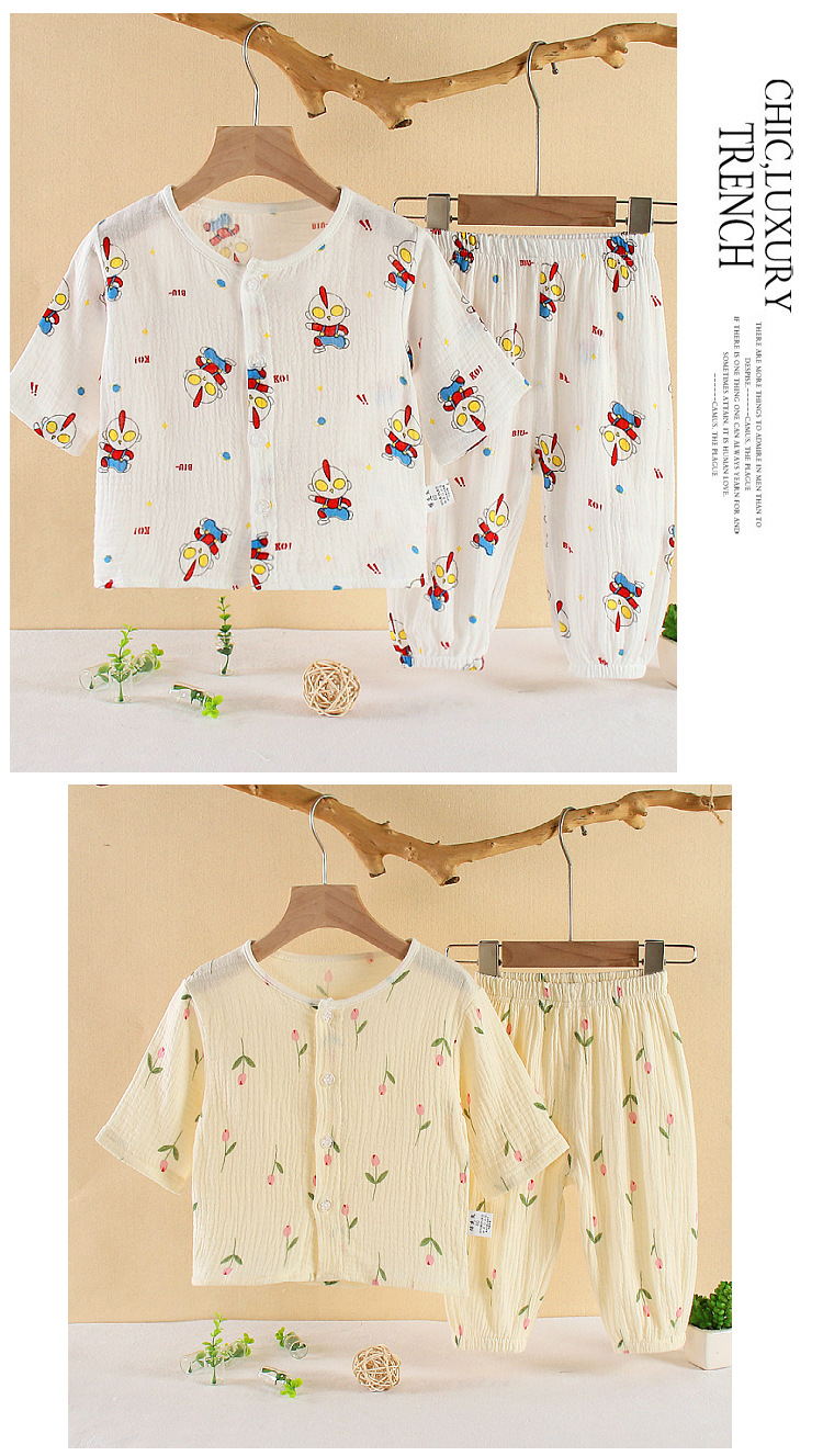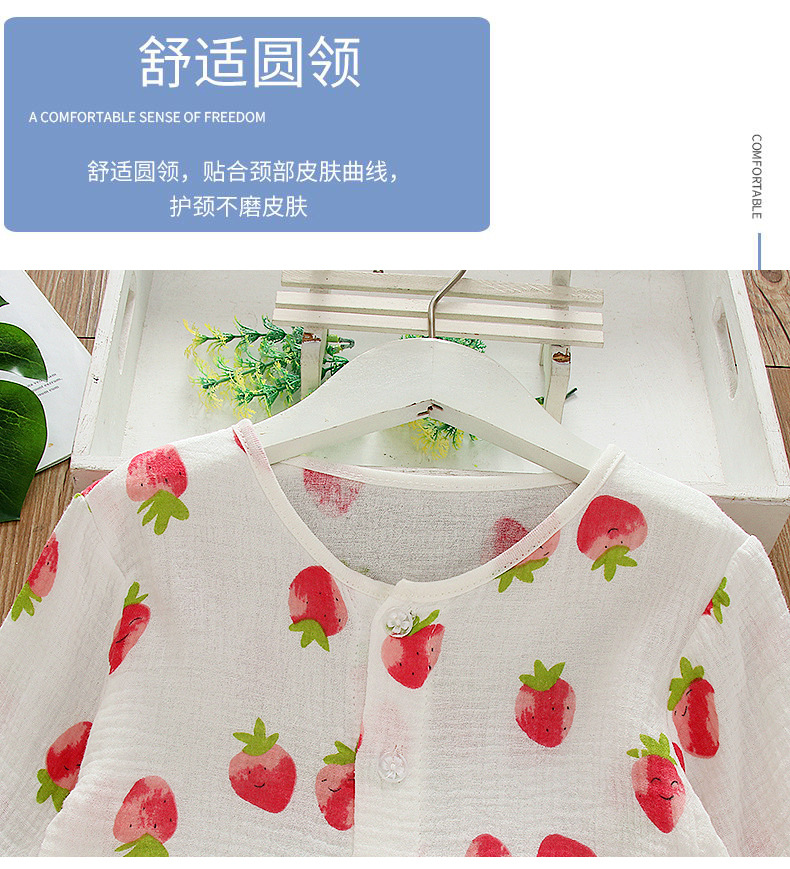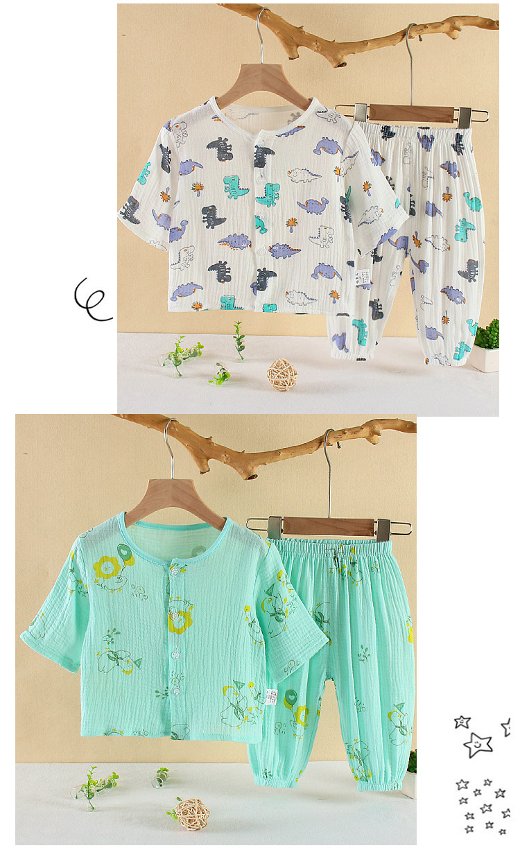 아기와 어린이 더블 레이어 코튼 원사 얇은 7 소매 홈 의류 클래스 소년 소녀를위한 카디건 코튼 만화 파자마