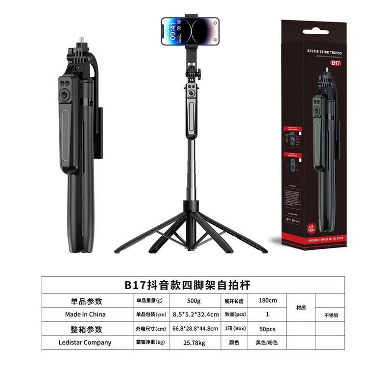 A17 알루미늄 합금 셀카봉 1.8m 스탠드 스테인리스 스틸 삼각대 블루투스 촬영 틱톡 카우스터 충전 리모컨