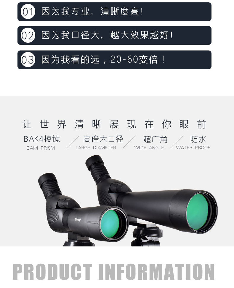 광학 줌 단안 80배 고배율 타겟 조류 관찰 망원경 천문학 질소 충전 방수 고급 망원경 초고화질