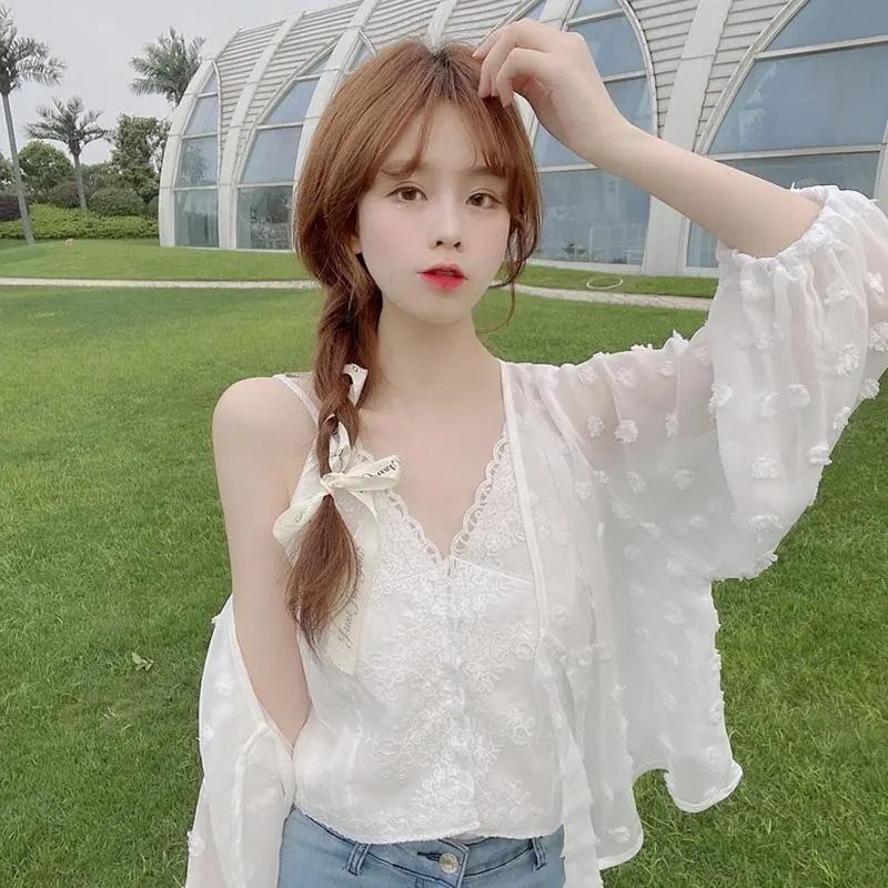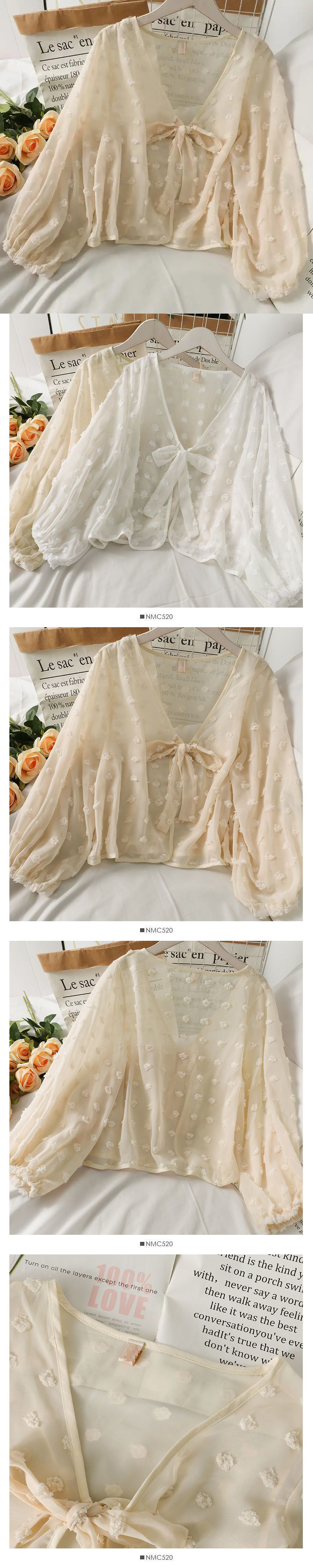 외부 카디건 활 넥타이 업 포크 포인트 버블 짧은 2025 여름 얇은 느슨한 슬리밍 선 스크린 작은 목도리스토어 가기
