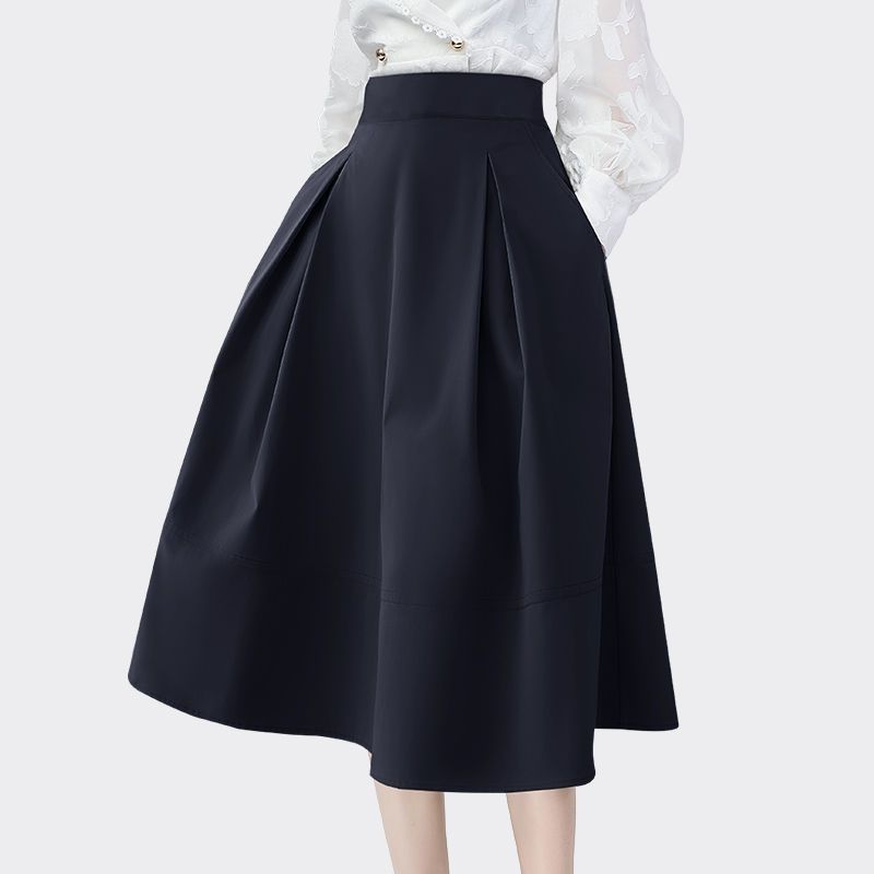 프랑스 헵번 스타일 우산 스커트 여성의 높은 허리 슬리밍 중간 길이 주름 치마 우아한 A 라인 팝 스커트 봄과 가을 치마