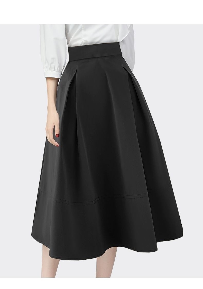 프랑스 헵번 스타일 우산 스커트 여성의 높은 허리 슬리밍 중간 길이 주름 치마 우아한 A 라인 팝 스커트 봄과 가을 치마스토어 가기