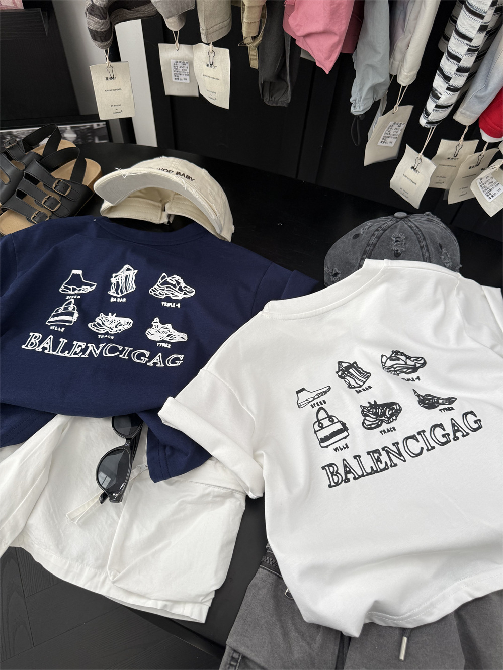 2025 여름 새로운 어린이 미국식 B 편지 반팔 T 소년과 소녀 다시 운동화 인쇄 둥근 목 반소매스토어 가기
