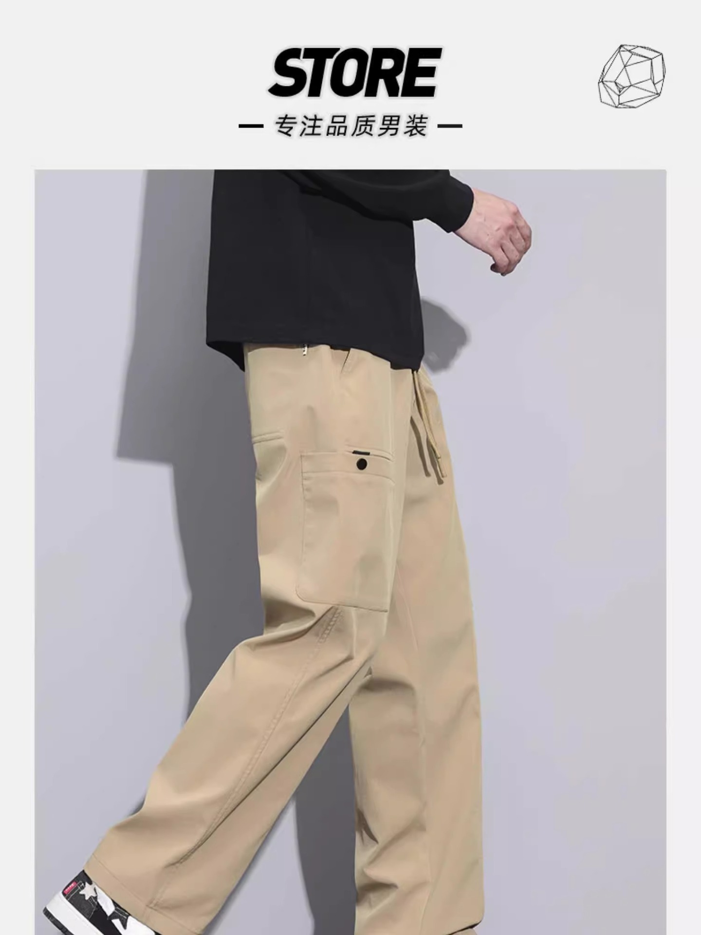 2025 봄과 가을 새로운 느슨한 남성용 캐주얼 바지 야외 충전 바지 미국식 트렌디 브랜드 크레인 바지 남성용스토어 가기
