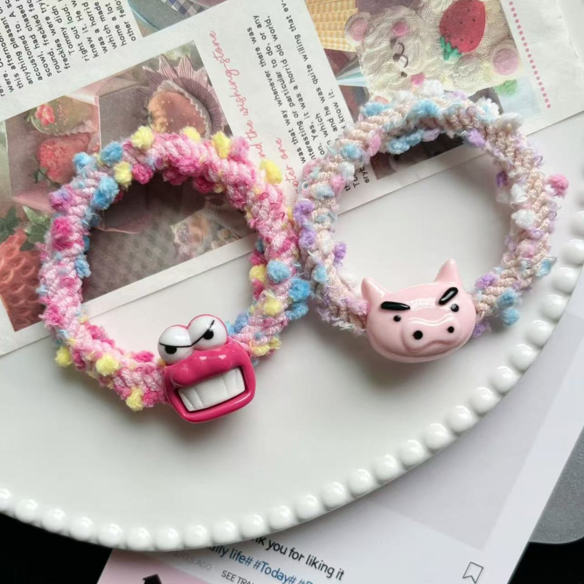 만화 크레용 작은 새로운 컬러 머리 반지 재미 뚱뚱한 작은 흰색 개 머리 밧줄 소녀 학생 고무 밴드 모리 머리 반지
