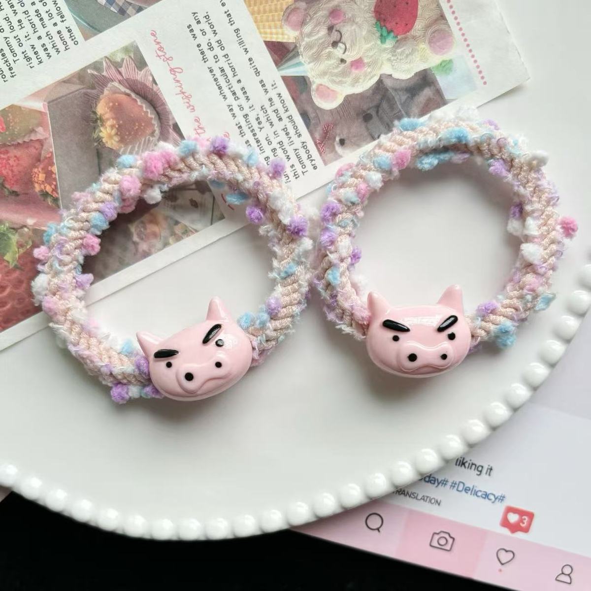 만화 크레용 작은 새로운 컬러 머리 반지 재미 뚱뚱한 작은 흰색 개 머리 밧줄 소녀 학생 고무 밴드 모리 머리 반지스토어 가기
