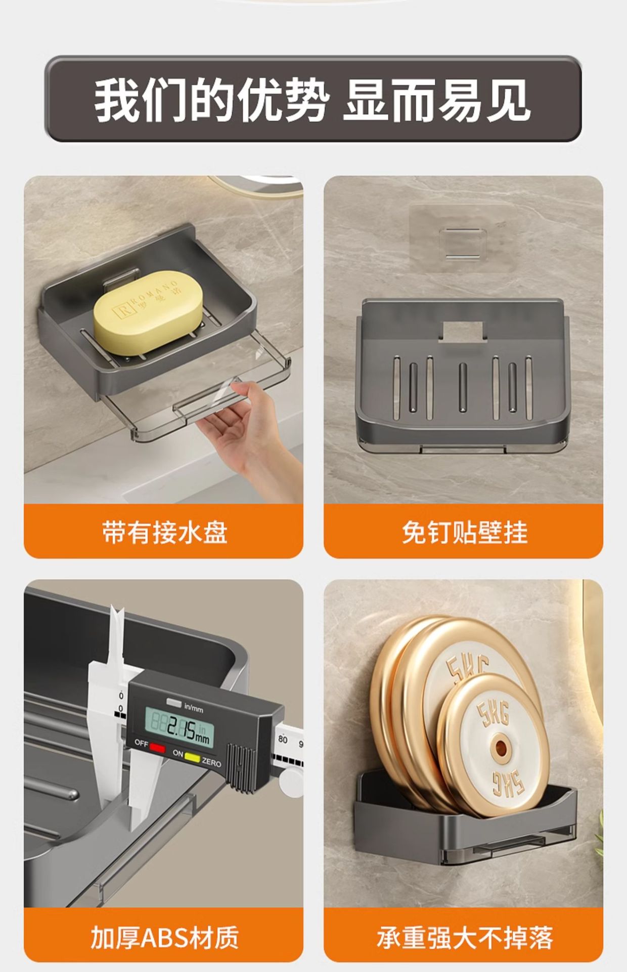 가정용 고급 배수 비누 랙 비누 상자 욕실 벽걸이 형 이중층 비누 상자 비 천공 보관 랙