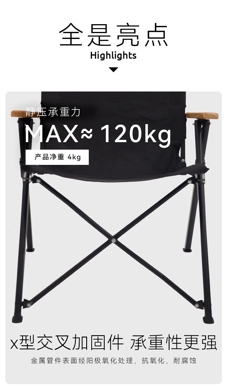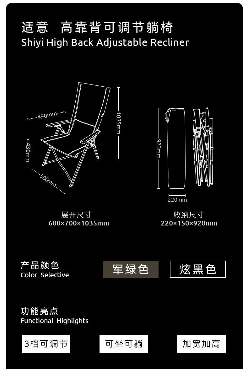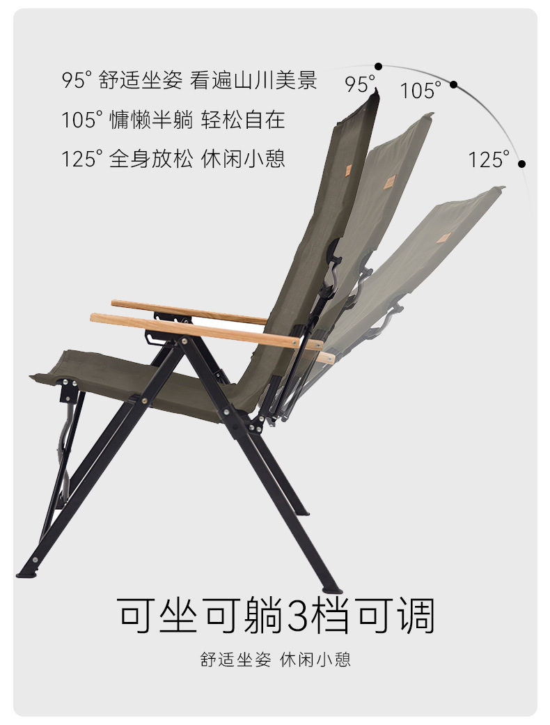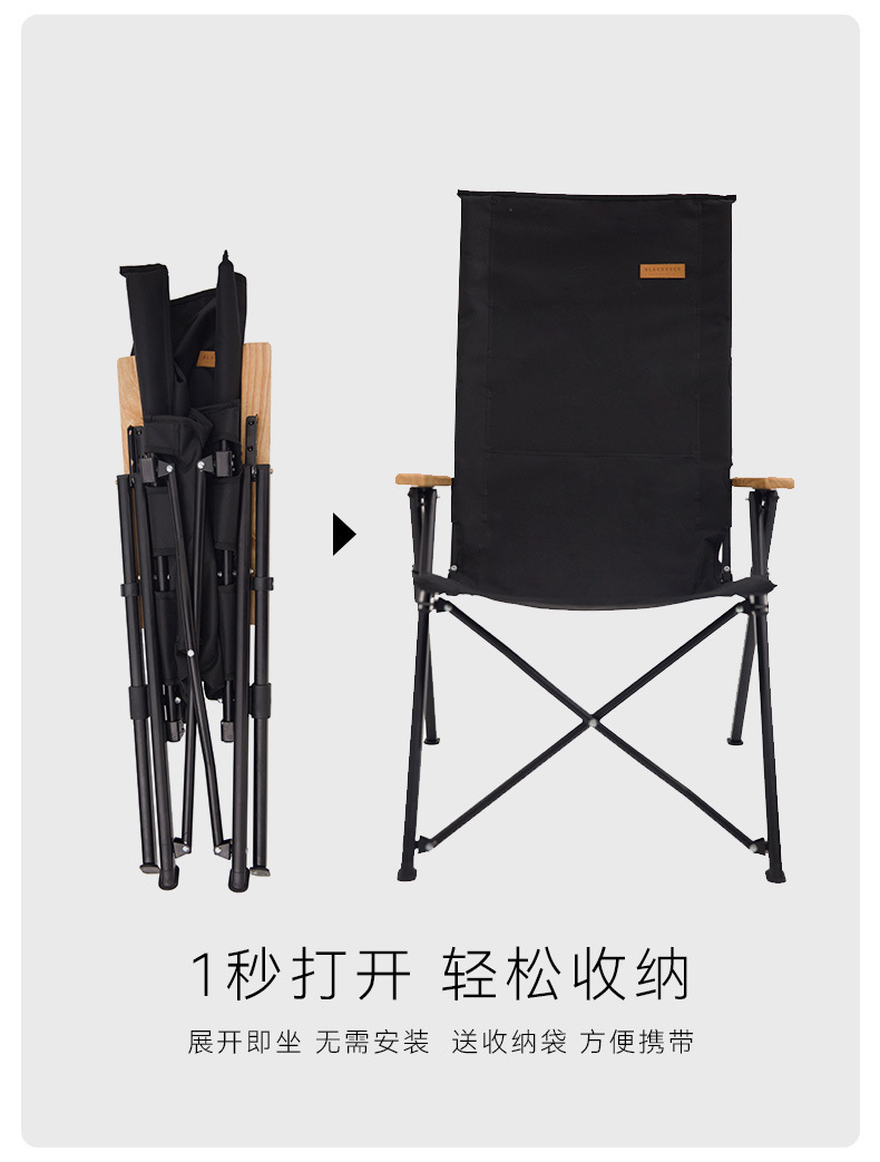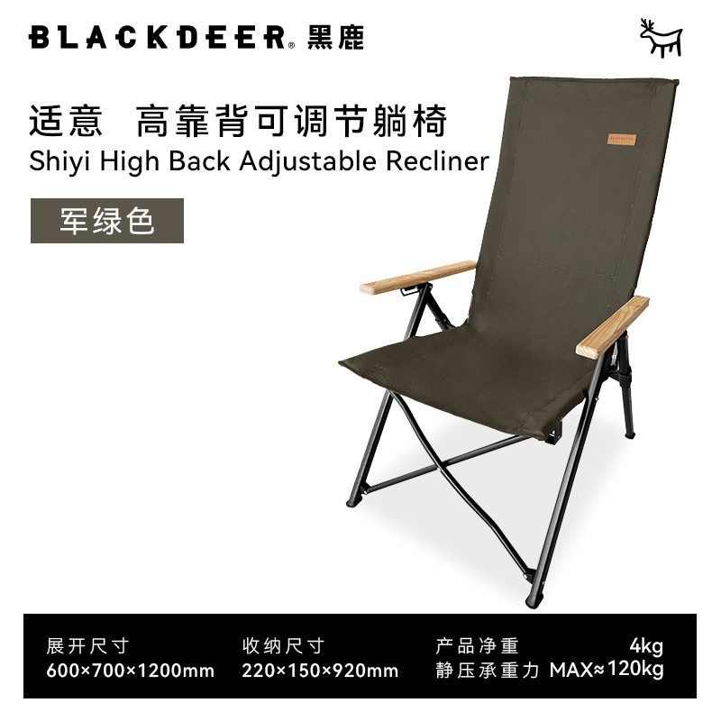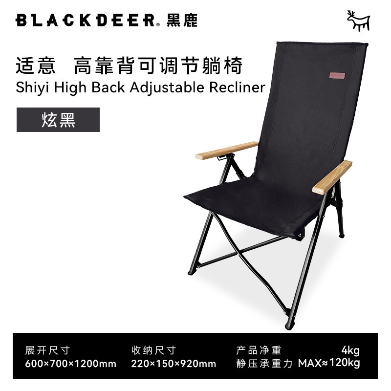 블랙 디어 블랙 디어 적합성 높은 등받이 Recliner Mori 캠핑 피크닉 조정 가능한 팔걸이 휴대용 접이식 의자