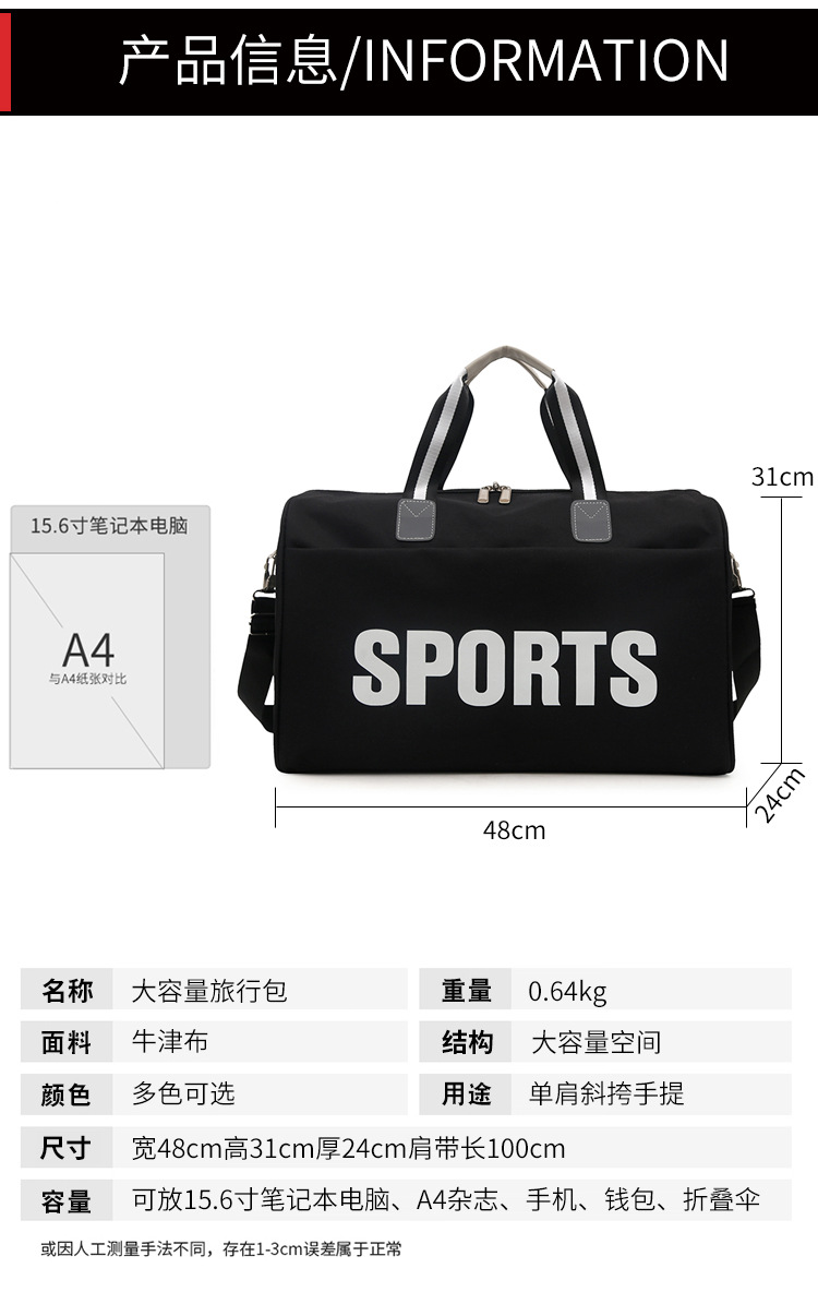 批发旅行包,多色可选,支持定制,尺寸,长48宽24高31厘米,拍摄尺寸测量有1-3厘米误差,以包包实际尺寸为准