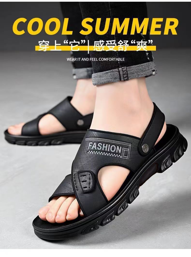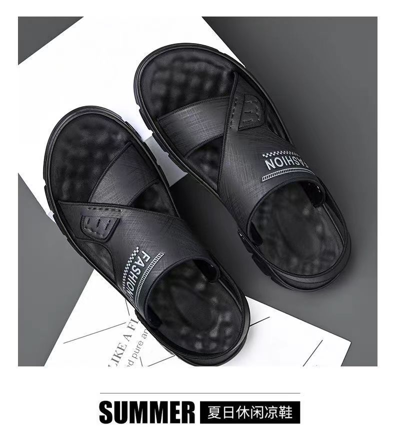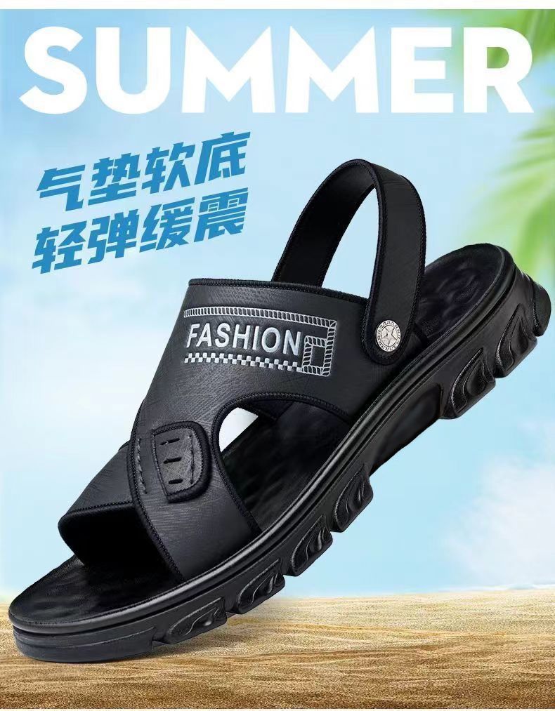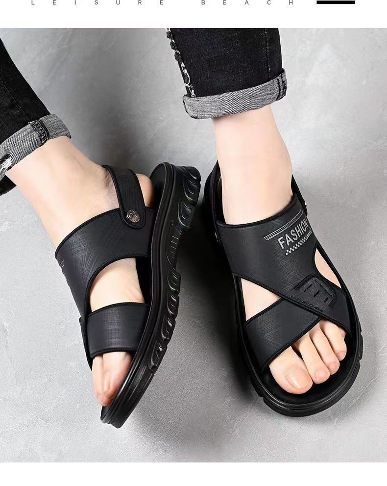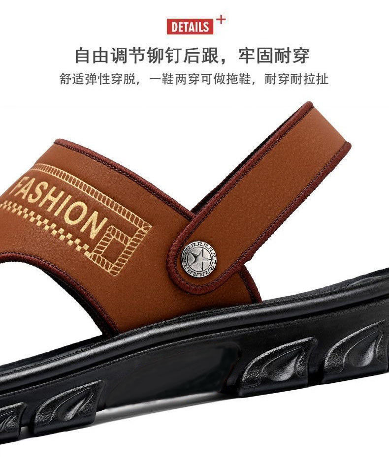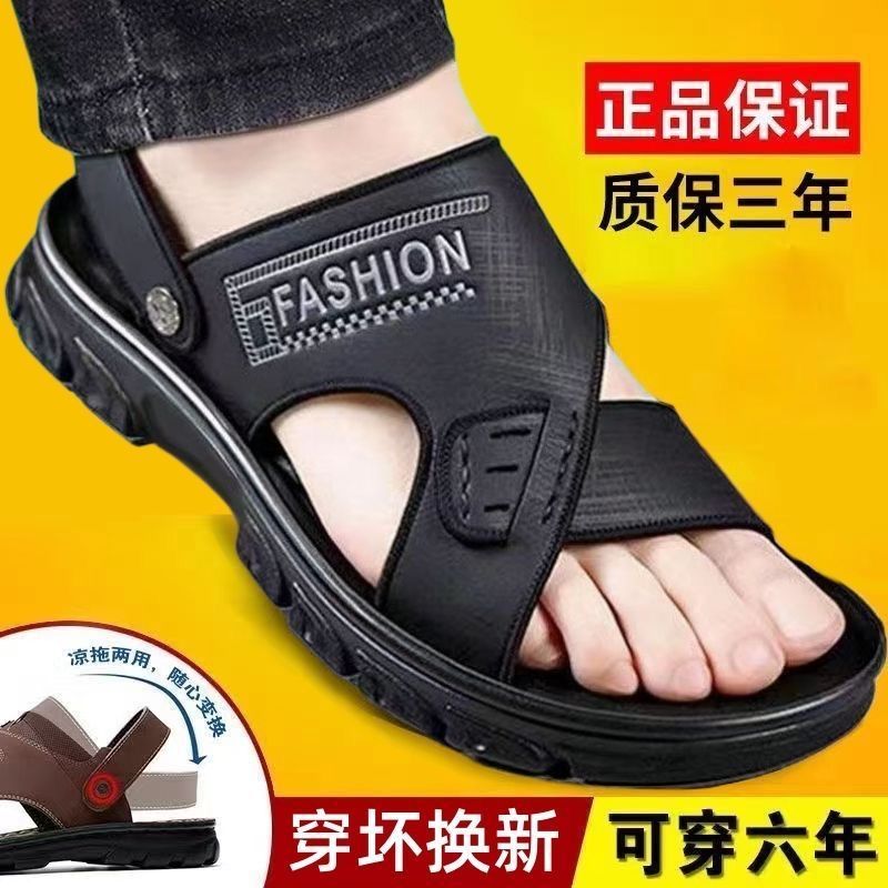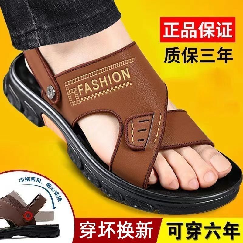 샌들 남자 2025 년 새로운 가죽 두꺼운 해변 여름 외부 착용 아빠 미끄럼 방지 이중 목적 샌들 남성용스토어 가기