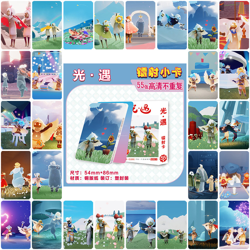 ✅Boxed 55 작은 카드, Tianguan Blessed TOP Landing Young White Deer 애니메이션 주변 플래시 카드 사진 배치