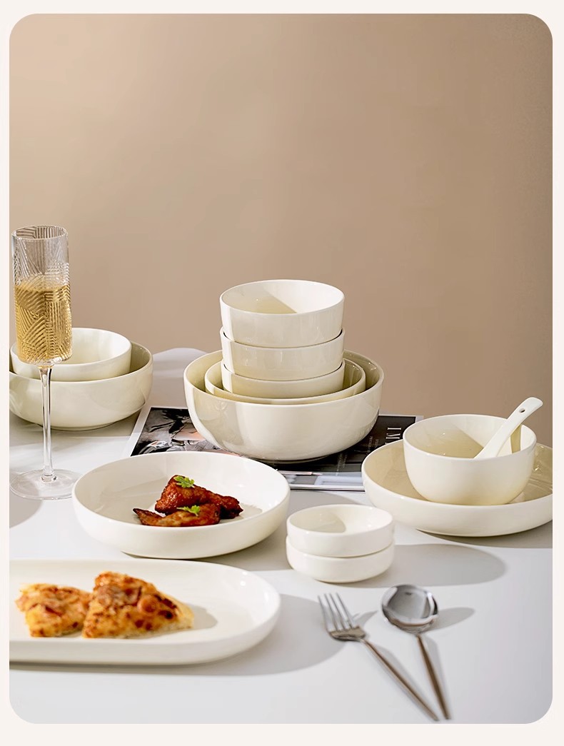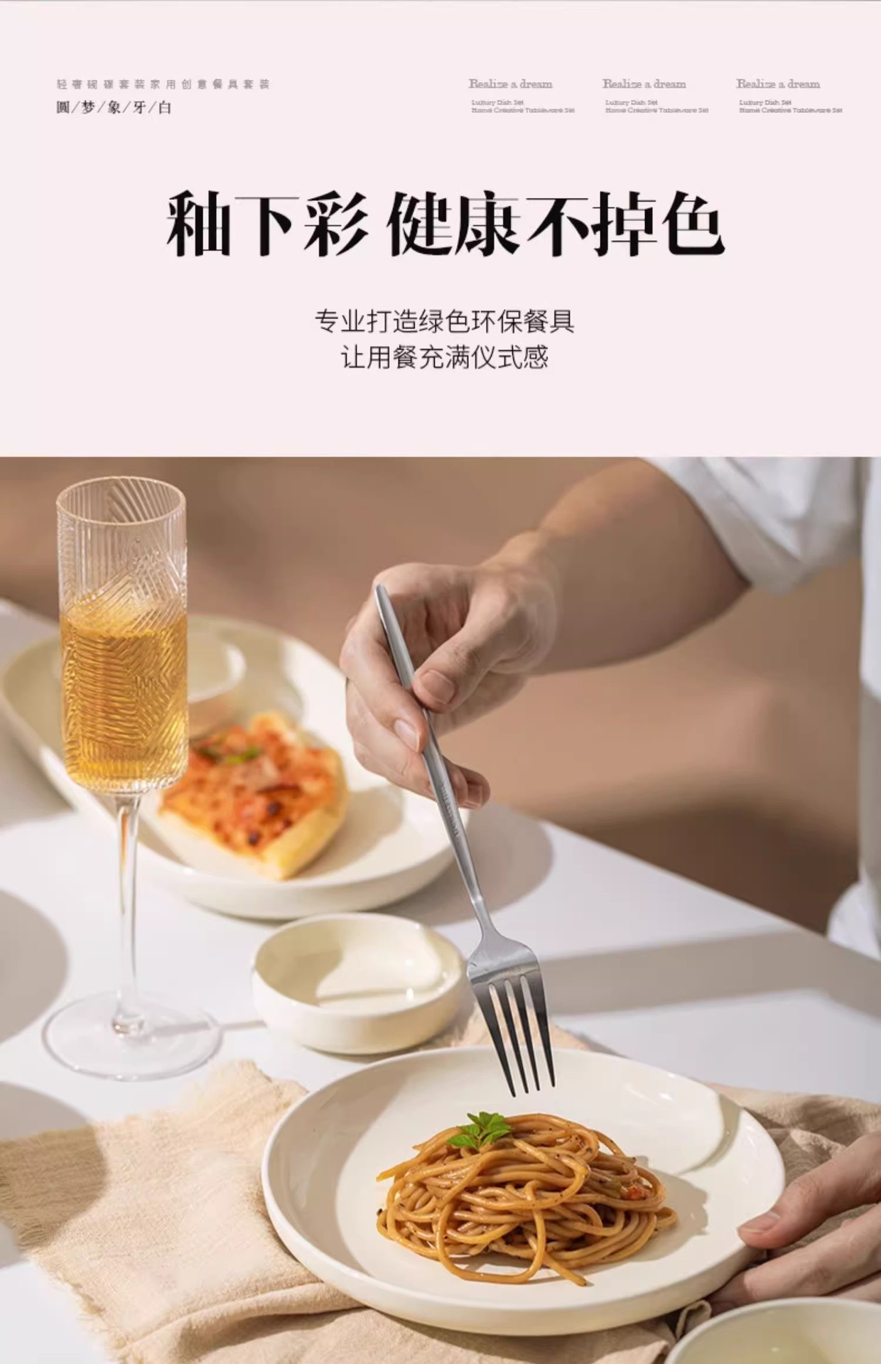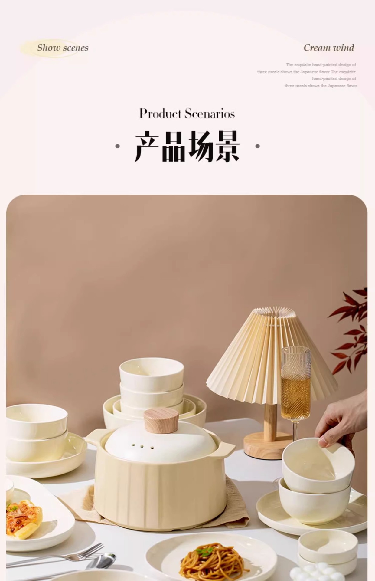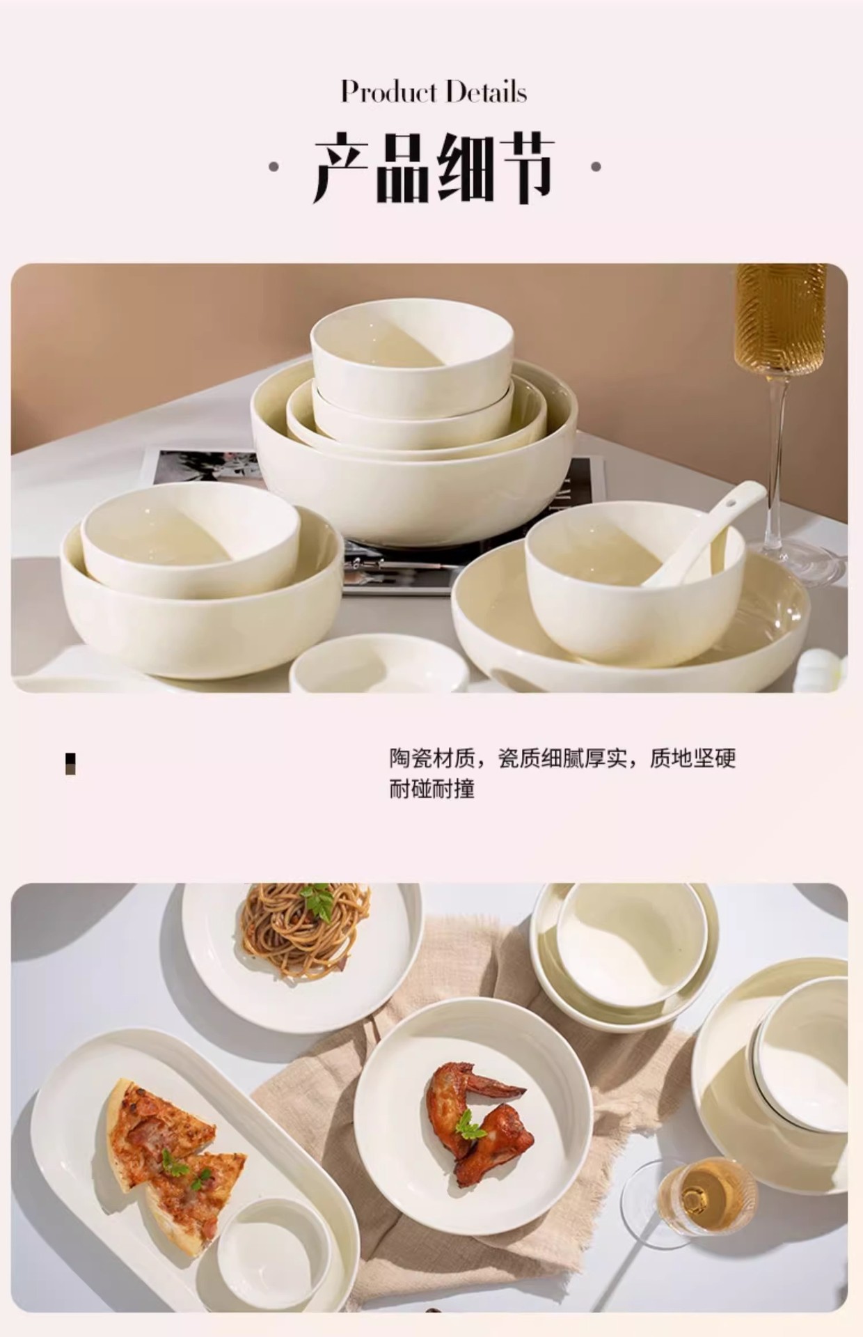 ✅크림 스타일 식기 세트 북유럽 높은 색상 가치 세라믹 그릇 가구 그릇 가벼운 고급 그릇 그릇 그릇 젓가락 집게 새 스타일