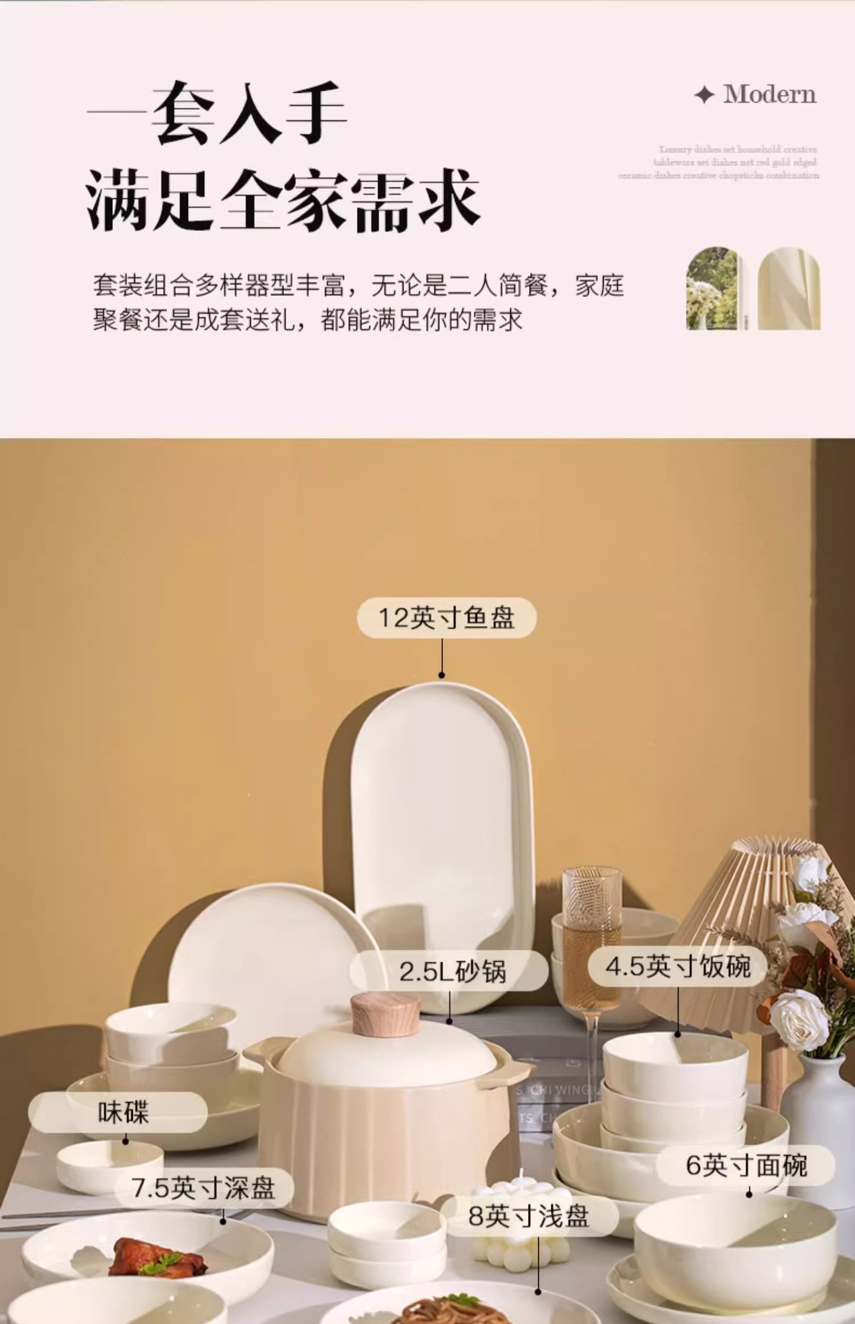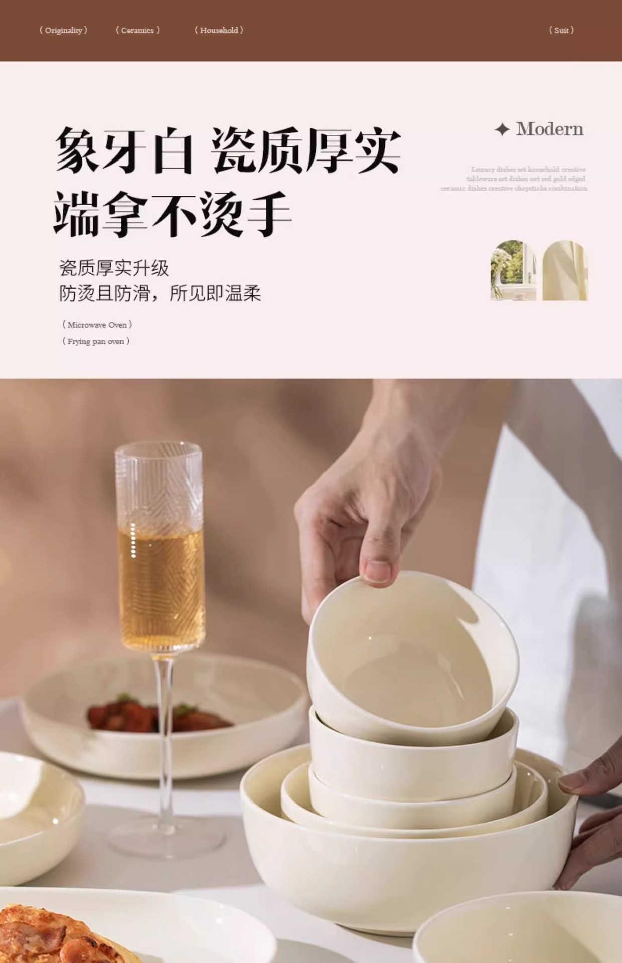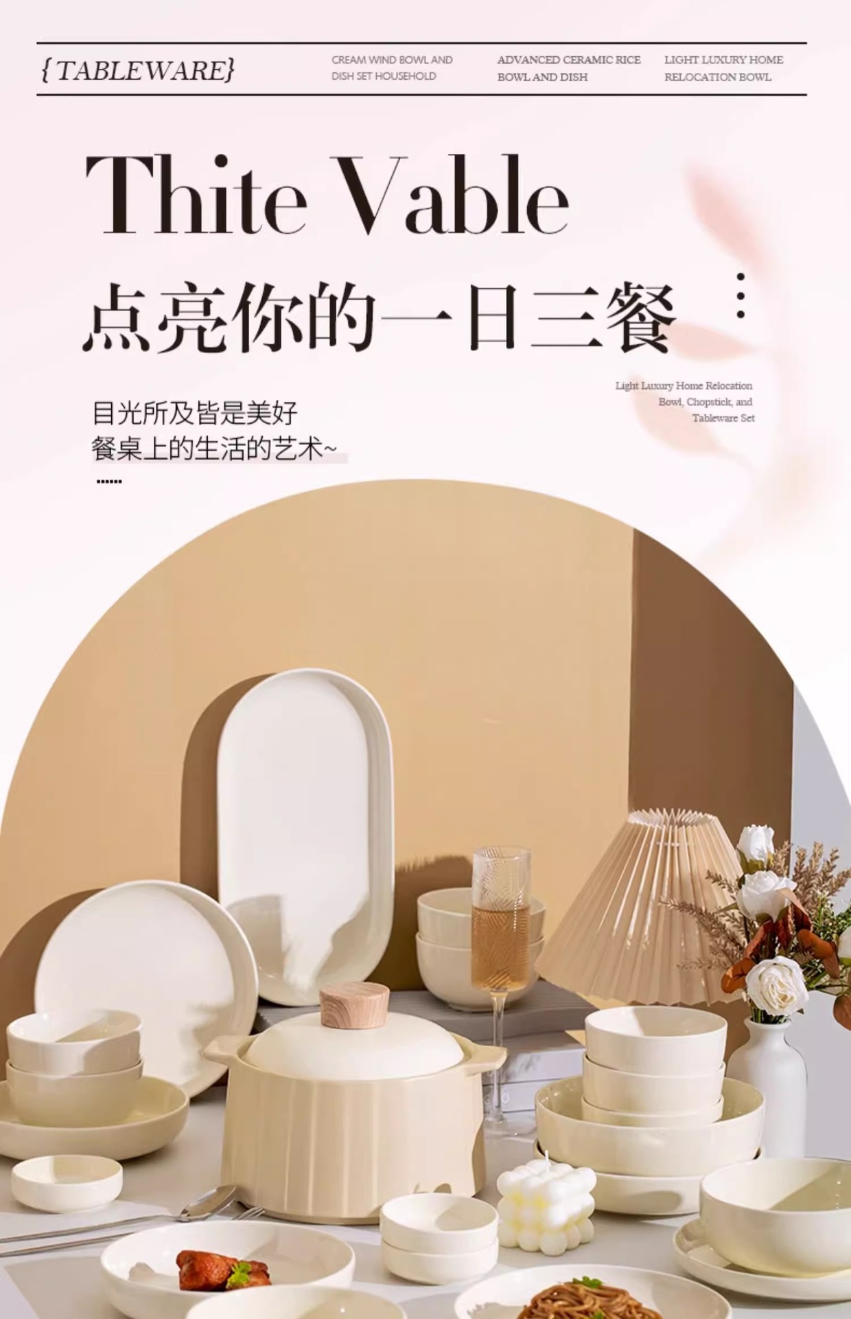 ✅크림 스타일 식기 세트 북유럽 높은 색상 가치 세라믹 그릇 가구 그릇 가벼운 고급 그릇 그릇 그릇 젓가락 집게 새 스타일스토어 가기