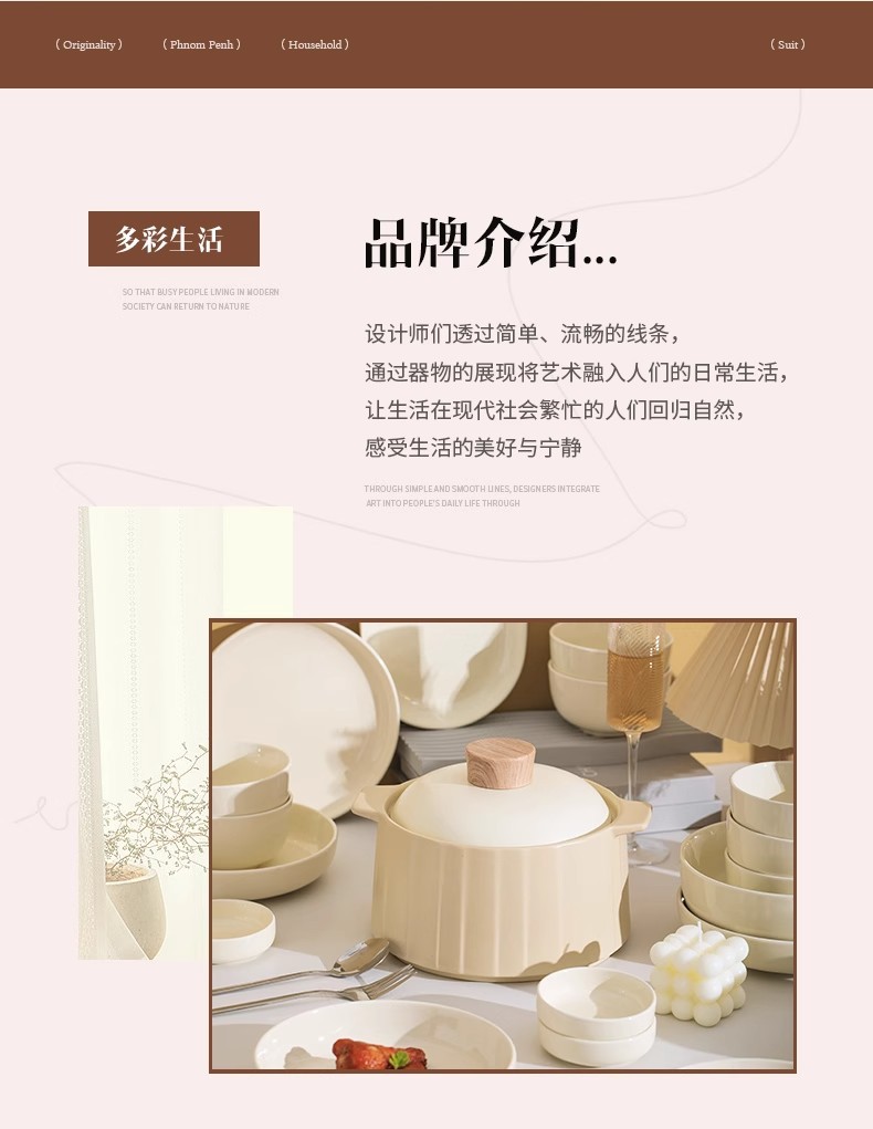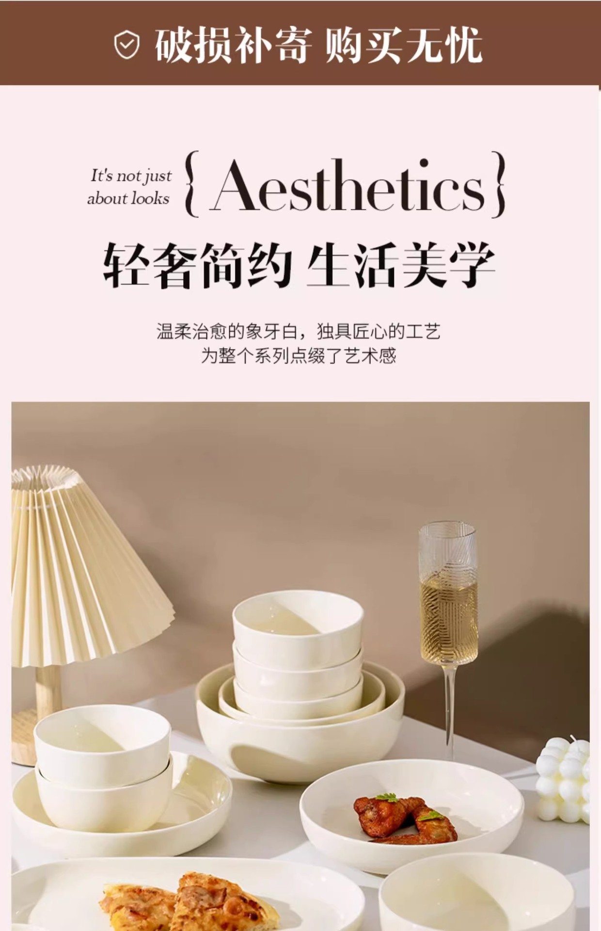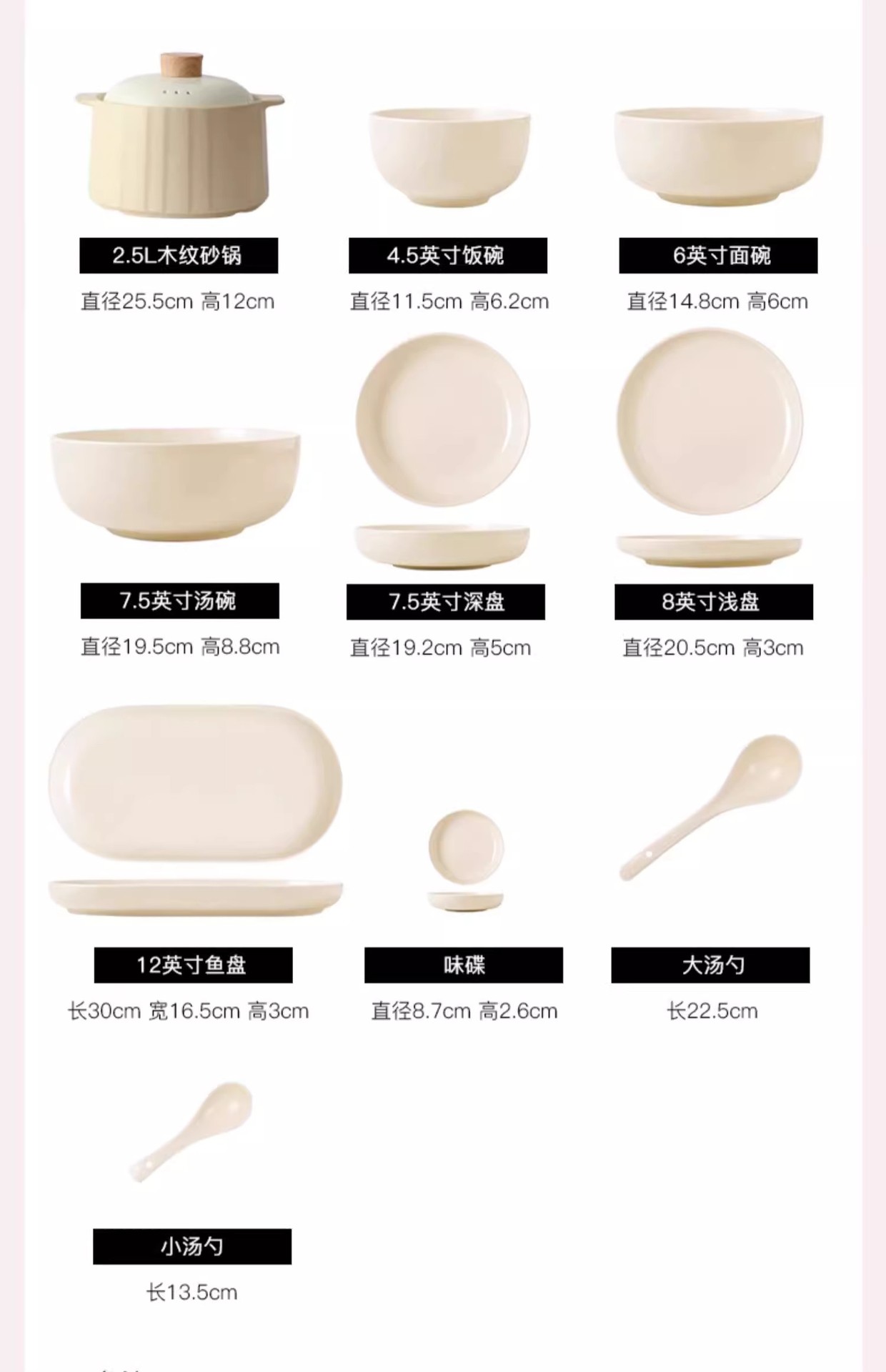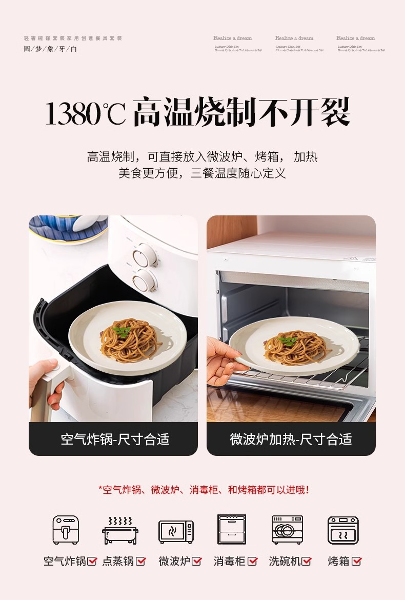 ✅크림 스타일 식기 세트 북유럽 높은 색상 가치 세라믹 그릇 가구 그릇 가벼운 고급 그릇 그릇 그릇 젓가락 집게 새 스타일스토어 가기