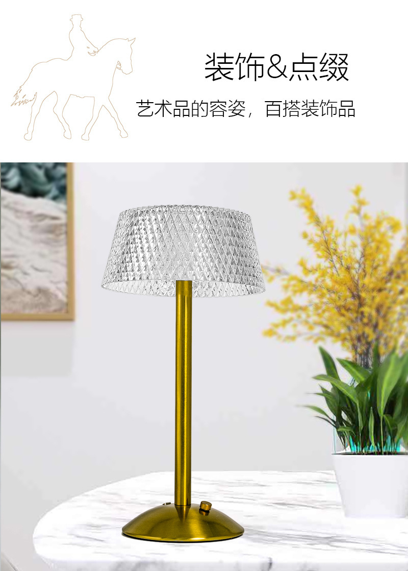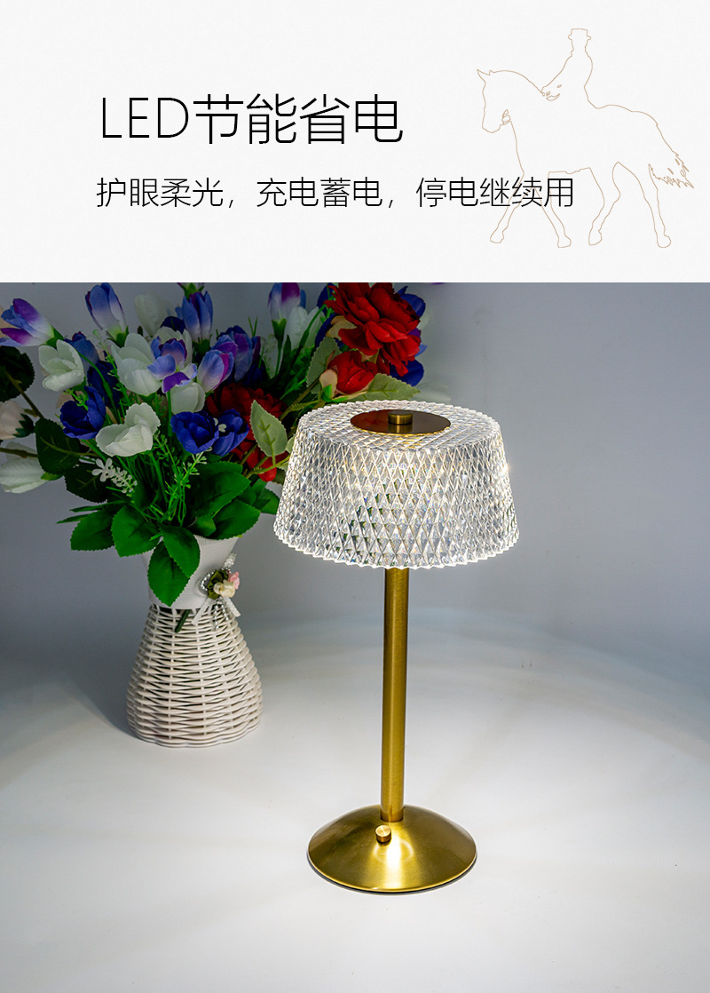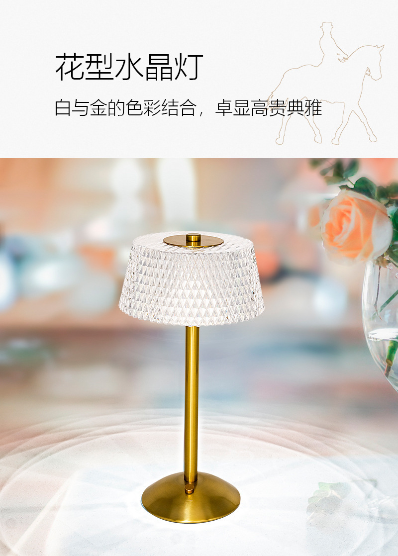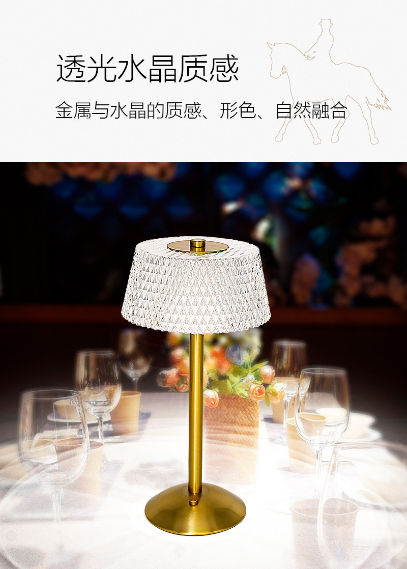 크로스보더 크리에이티브 충전식 메탈 크리스탈 테이블 램프 거실 침실 바 분위기 조명 장식용 야간등 공장 직판스토어 가기
