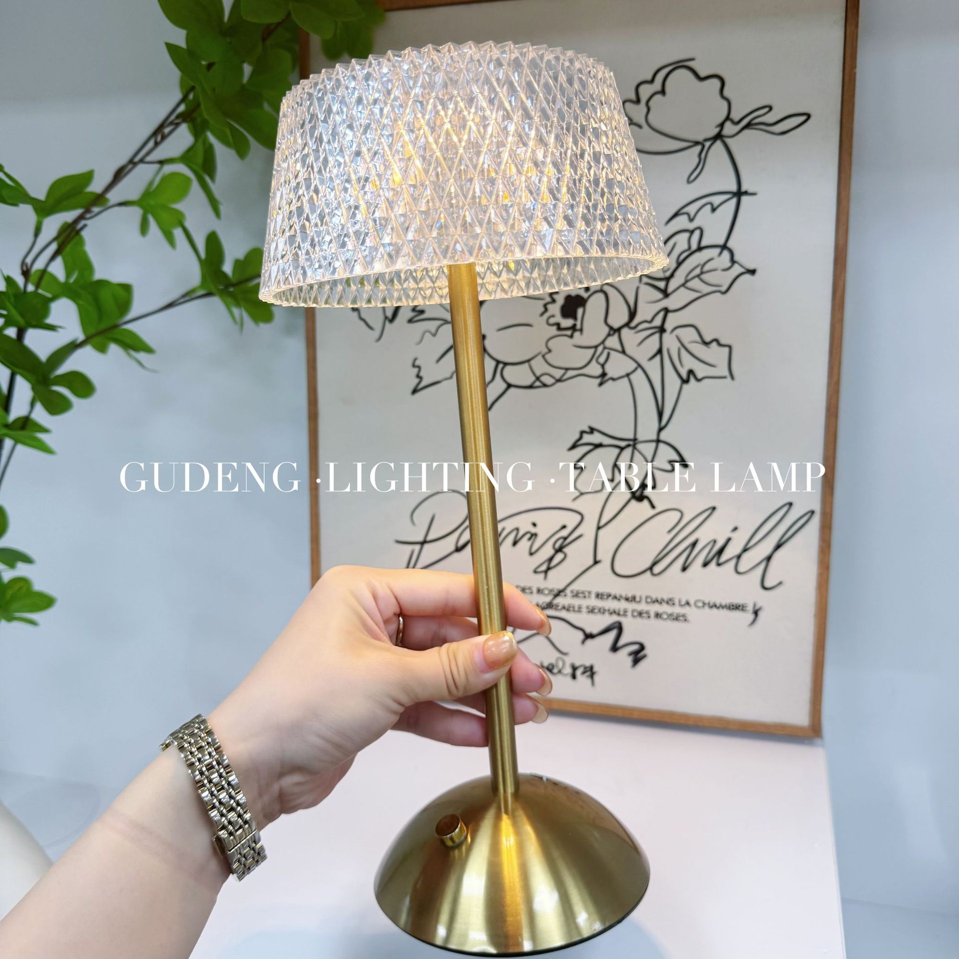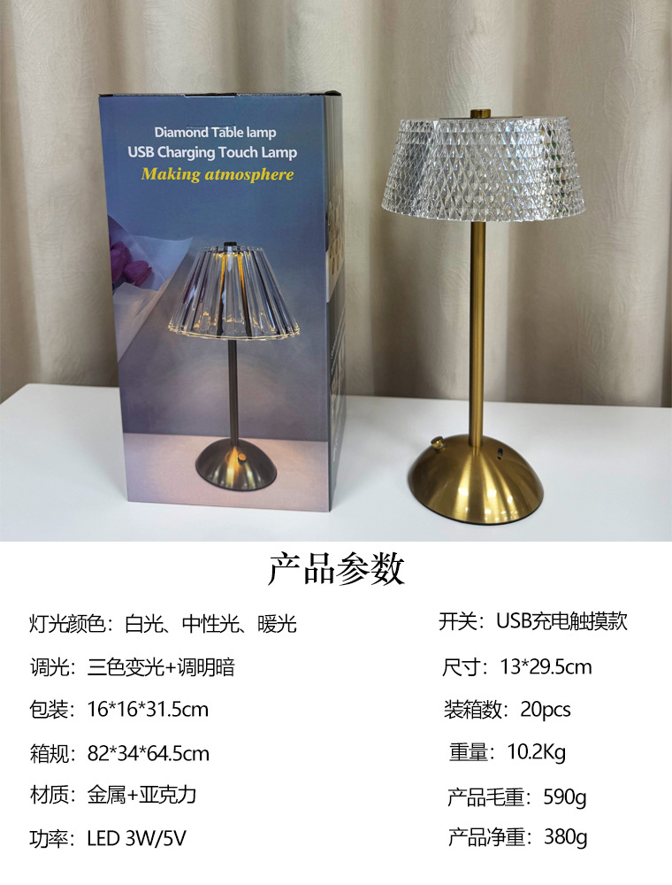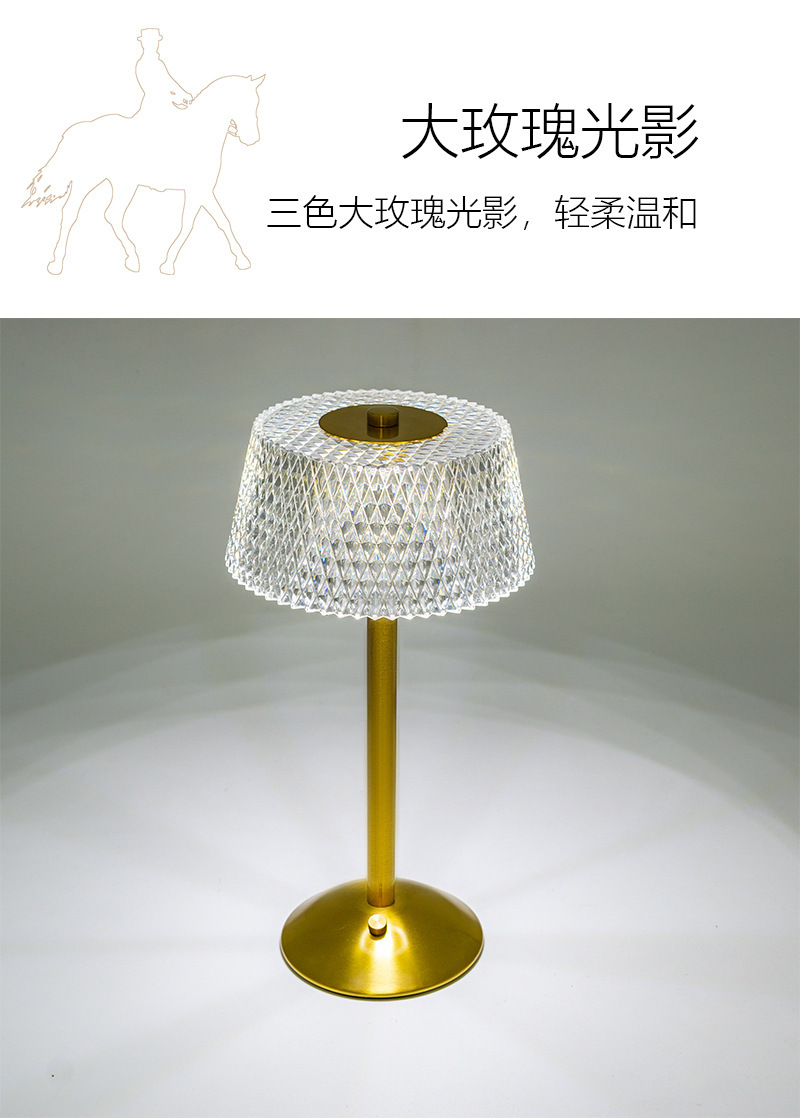 크로스보더 크리에이티브 충전식 메탈 크리스탈 테이블 램프 거실 침실 바 분위기 조명 장식용 야간등 공장 직판스토어 가기