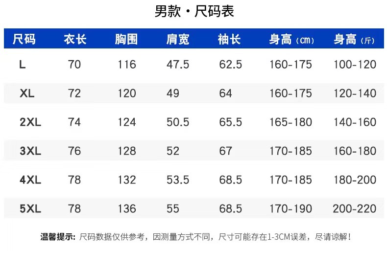 • 5XL (남성 모델만 해당)