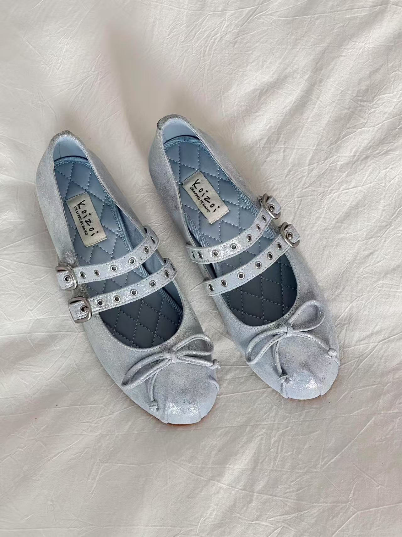 양가죽 버전 ~ 프랑스 우아한 정품 가죽 활 메리 제인 신발 복고풍 더블 버클 높이 얕은 입 발레 신발