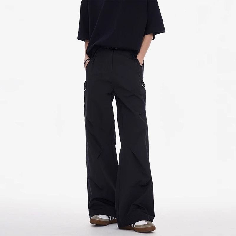 2025 미국 해체 낙하산 병 바지 바지 잡은 남성 하이 스트리트 디자인 주선 캐주얼 바지 느슨한 스트레이트 와이드 다리 바지