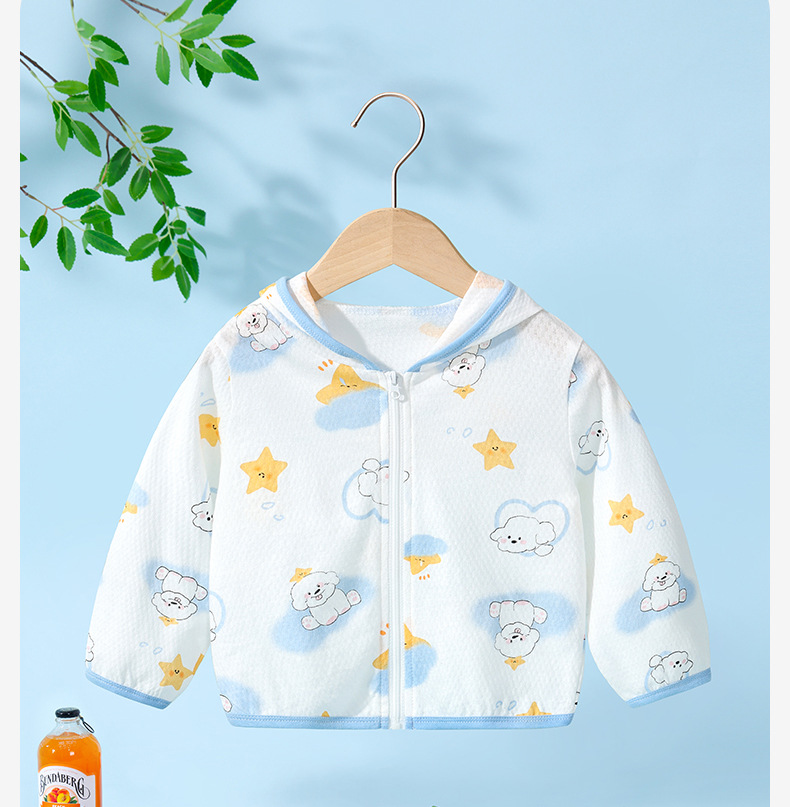 2025 여름 새로운 아기 캐주얼 선스크린 얇은 코트 남성과 여성의 어린이 패션 통기성 탑 아이스 실크 여름 옷스토어 가기