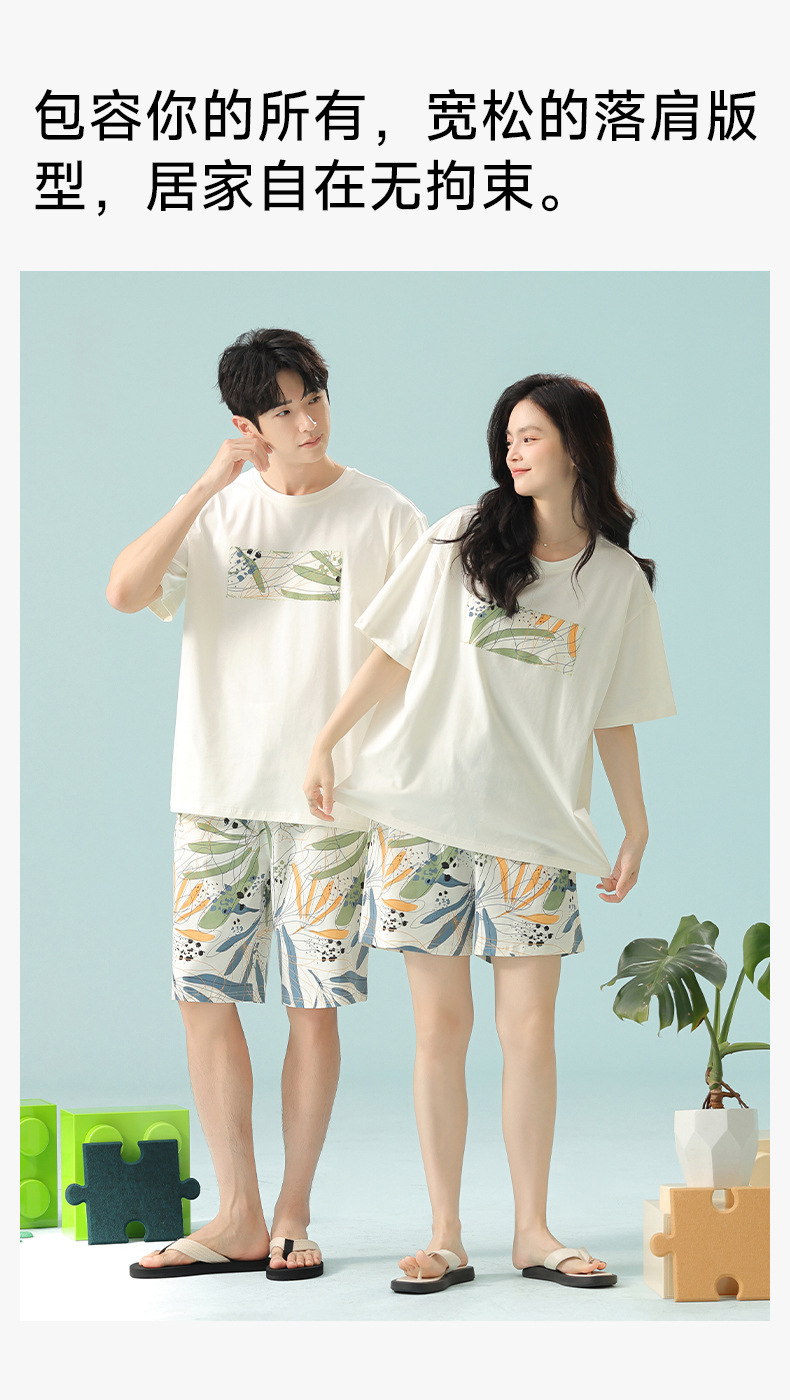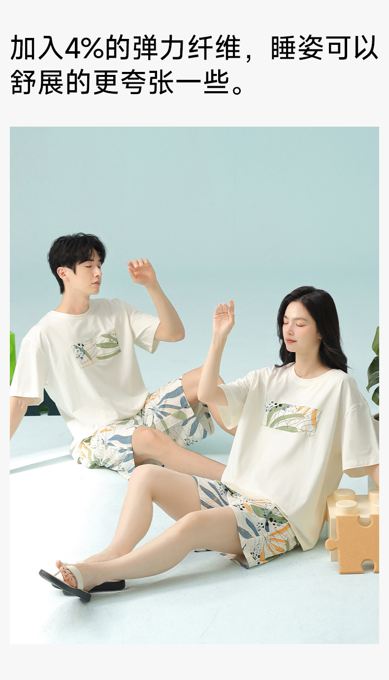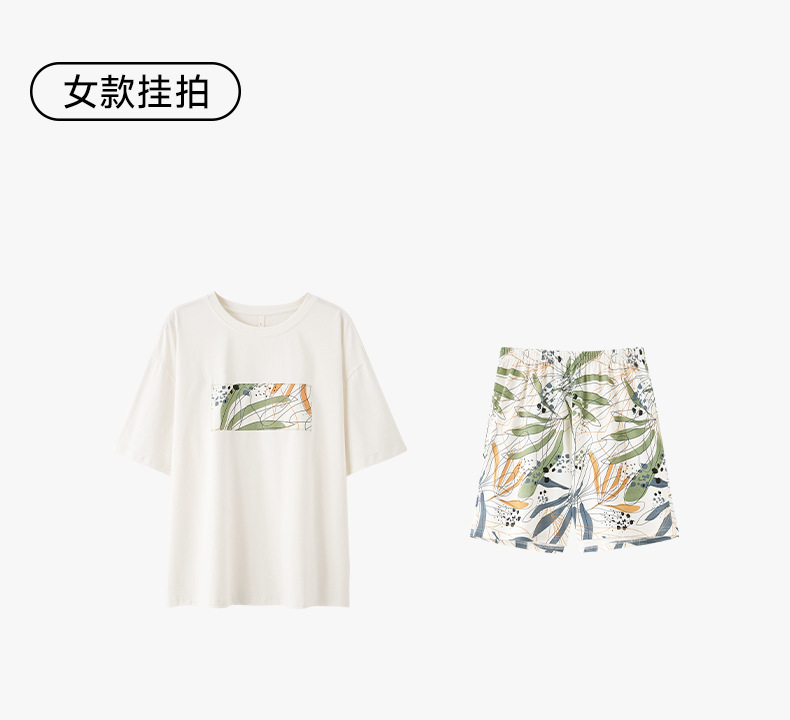 [항균성 신장면] 휴가 바람 열대 식물 여름 풀업 면화 애호가 잠옷 반팔 숙녀 집 옷